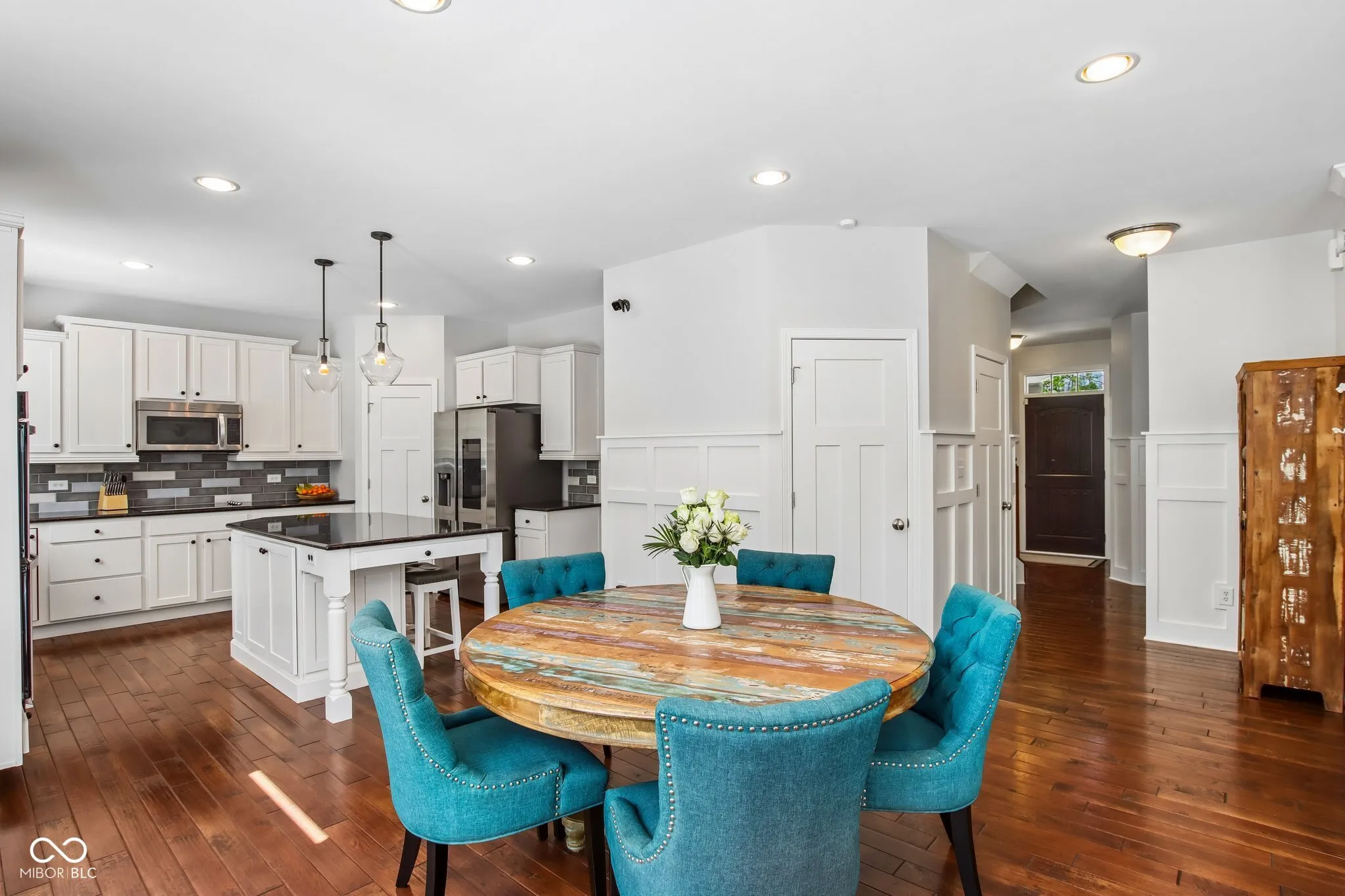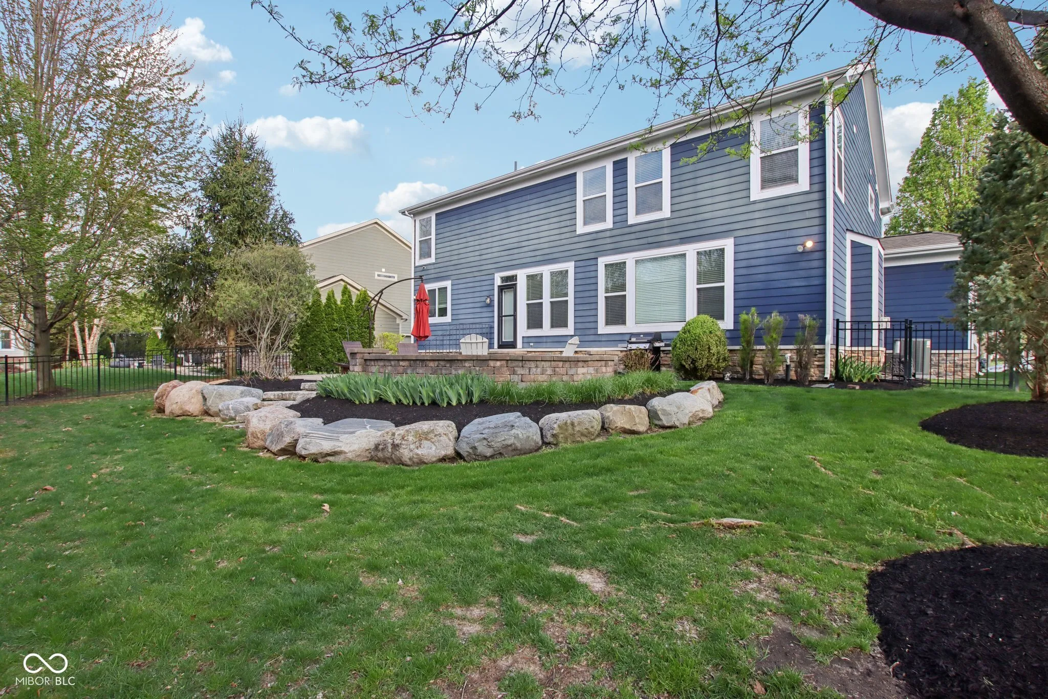 Imagine sipping your morning coffee while looking out over the lush greenery of Witten Park. This exceptional Saxony home offers more than just a place to live-it offers a lifestyle. Perfectly positioned for the best of local recreation, this custom-detailed home invites you in with its charming, fresh white exterior and stays with you through its thoughtful design. Impressive from entry accenting a custom wood door w/ speakeasy grill, leading you into the two story entry. Work from your tranquil, light-filled office, or cheering on your favorite team in the custom-bar-equipped basement, every square foot of this home has special touches throughout. The gourmet kitchen is ready for your next culinary adventure, leading directly to a private, landscaped patio that serves as your own outdoor escape. Tray ceiling master w/ great closet space and spa bath designed for relaxation. Garage is fully finished and is over 600 Sq Ft. Prime location, this home is the rare find you’ve been waiting for. Welcome home to Saxony. With a tankless water heater (2025), new garage doors (2025), and dual-zone HVAC (AC 2023), Exterior paint (2025) Water Softner (2026)