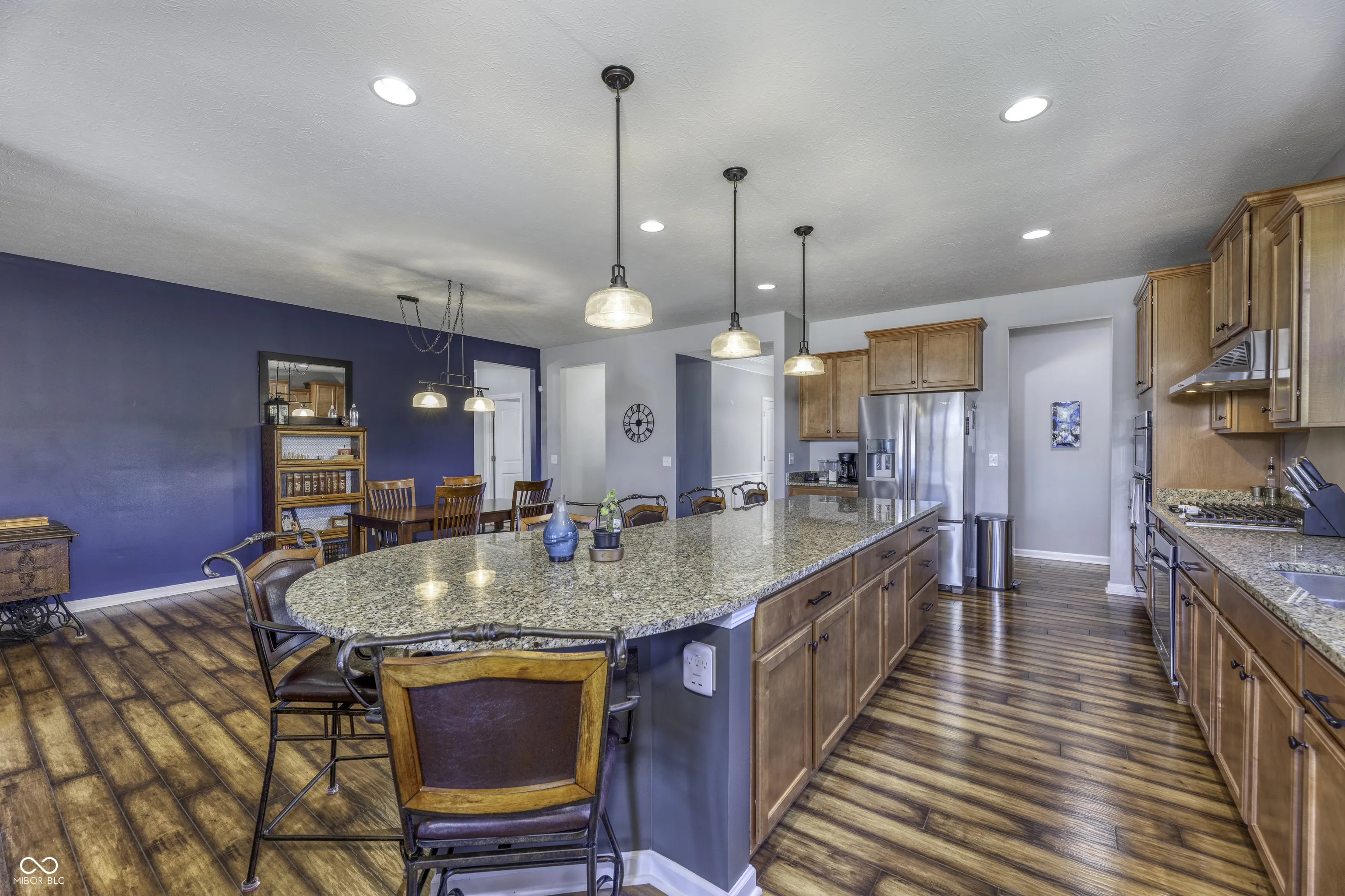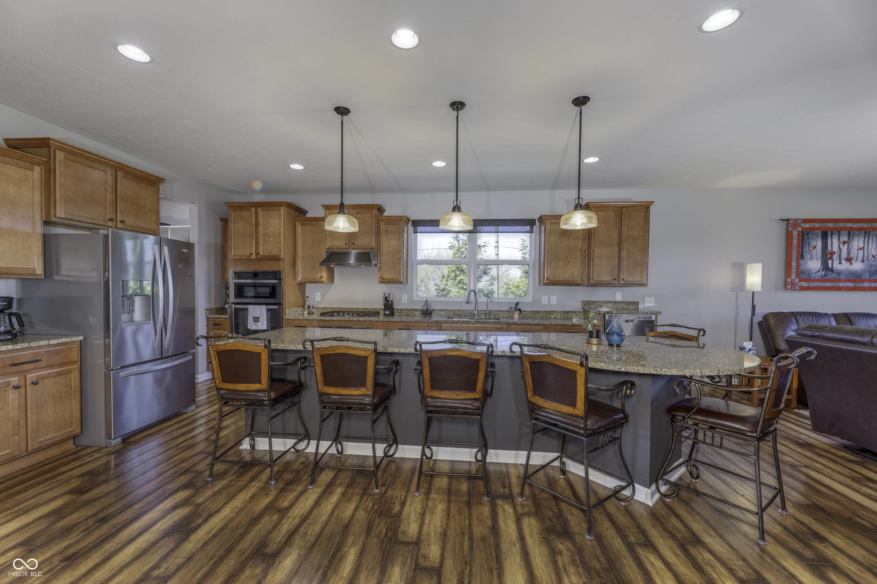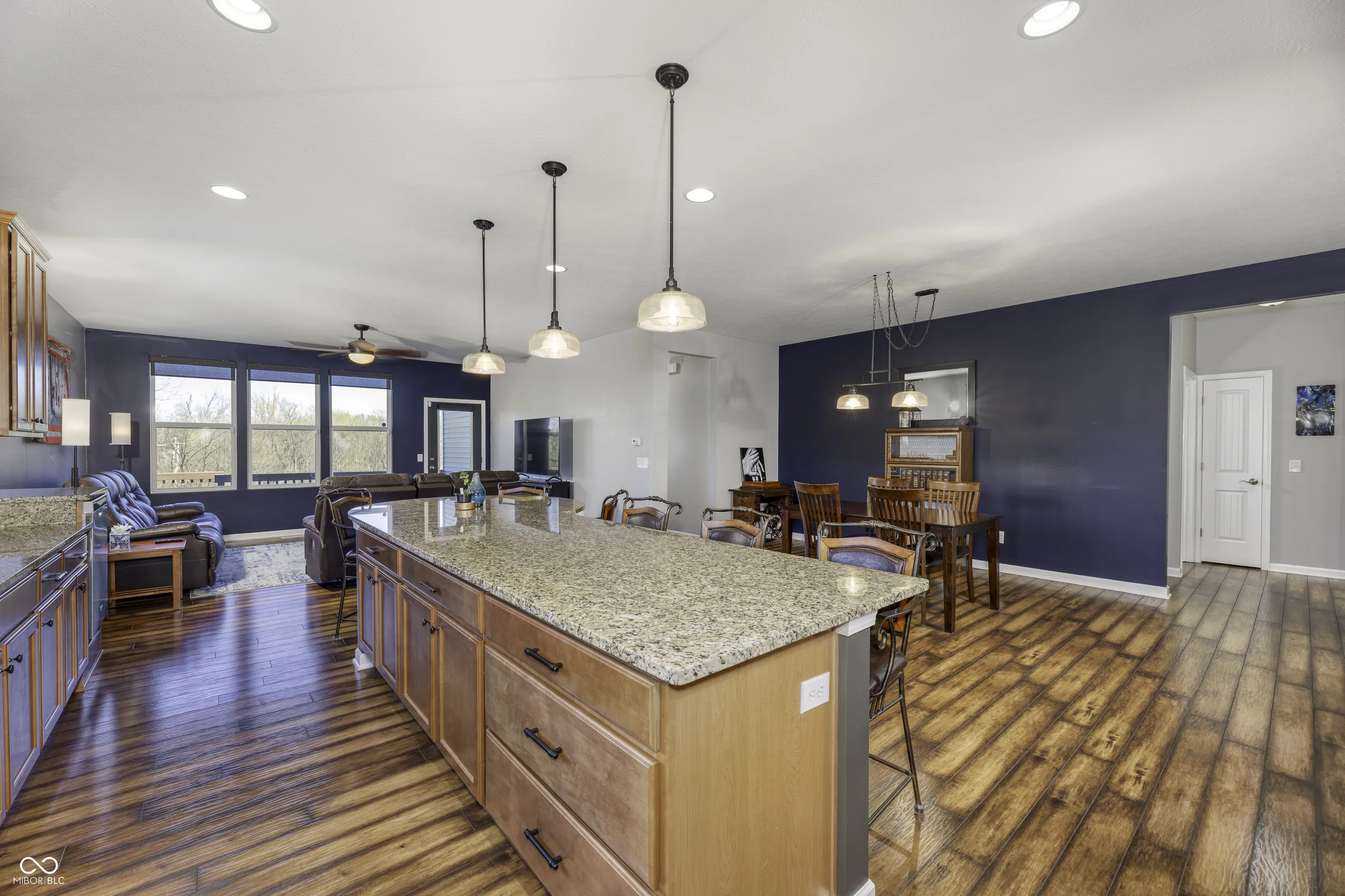 Enjoy modern living in this stunning open-concept ranch in Avalon! Designed for today’s lifestyle, the heart of the home is the Kitchen featuring a massive Center Island and Breakfast Bar that flows effortlessly into the spacious Great Room and Dining area-perfect for entertaining. The flexible floor plan includes a front Bedroom that doubles as an ideal quiet Home Office. Relax in the Primary Suite, offering a private Bathroom complete with dual Vanities, a tiled Walk-In Shower with bench seating, and a custom-organized Walk-In Closet. The Great Room offers direct access to the Outdoor Living space overlooking a Walking Trail and a large Community Green space, as well as the fully fenced in Backyard. The expansive basement features two egress Windows and is already plumbed for a full Bath-ready for a future Rec Room, additional Bedroom, and ample storage. Finished garage includes a rear “bump out” for extra gear and a convenient Service Door. Enjoy a beautiful lawn without the work-the HOA maintains individual yards in this section of Enclave section of Avalon. Avalon offers its residents and their guest 2 adult Pools, a baby Pool, 3 Tennis Courts, a sand Volleyball court, 3 Basketball Courts, Gazebo, large Playground, and a Community Walking Trail. This home is located only minutes from the vibrant dining and shopping scenes at Hamilton Town Center and Fishers District, with quick access to I-69 for an easy commute.