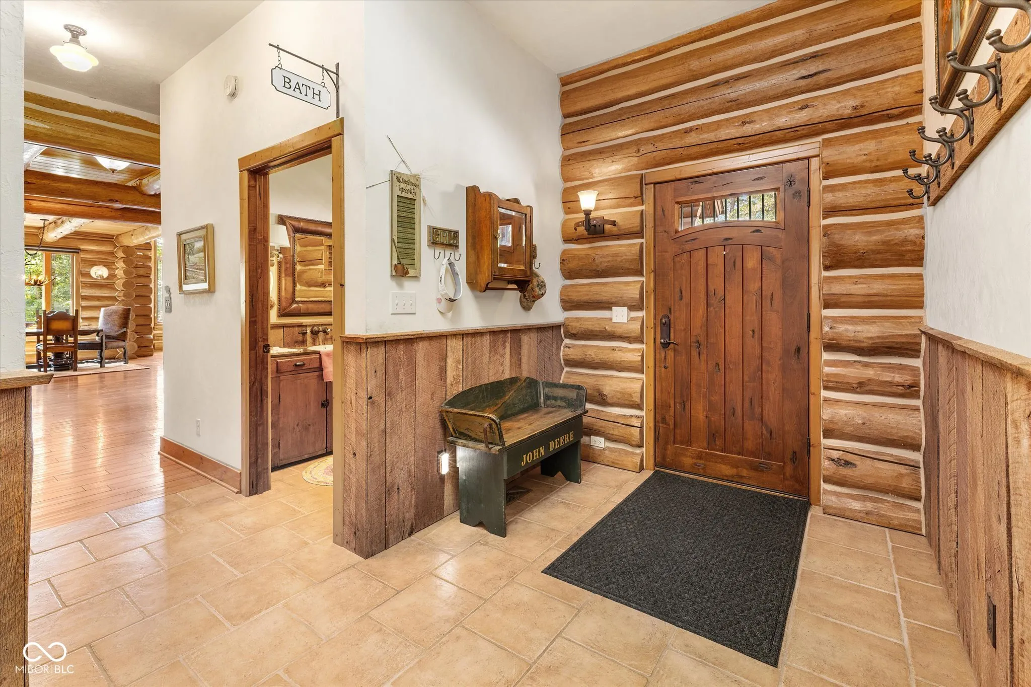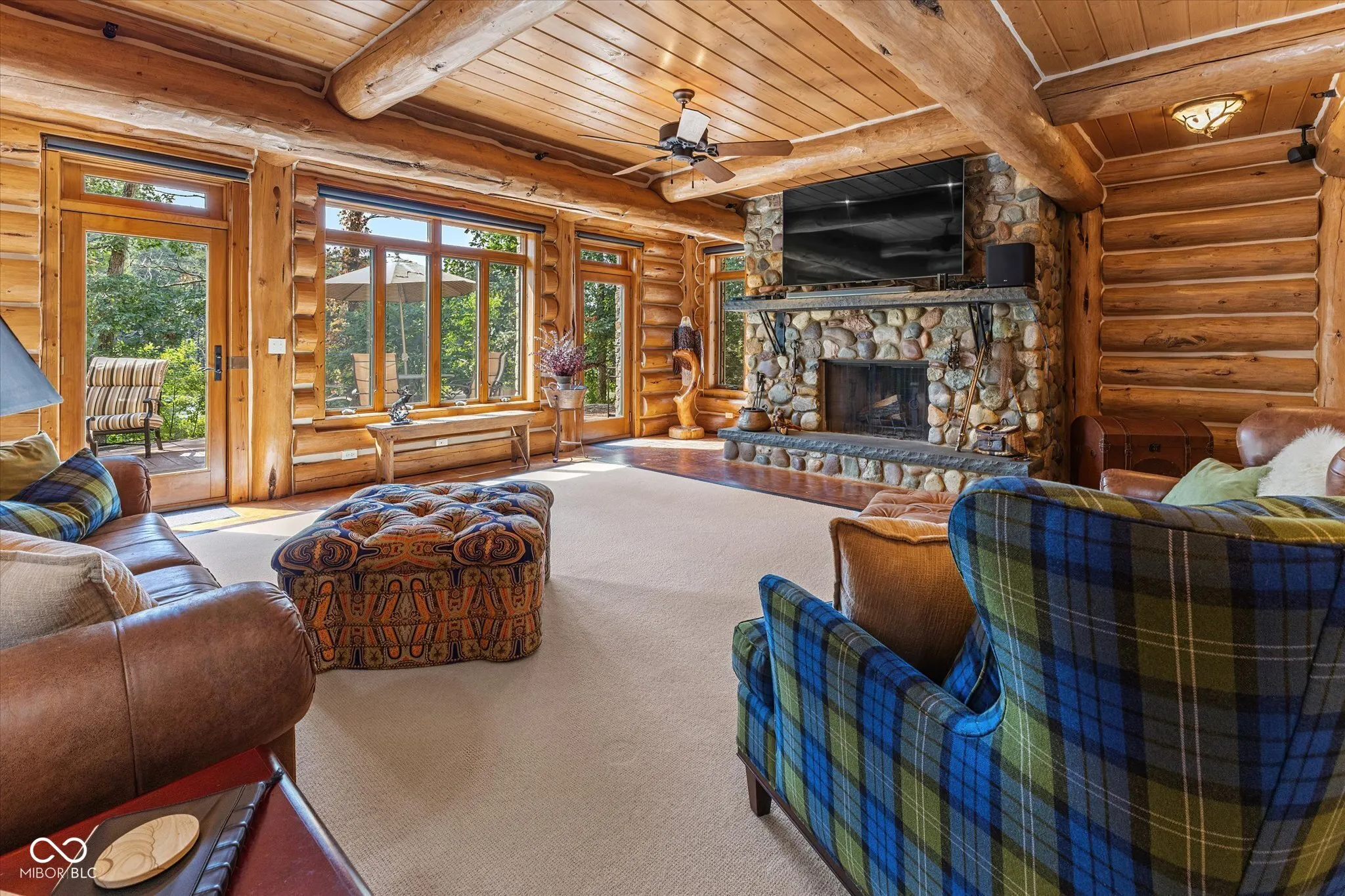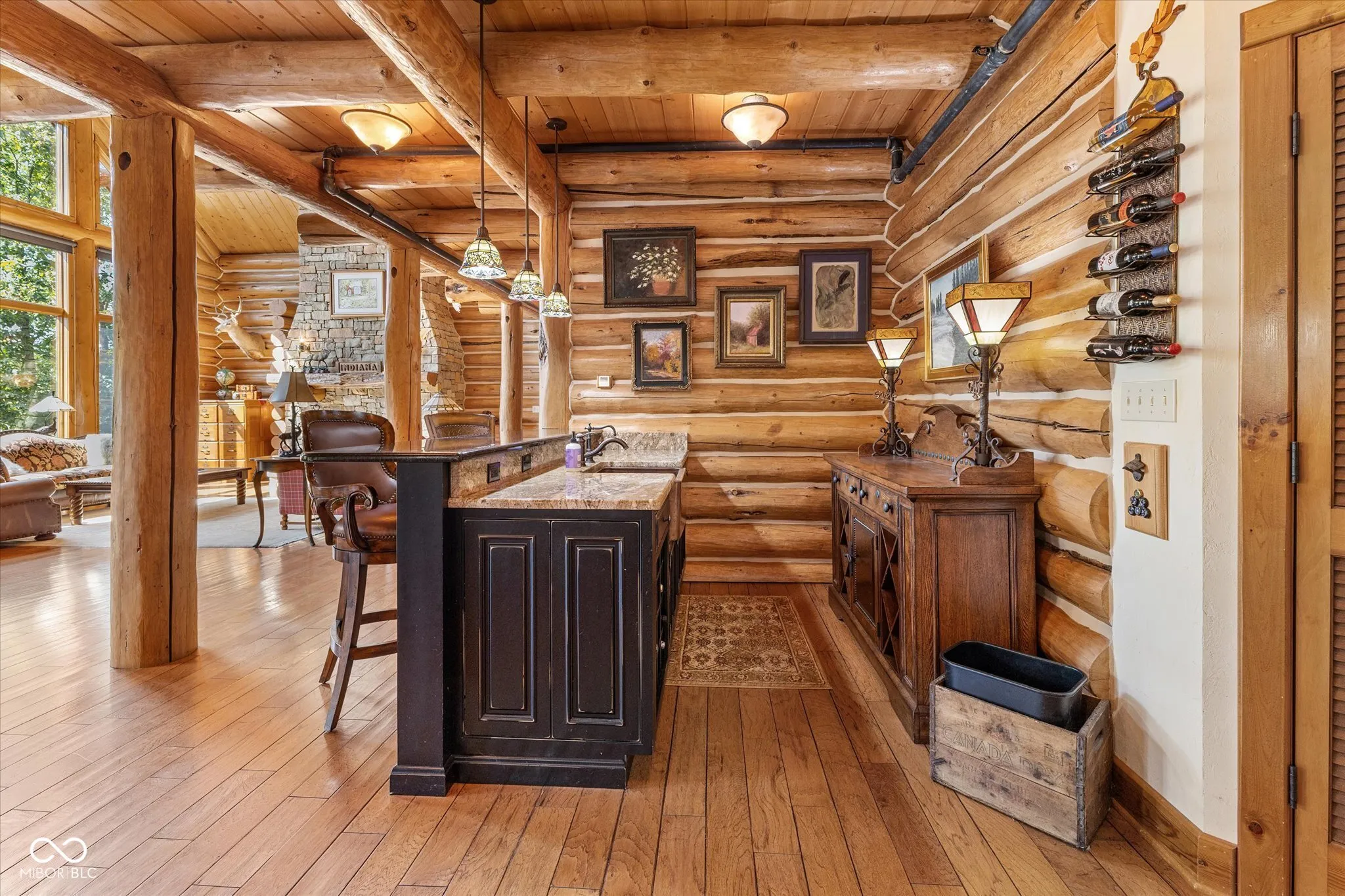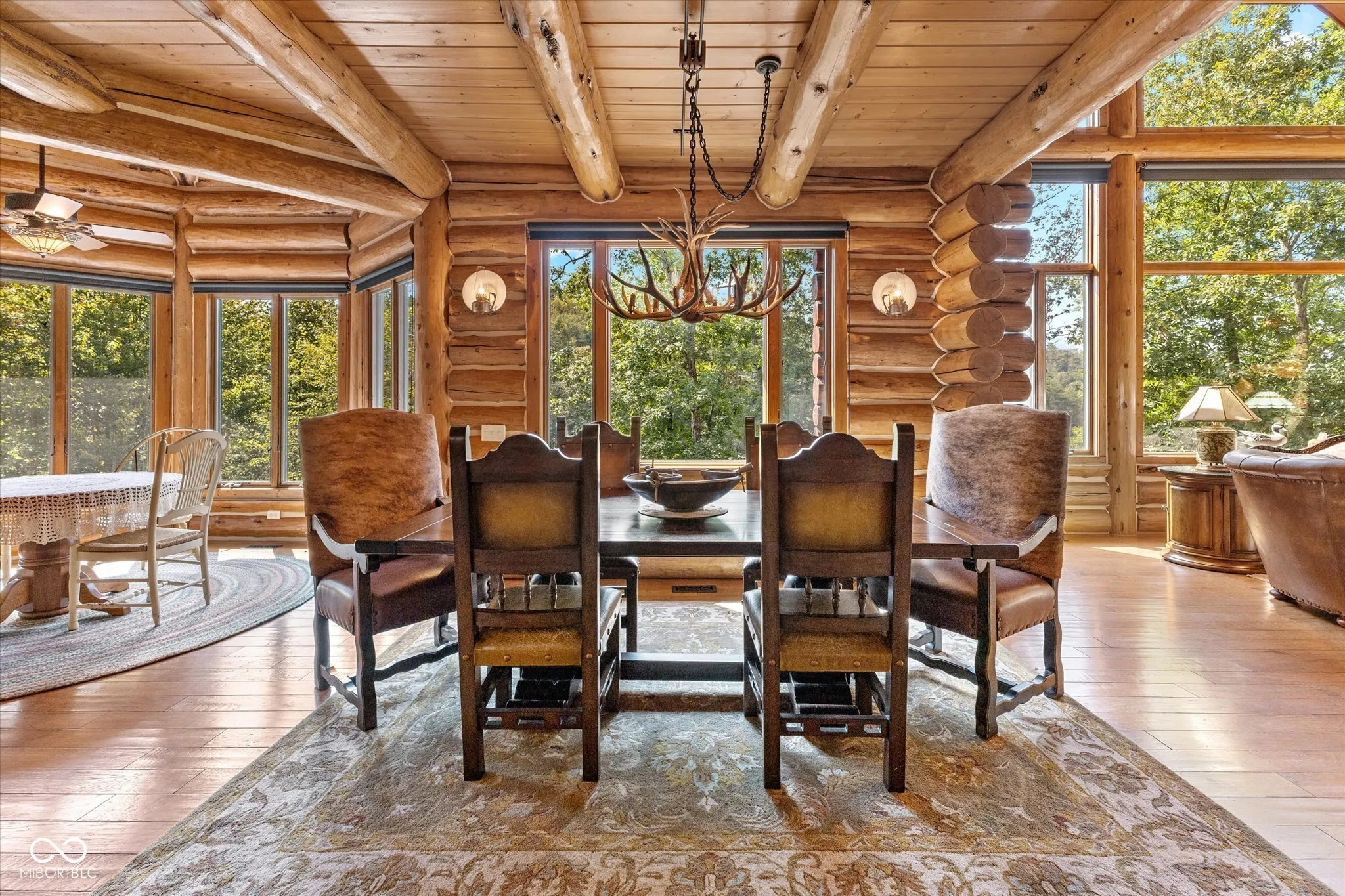 Private, Brown County Custom log home w/3bed/3.5bath, 3 car garage—-Tony Stewart toured this log home before his was built! Includes 9 parcels totaling roughly 222 acres with 3 bed/2 bath, 2 car, brick ranch home, large barn, fenced in garden, private lake, ATV/walking trails, private drive, wild flower fields & more. Amazing views from anywhere in the home! Sunroom has gas fireplace, access to Trex patio, views of side garden & lake. The upstairs loft will not disappoint, you will feel like you are in a tree house. The primary suite has its own breathtaking views of the land and lake, a large cedar closet and private bath featuring double sinks, raised counters, R/O water access, heated floors, custom walk-in shower with rainfall showerhead. The great room is the heart of the home w/cathedral ceiling, floor-to-ceiling stone fireplace & view of Lake Victoria. Lake has a dock-for fishing or attaching your trolling boat/kayak/canoe, lighted fountain, aerators & beautiful views of the log home. Kitchen has gas WOLF range, microwave blt into island, warming drawer, large 2 tiered island, walk-in pantry, room for barstools, a wet bar with more counter space and copper sink. Laundry room w/additional refrigerator, upright freezer, storage closet, washer, dryer, sink, etc. 3 car garage has pull through bay, built-in dog wash, 2 service doors, plenty of shelving. Walkout basement with heated, stained concrete floors, 2 full baths-one with a claw foot tub and stained glass transom window plus 2 additional bedrooms. Basement office has plenty of natural light & turret sitting area with access to full bath. Storage room has floor-to-ceiling shelves for all of your keepsakes or holiday items. Home has a generator, drive alert down by the guest house drive, potting shed area under sunroom, stamped concrete patio off of basement, stone lined walkway to lake, amazing terraced flower beds, newer roof. Ranch guest house has new LVP flooring throughout, new water heater.