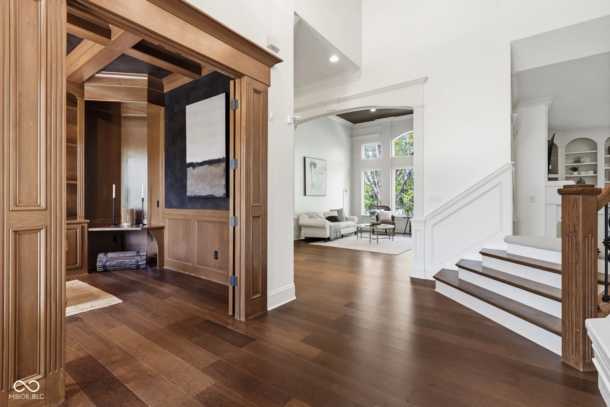 Experience unparalleled luxury living in this exquisite executive home, perfectly sited to capture breathtaking views of the Bridgewater Championship Golf Course. From the moment you enter the grand two-story foyer, you are enveloped in a home defined by natural light and superior craftsmanship. The open-concept floorplan is designed for seamless entertaining, flowing from a soaring great room to an expansive kitchen, a cozy hearth room, and stunning views from nearly every window. Property Highlights: Main-Level Primary Suite: A serene, private retreat offering maximum convenience. Five Ensuite Bedrooms: Each bedroom features a private bathroom and generous closet space-ideal for family and guests. Versatile Living: An impressive, vaulted-ceiling 2nd-level bonus room/playroom with custom built-ins serves as a perfect office, studio, or media lounge. Entertainer’s Walk-Out Basement: Fully finished with a large wet bar, theater room, game room, and dedicated fitness space. Outdoor Paradise: Your private oasis features an elevated covered porch and an open patio, highlighted by a tranquil waterfall and koi pond, all set against a backdrop of mature trees and pristine golf course vistas. The Lifestyle: Embrace resort-style living at The Bridgewater Club. Membership provides exclusive access to two championship golf courses, indoor/outdoor pools, tennis and pickleball courts, a state-of-the-art fitness center, fine dining, and a year-round social calendar. This is a rare opportunity to own a premier property in one of the region’s most desirable communities. Schedule your private tour today.