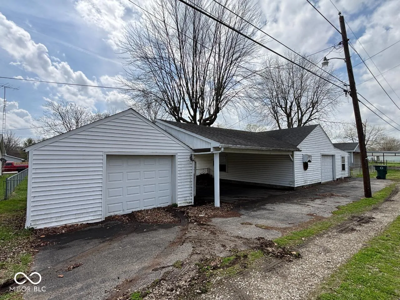 Incredible opportunity on this bank-owned property offering space, functionality, and value! This well-built home features over 1,200 square feet with 3 bedrooms and a full bath, plus a partial basement for additional storage. Situated on three lots, the fully chain-link fenced yard provides plenty of room to spread out. Exterior improvements include architectural shingles, vinyl replacement windows, a covered concrete front porch, stamped concrete sidewalk, and a rear patio deck-perfect for relaxing or entertaining. The property is equipped with a high-efficiency Trane gas furnace and central air. All appliances will remain (condition unknown). Car enthusiasts, hobbyists, or those needing extra workspace will love the multiple outbuildings, including an 18×17 detached garage, a 24×35 heated garage with shop area, storage space, and a convenient half bath, plus an additional 20×24 carport for even more covered parking. Home does need some TLC but offers tremendous potential. A rare find with this much to offer-don’t miss your chance!