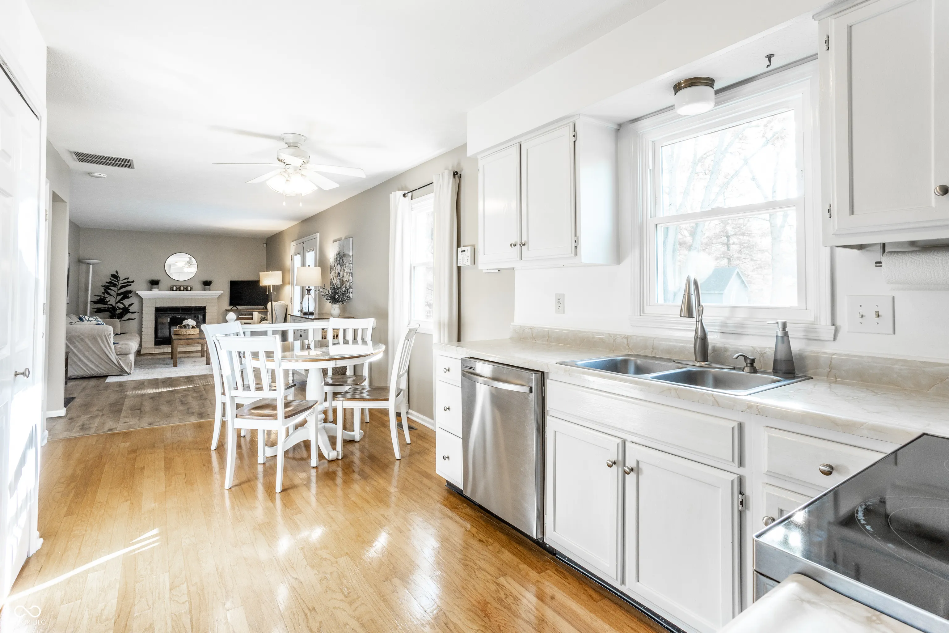One of Zionsville’s most popular neighborhoods! Village Walk is walking distance to trails, sidewalks, schools, shopping, parade route, and parks while offering large lot sizes and a friendly community. This home’s setting is a double bonus: private-cul-de sac and giant fenced yard. Three bedrooms and 2.5 baths on a crawl space. Main level is inviting with hardwood laminate and LVP in common spaces, large living room, comfy family room w/ cozy wood-burning fireplace, formal dining room/bonus room. Upstairs offers 3 large bedrooms. En suite primary features a very large and updated bathroom. Outdoor patio space overlooks huge back yard with privacy. One of the best lots in the community. All new vinyl windows in 2024. Roof 13 Years. All appliances remain, including washer/dryer. Pleasantview, ZMS, ZCHS Schools.