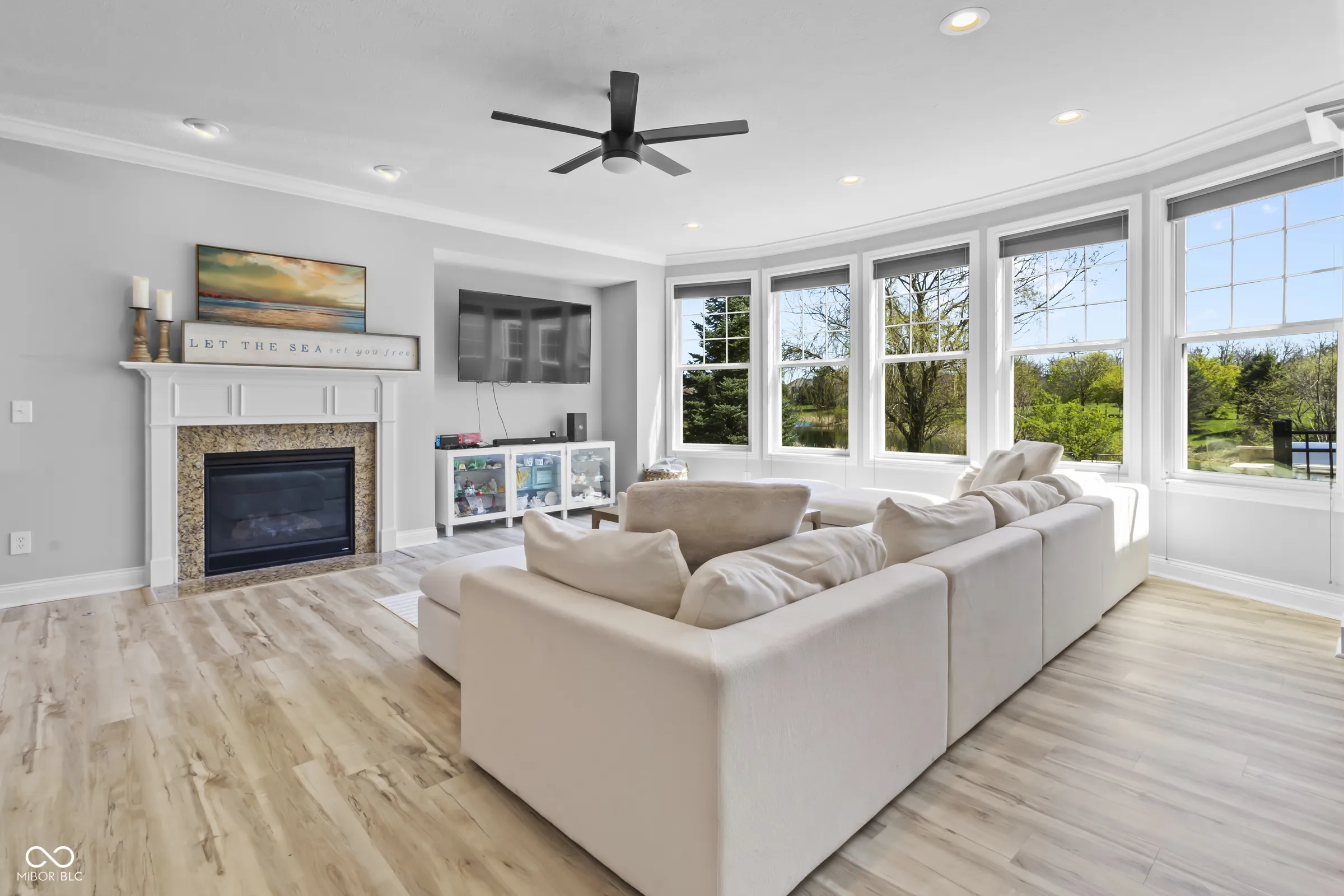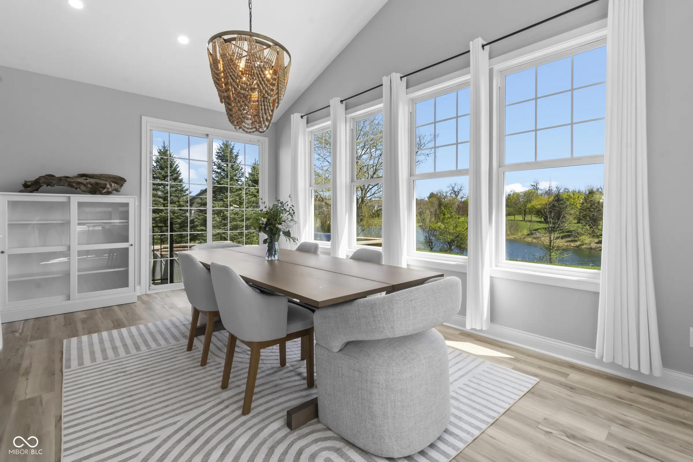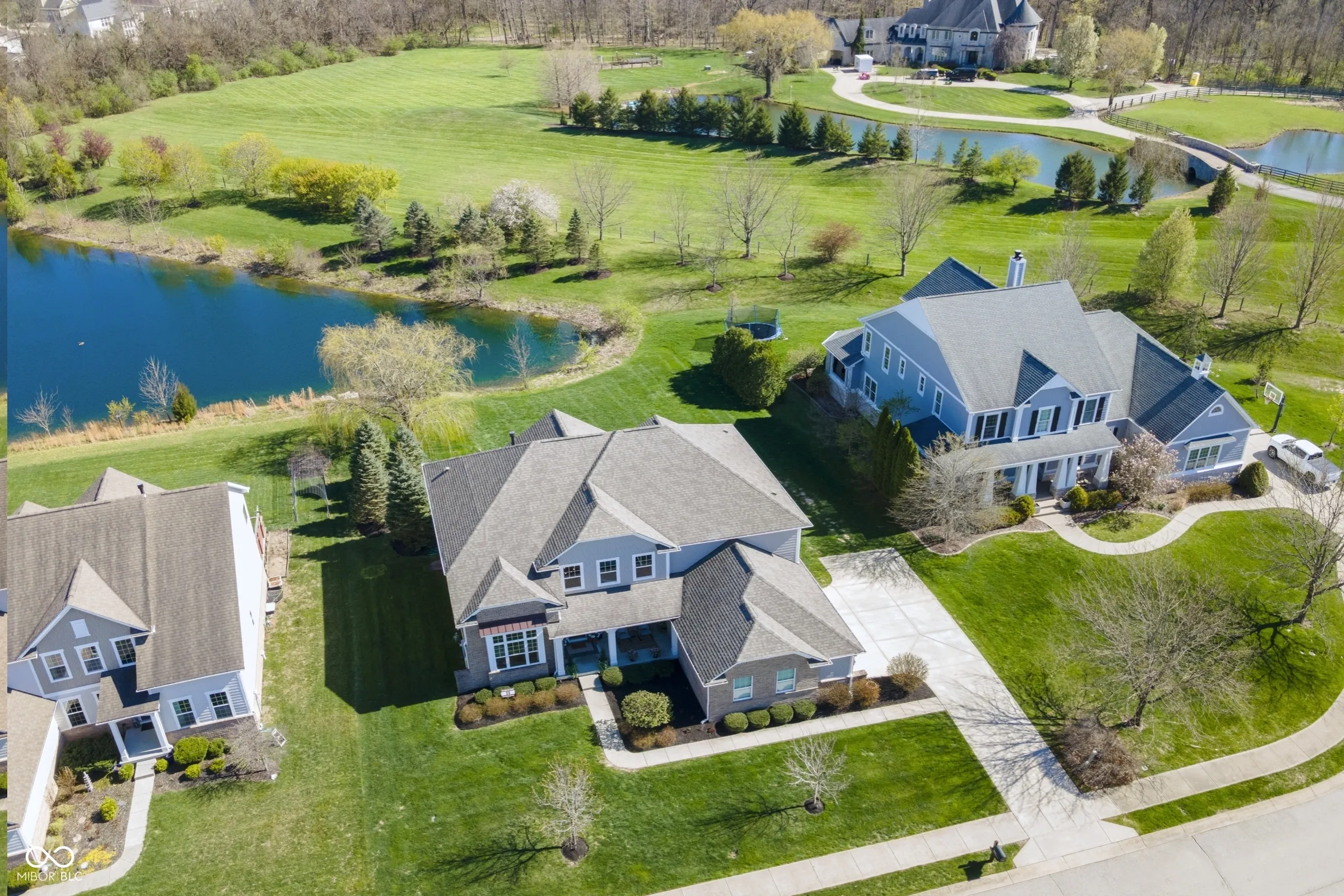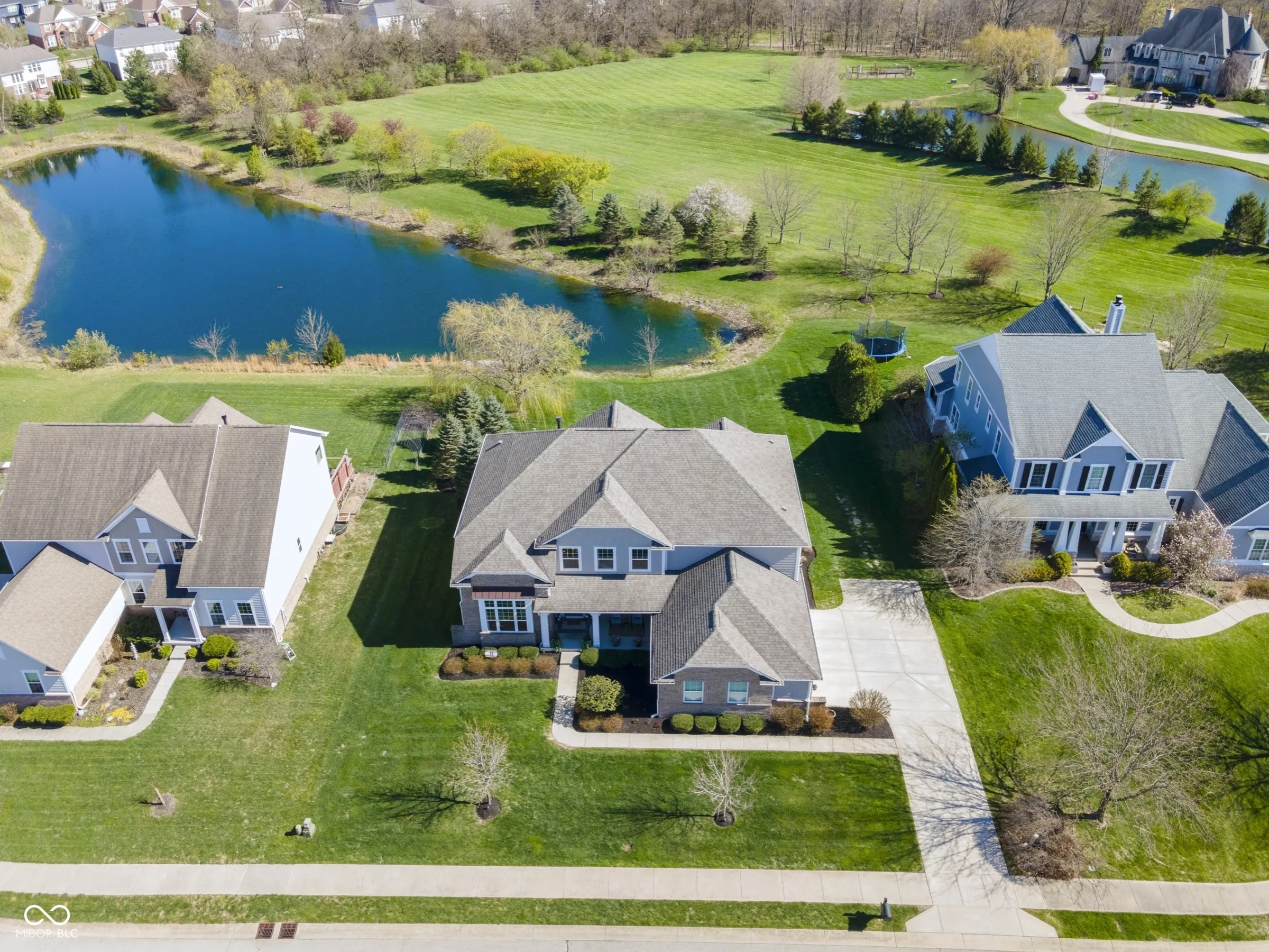 Situated within a private setting in Long Ridge Estates, this 5 bedroom, 4.5 bath home, with over 6,000 square feet across three levels, offers a rare combination of stunning views and uninterrupted backdrop with no homes in view. Defined by light, layout, and livability, the home balances scale with comfort and openness with purpose, creating a setting that supports daily life and long-term flexibility without compromise. Access to Carmel’s highest-ranked elementary, middle, and high schools further enhances its appeal. Openness and natural light are introduced by a dramatic two-story entry and living room that establish both scale and flow. The main level is designed to accommodate everyday living and large gatherings, centered around a dramatic great room with a gas fireplace and seamless connection to surrounding spaces. The kitchen, expansive and well-appointed, features built-in appliances, generous cabinetry and counterspace, and a center island, opening to the breakfast area and morning room oriented to the water and landscape. Upstairs, the private primary suite is oriented to capture the home’s views, with a spacious layout, dual sinks, soaking tub, separate shower, and a walk-in closet designed for both scale and organization. Additional bedrooms are well-proportioned, and a versatile loft provides flexible space for work, media, or retreat. The lower level is designed with both function and recreation in mind, featuring a spacious family area, wet bar, theater designed for an immersive experience, a guest bedroom and full bath. Outdoor living continues with a patio, outdoor kitchen, and fire feature, all positioned to take full advantage of the home’s unobstructed views across the water and landscape beyond. Neighborhood amenities include a pool and tennis courts, with convenient access to Indianapolis, Zionsville, Westfield, and major corridors including I-465 and I-65, along with close proximity to dining, shopping, and everyday destinations.