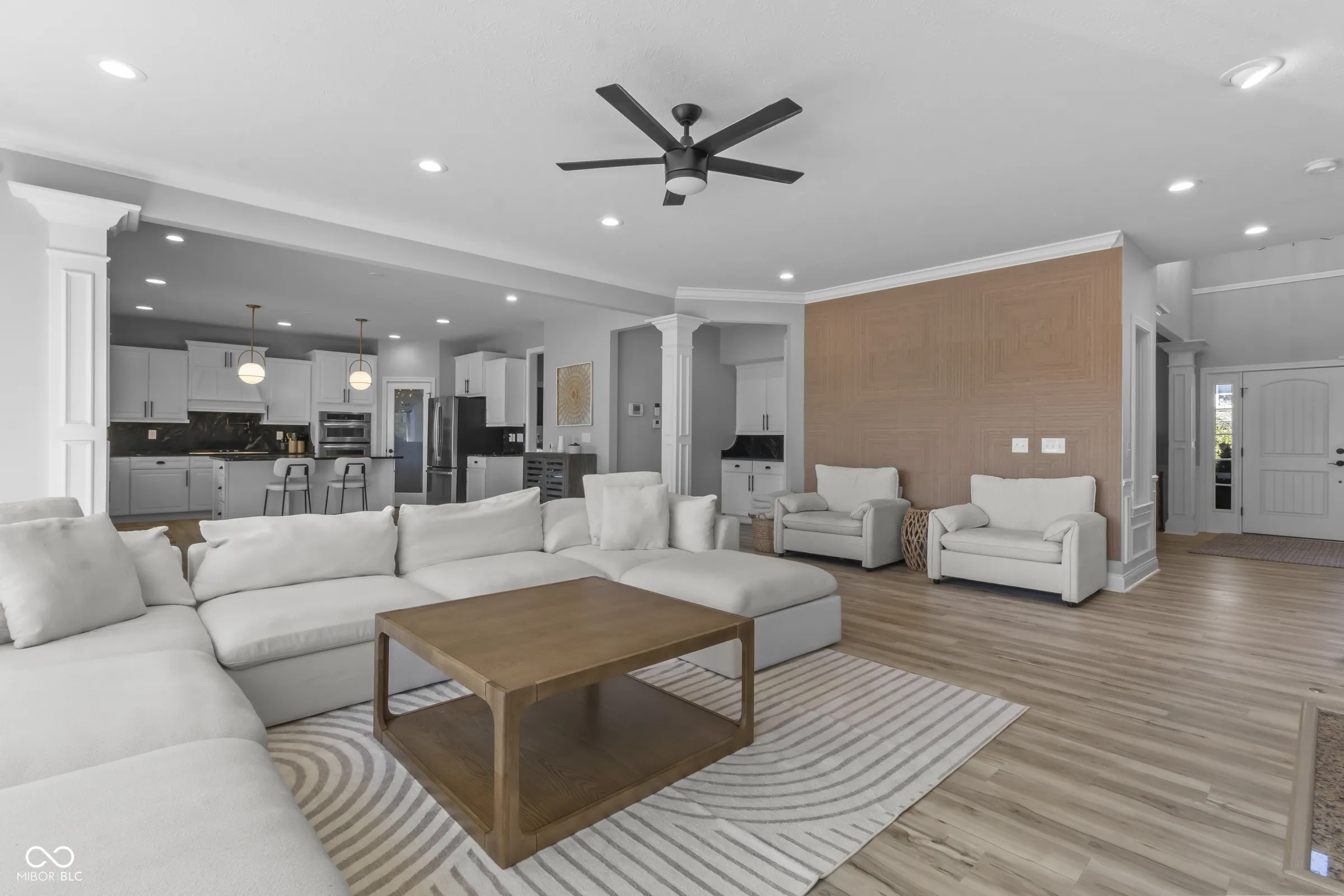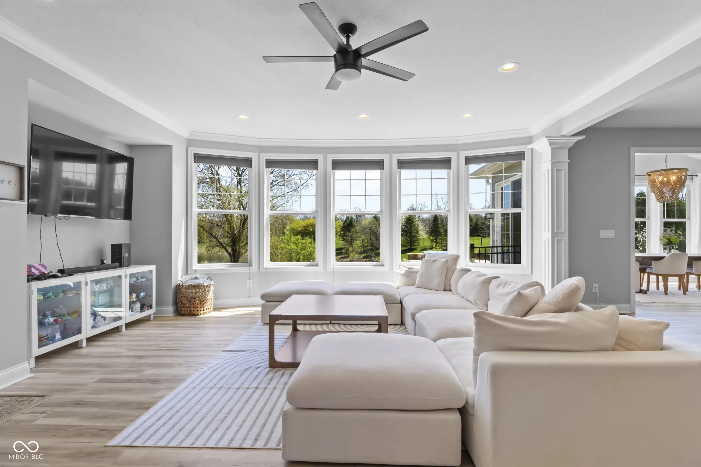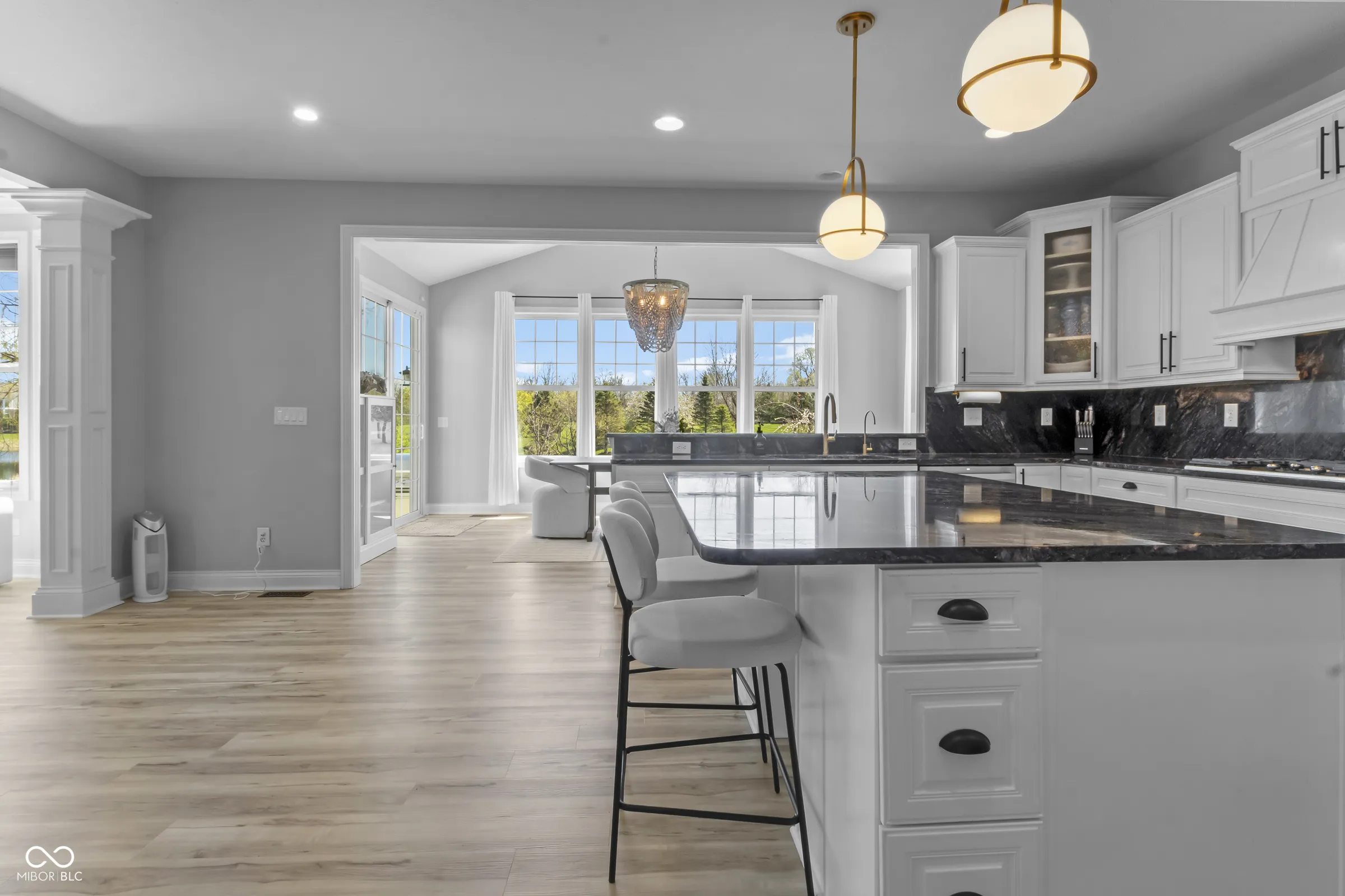 Situated within a private setting in Long Ridge Estates, this 5 bedroom, 4.5 bath home, with over 6,000 square feet across three levels, offers a rare combination of stunning views and uninterrupted backdrop with no homes in view. Defined by light, layout, and livability, the home balances scale with comfort and openness with purpose, creating a setting that supports daily life and long-term flexibility without compromise. Access to Carmel’s highest-ranked elementary, middle, and high schools further enhances its appeal. Openness and natural light are introduced by a dramatic two-story entry and living room that establish both scale and flow. The main level is designed to accommodate everyday living and large gatherings, centered around a dramatic great room with a gas fireplace and seamless connection to surrounding spaces. The kitchen, expansive and well-appointed, features built-in appliances, generous cabinetry and counterspace, and a center island, opening to the breakfast area and morning room oriented to the water and landscape. Upstairs, the private primary suite is oriented to capture the home’s views, with a spacious layout, dual sinks, soaking tub, separate shower, and a walk-in closet designed for both scale and organization. Additional bedrooms are well-proportioned, and a versatile loft provides flexible space for work, media, or retreat. The lower level is designed with both function and recreation in mind, featuring a spacious family area, wet bar, theater designed for an immersive experience, a guest bedroom and full bath. Outdoor living continues with a patio, outdoor kitchen, and fire feature, all positioned to take full advantage of the home’s unobstructed views across the water and landscape beyond. Neighborhood amenities include a pool and tennis courts, with convenient access to Indianapolis, Zionsville, Westfield, and major corridors including I-465 and I-65, along with close proximity to dining, shopping, and everyday destinations.