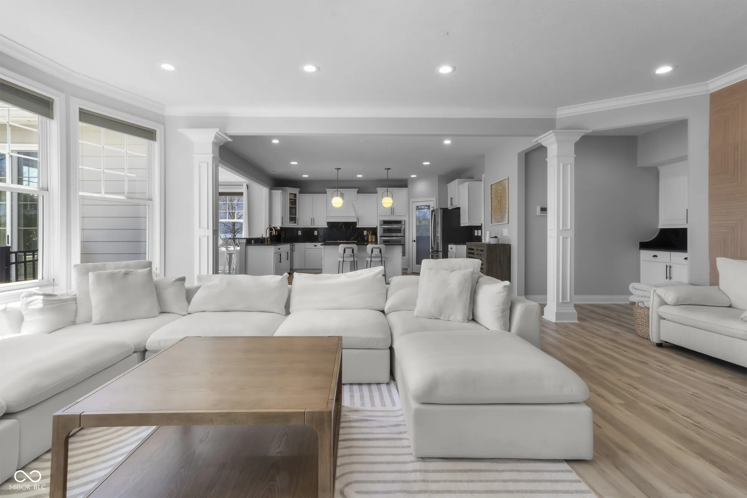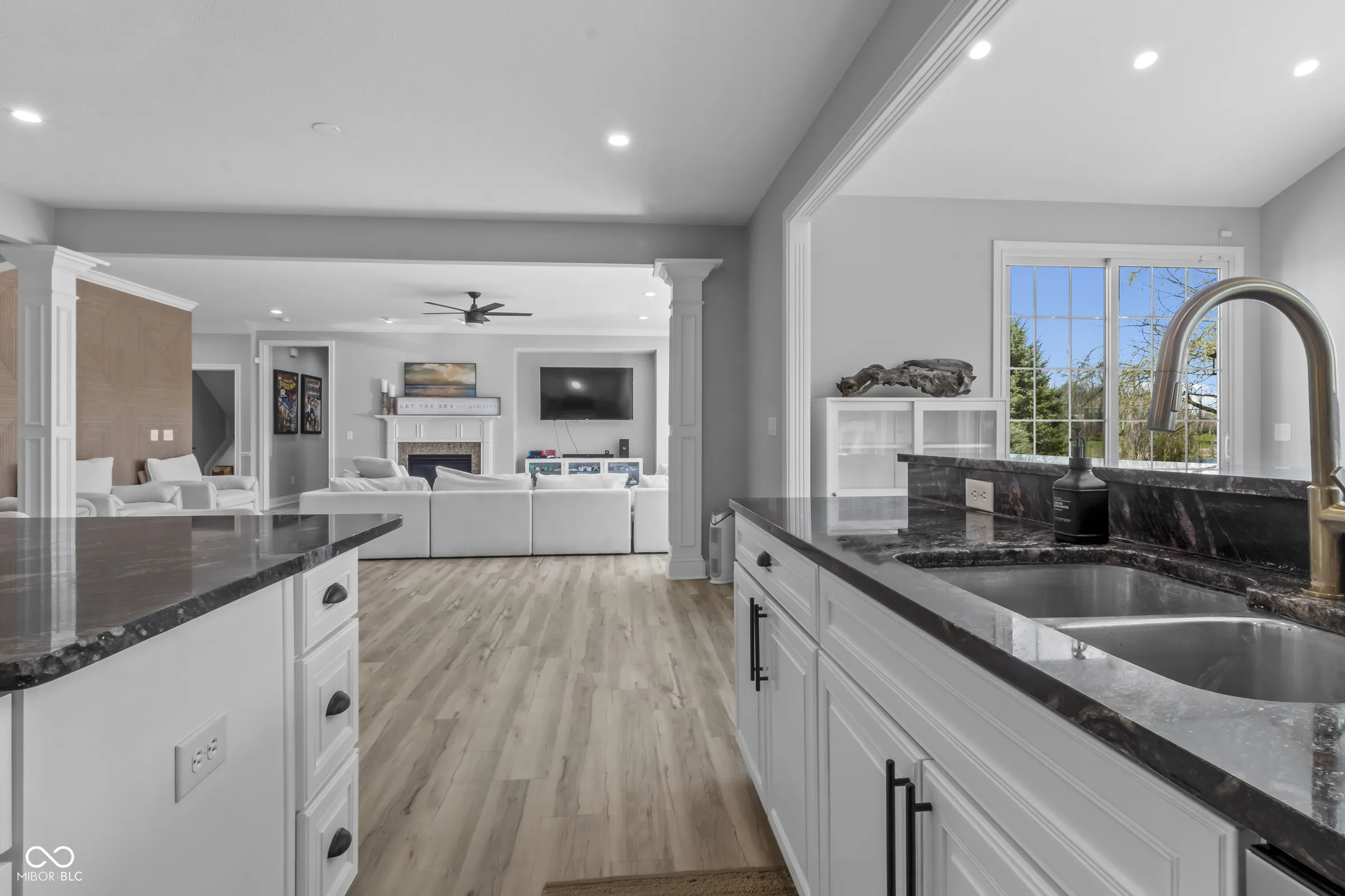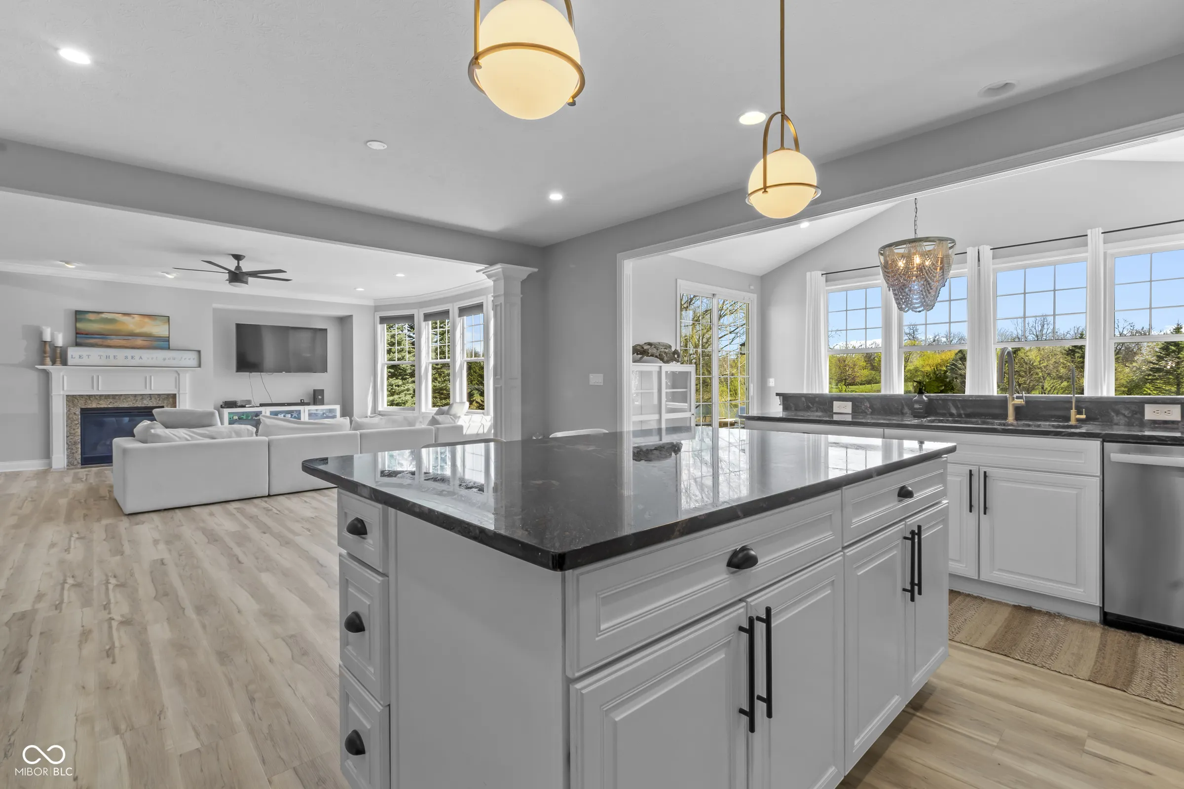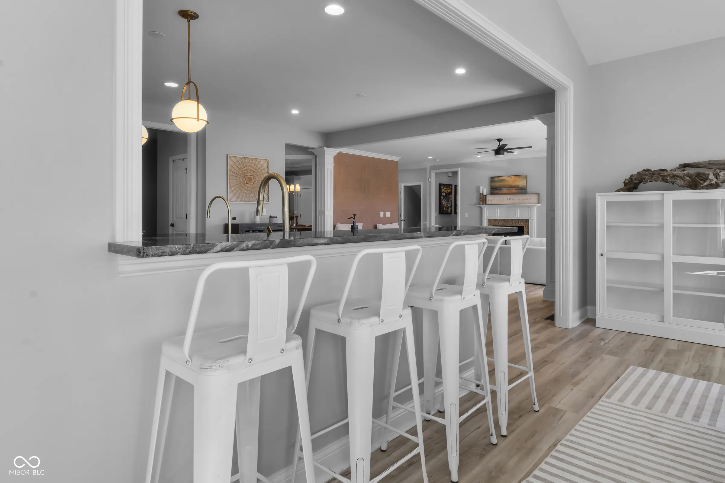 Situated within a private setting in Long Ridge Estates, this 5 bedroom, 4.5 bath home, with over 6,000 square feet across three levels, offers a rare combination of stunning views and uninterrupted backdrop with no homes in view. Defined by light, layout, and livability, the home balances scale with comfort and openness with purpose, creating a setting that supports daily life and long-term flexibility without compromise. Access to Carmel’s highest-ranked elementary, middle, and high schools further enhances its appeal. Openness and natural light are introduced by a dramatic two-story entry and living room that establish both scale and flow. The main level is designed to accommodate everyday living and large gatherings, centered around a dramatic great room with a gas fireplace and seamless connection to surrounding spaces. The kitchen, expansive and well-appointed, features built-in appliances, generous cabinetry and counterspace, and a center island, opening to the breakfast area and morning room oriented to the water and landscape. Upstairs, the private primary suite is oriented to capture the home’s views, with a spacious layout, dual sinks, soaking tub, separate shower, and a walk-in closet designed for both scale and organization. Additional bedrooms are well-proportioned, and a versatile loft provides flexible space for work, media, or retreat. The lower level is designed with both function and recreation in mind, featuring a spacious family area, wet bar, theater designed for an immersive experience, a guest bedroom and full bath. Outdoor living continues with a patio, outdoor kitchen, and fire feature, all positioned to take full advantage of the home’s unobstructed views across the water and landscape beyond. Neighborhood amenities include a pool and tennis courts, with convenient access to Indianapolis, Zionsville, Westfield, and major corridors including I-465 and I-65, along with close proximity to dining, shopping, and everyday destinations.
