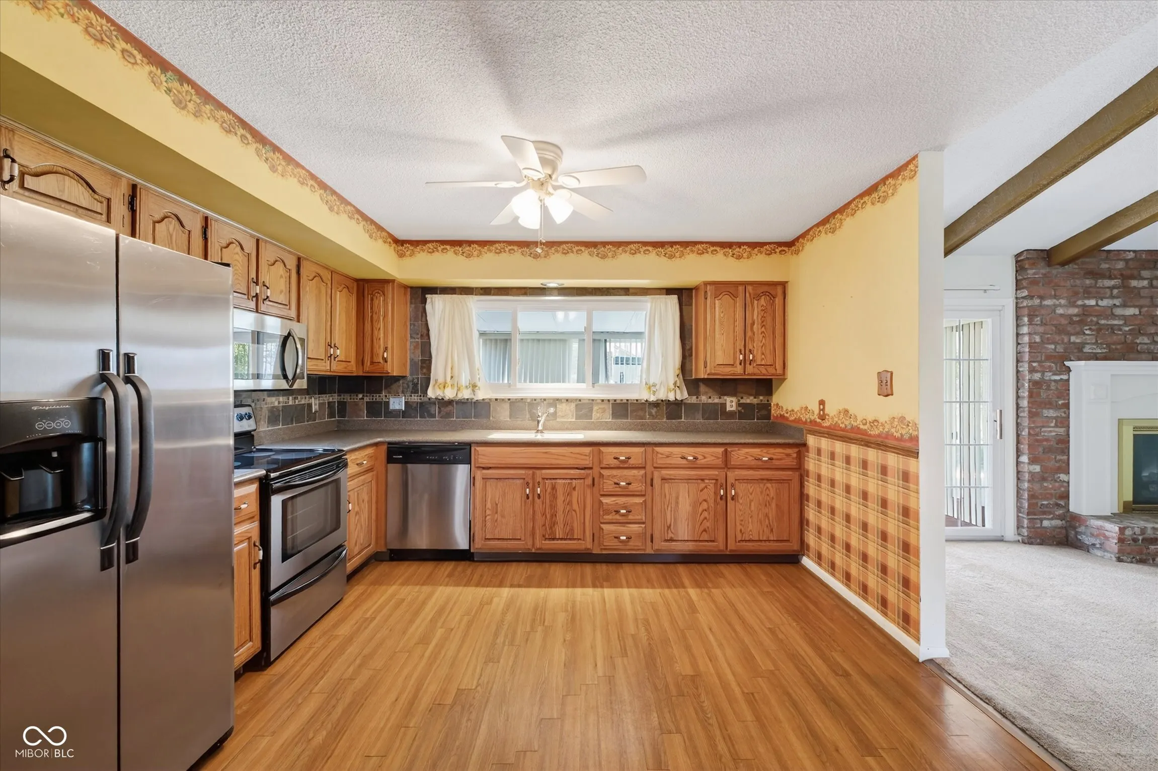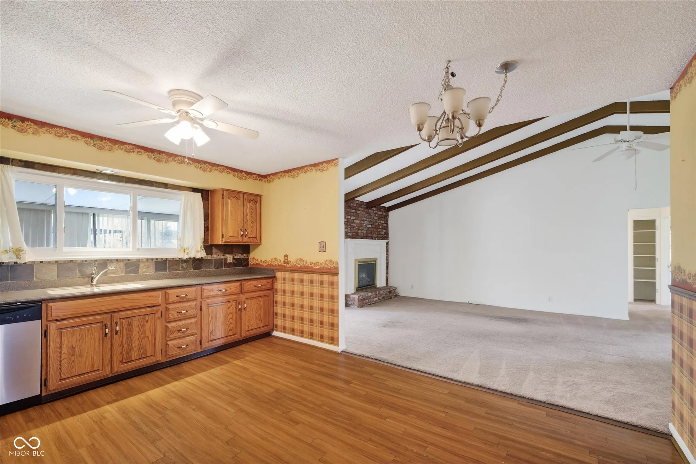 Estate sale offered as-is. This 3-bedroom, 2 full bath home features a functional layout with great potential for updates and personal touches. The spacious living room showcases vaulted ceilings with exposed wood beams and a brick fireplace with an electric insert, while the formal dining room adds extra space for everyday living and entertaining. The eat-in kitchen is equipped with stainless steel appliances and Corian countertops. A sunroom-excluded from the total square footage-provides a versatile space perfect for relaxing, working, or hobbies. Outside, enjoy a covered patio, fully fenced backyard, and storage shed. Additional highlights include newer windows and a 2-car attached garage. Located in MSD Washington Township, this property is a great opportunity for investors or owner-occupants looking to add value and make it their own.