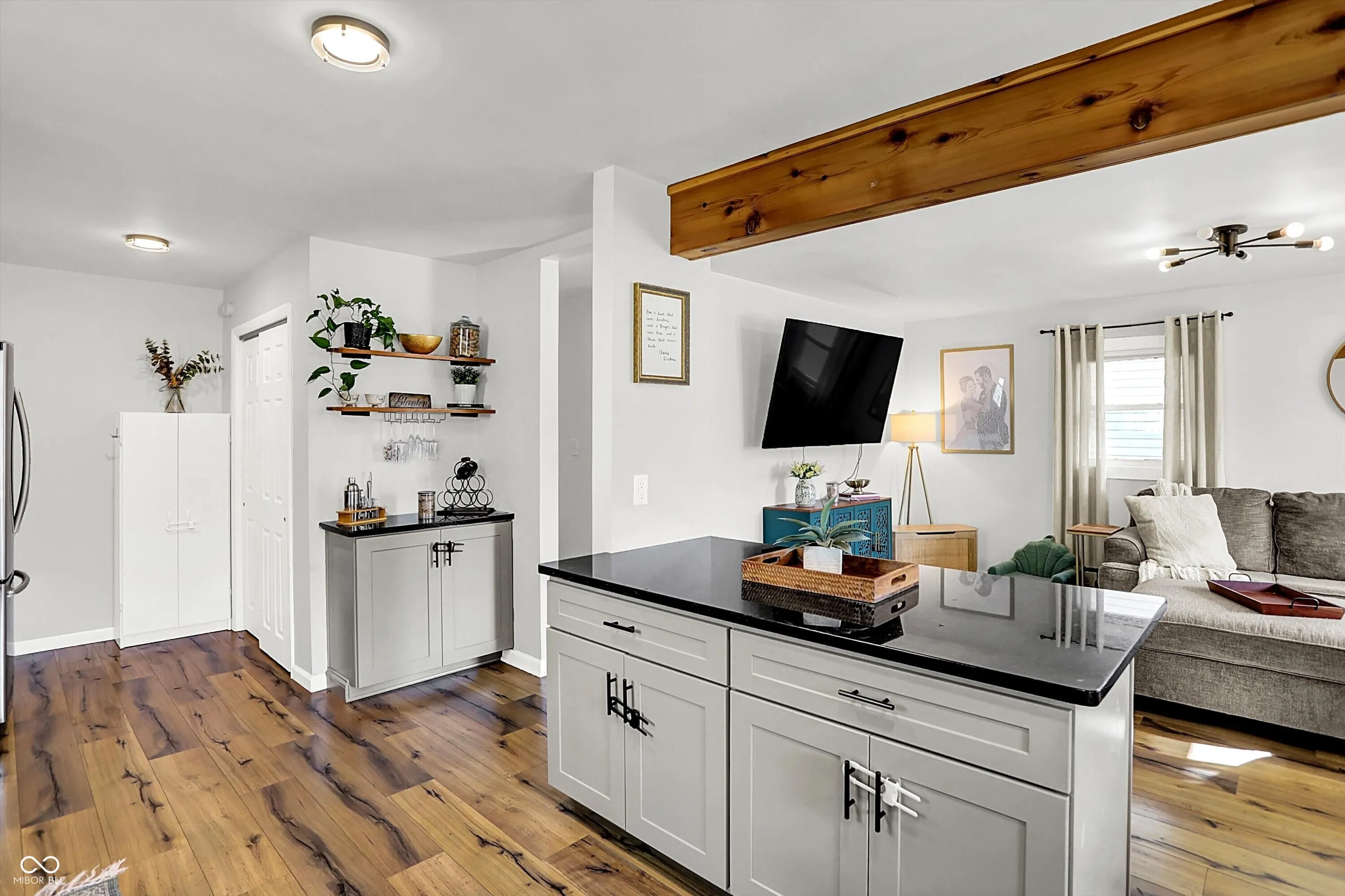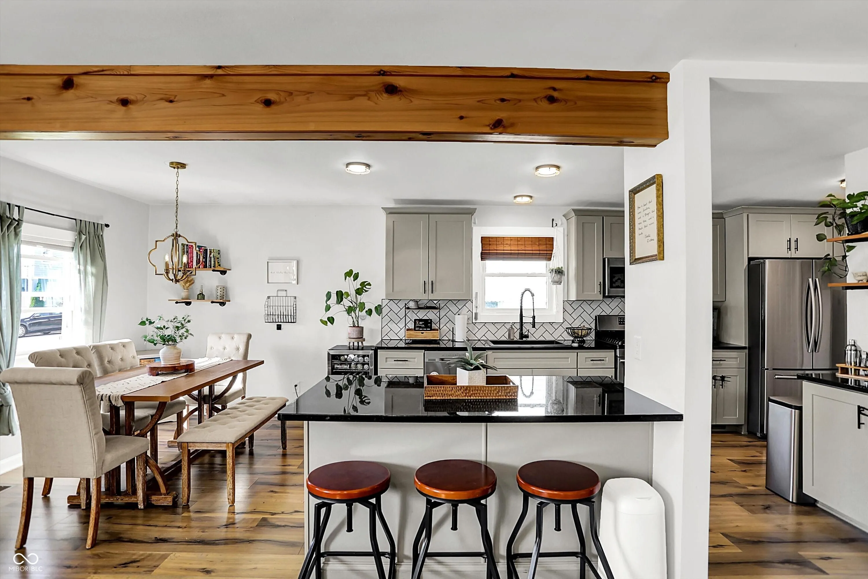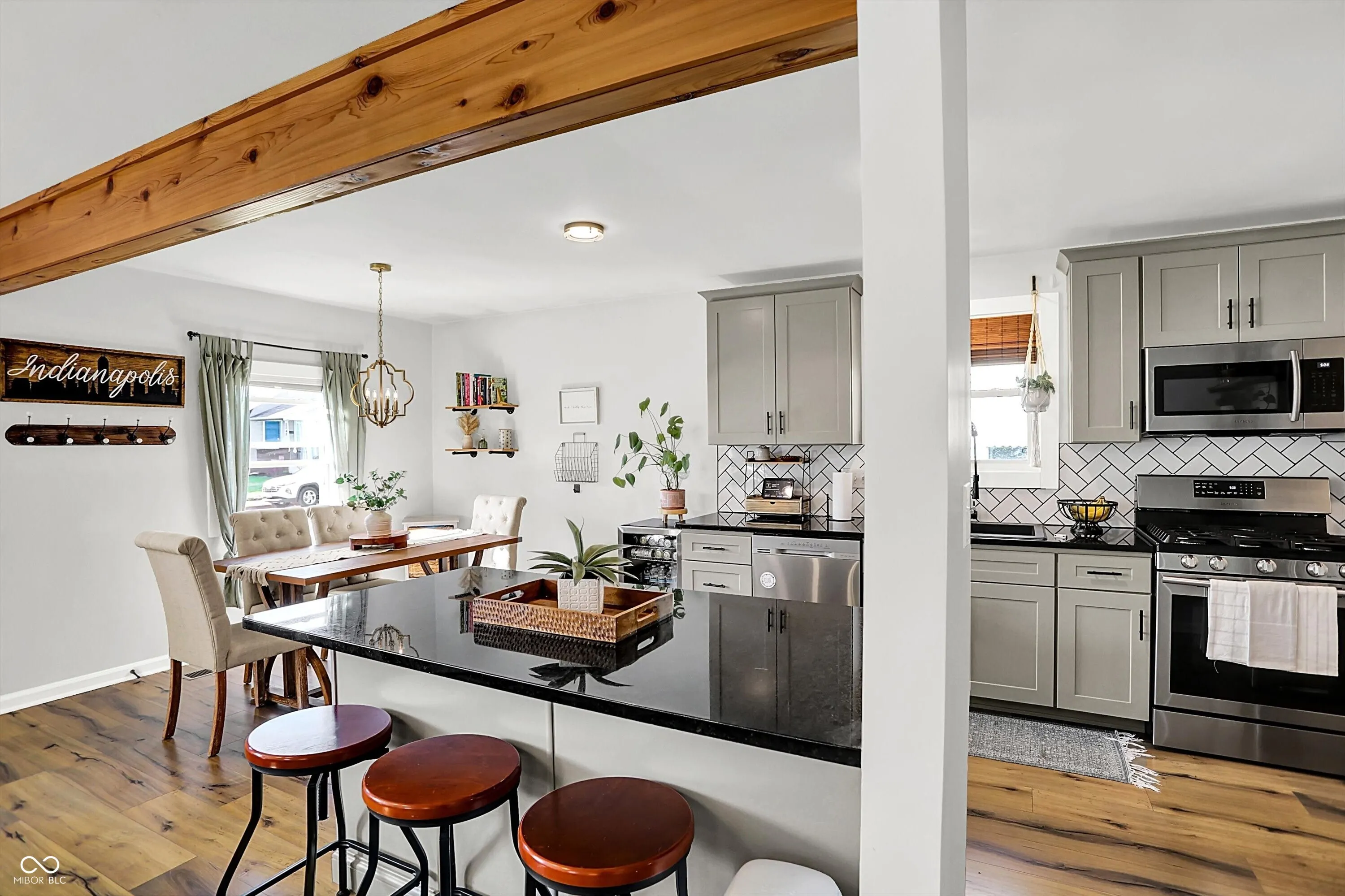 Welcome to this beautifully updated 3-bedroom, 2-bath ranch offering 1,464 sq ft in an unbeatable location-just steps from the Monon Trail and minutes to Mass Ave, Bottleworks, and Downtown Indianapolis. From the moment you enter, you’ll appreciate the spacious living area and open-concept layout that flows seamlessly into the dining space and fully renovated kitchen. Designed for both modern living and entertaining, the kitchen features soft-close cabinetry, granite countertops, a large center island with a breakfast bar, and a stylish coffee bar. Completely renovated in 2020, this home offers peace of mind with major mechanical updates including a newer roof, HVAC system, and energy-efficient windows, along with durable laminate flooring throughout the main living areas. The primary bedroom provides a comfortable retreat, while two additional bedrooms offer flexibility for guests or a growing family. In addition, a dedicated home office space provides the perfect setup for remote work or a quiet workspace-offering even more versatility beyond the three bedrooms. Both full bathrooms have been thoughtfully remodeled with tile floors, tiled surrounds, and modern vanities and finishes-featuring updated fixtures and contemporary design. A dedicated main-level laundry/mud room with a convenient drop zone adds to the home’s functionality-a highly desirable feature for today’s buyers. Step outside to a show-stopping covered patio overlooking a fully fenced backyard-perfect for pets, entertaining, or relaxing evenings around the fire pit-creating your own private outdoor living space.