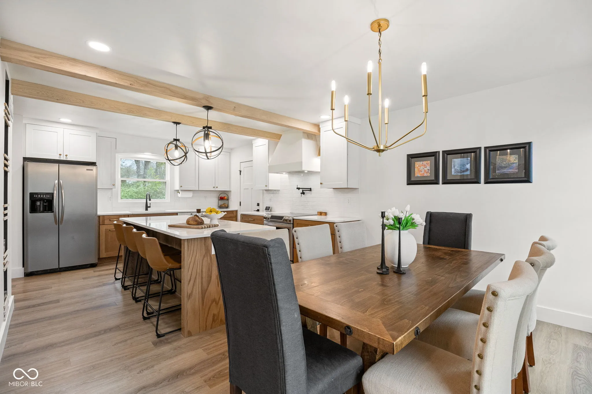 Perfectly positioned on a nearly half-acre lot with a peaceful tree-lined setting and creek, this fully updated Carmel home offers a rare blend of privacy, design, and livability. Featuring a brand-new kitchen with quartz countertops, all new appliances, and a built-in wine shelf, it flows seamlessly into an inviting dining area-perfect for both everyday living and entertaining. The living room, complete with a cozy wood-burning fireplace and a custom coffee bar, adds the perfect touch of charm and personality. Need flexibility? The main-level office easily functions as a fourth bedroom, offering versatility to fit your lifestyle. Upstairs, you’ll find three bedrooms, a convenient laundry closet, and a spacious primary suite featuring a fireplace, custom closet, and beautifully updated bath retreat. Every bathroom in the home has been fully renovated with stylish, modern finishes, elevating both form and function throughout. The finished basement is just as impressive-meticulously designed with ample storage, additional living spaces, and an additional full bath, making it as functional as it is inviting. The backyard extends your living space outdoors, offering a private and tranquil setting framed by mature trees and a gentle creek-perfect for quiet mornings, entertaining, or simply unwinding at the end of the day. Throughout the home, every space has been thoughtfully utilized with creative storage solutions and intentional design, blending function and charm in a way that feels both elevated and effortless. This is the one you’ve been waiting for.