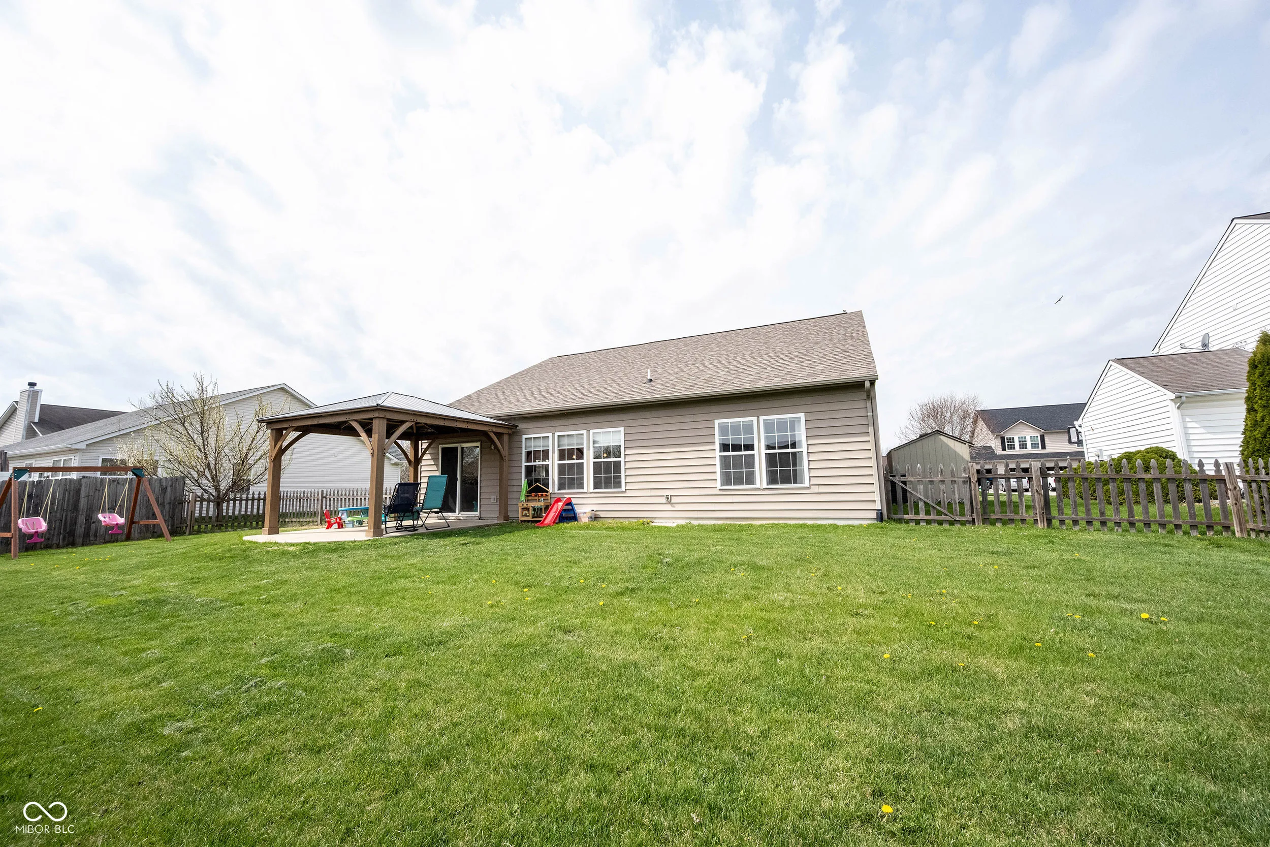 Updated, Move-In Ready Ranch in Noblesville. This single-story ranch offers excellent value, combining an affordable price point with major recent updates. The open floor plan features 9-foot ceilings, spacious closets throughout, and a kitchen with a large center island. Over the past two years, all the heavy lifting has been done for you. The property includes a new roof, a new HVAC system, fresh paint, a new water softener, and updated LVP and carpet flooring. The exterior is just as practical, featuring a fully fenced backyard, a patio with an added pergola/gazebo, and a spacious shed for extra storage needs. All kitchen appliances, washer, dryer, garage fridge, and playset are included with the sale. It is difficult to find a home in Noblesville in this condition and at this price. Schedule your showing today.