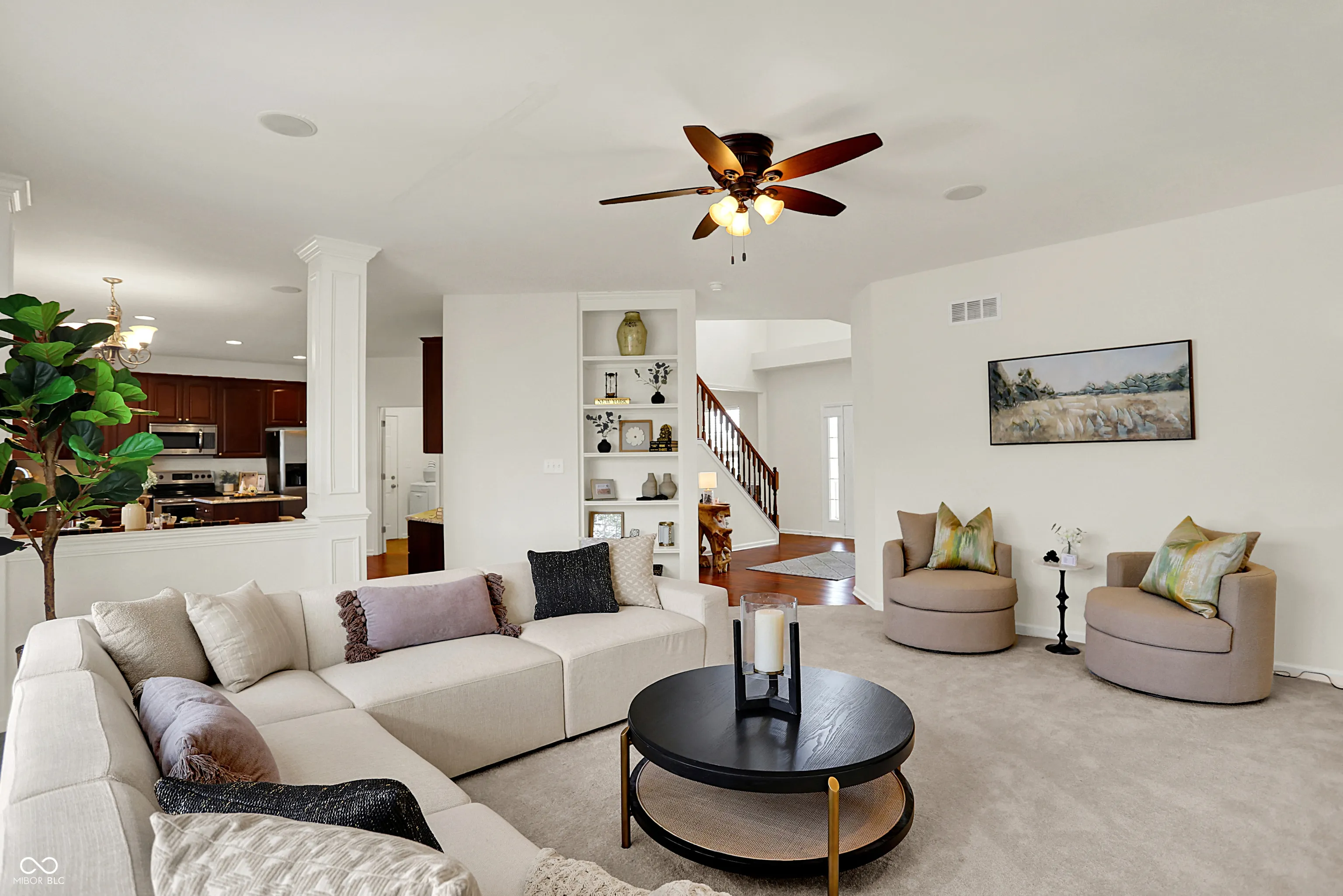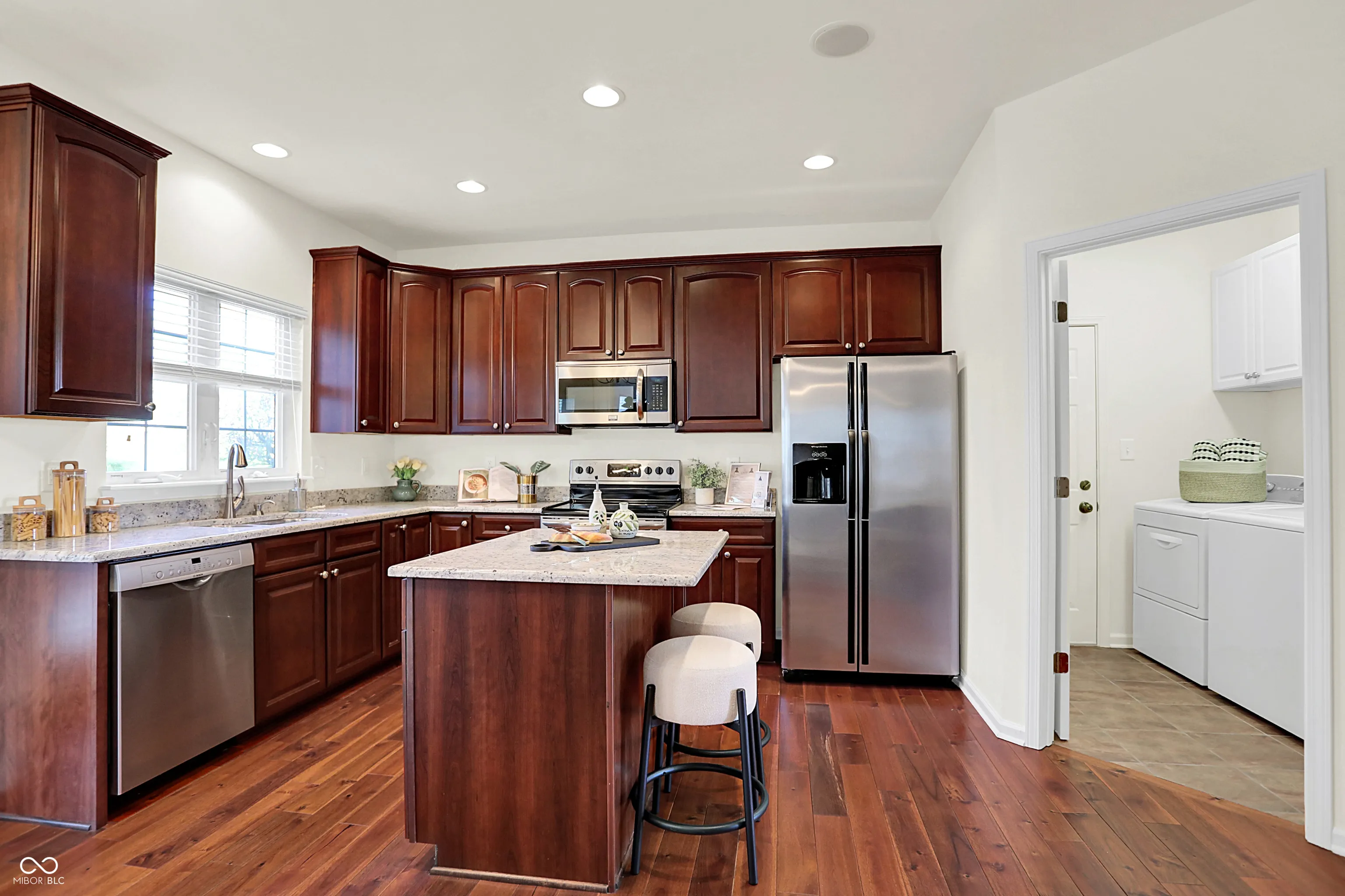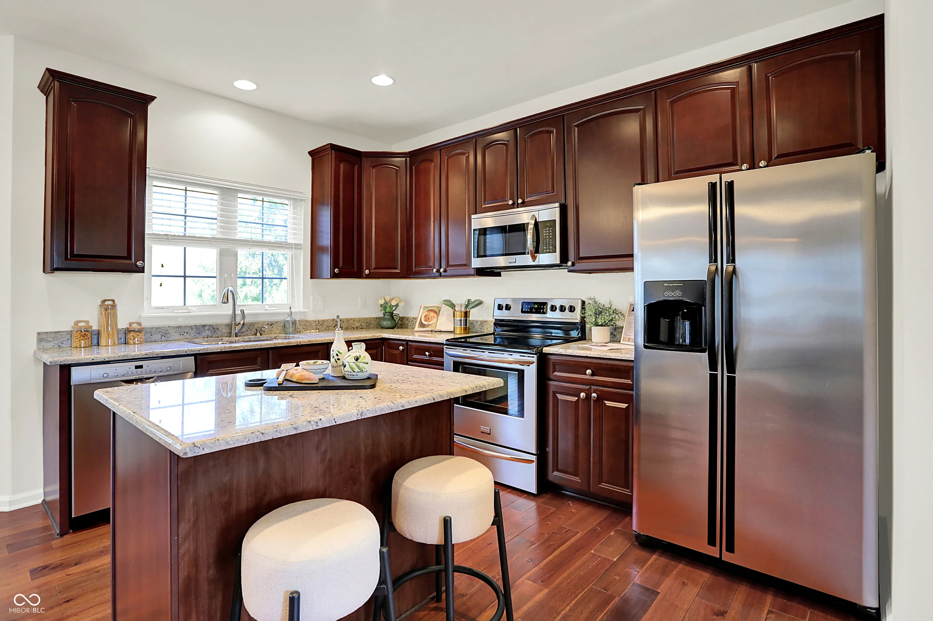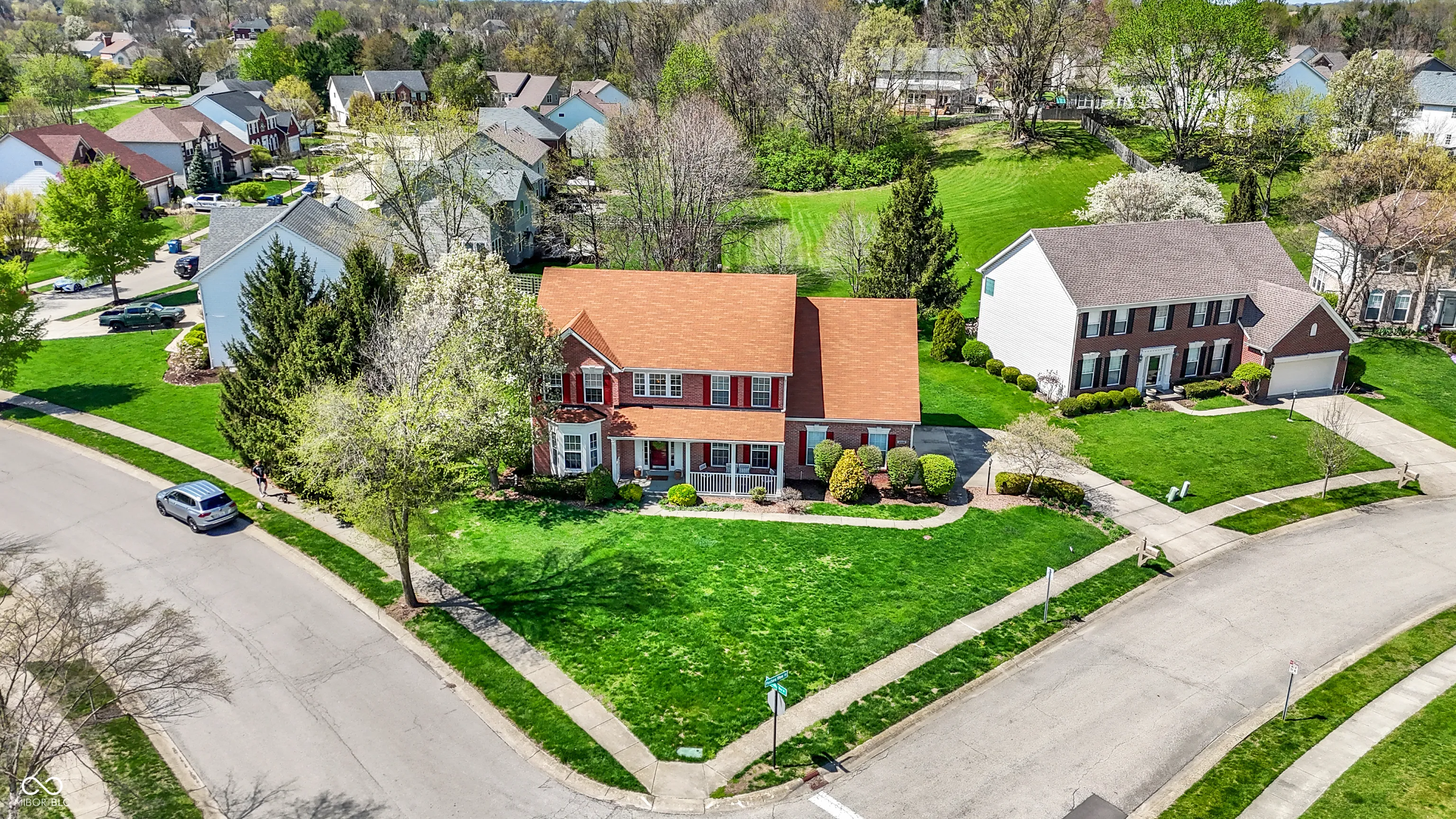 Immaculate two-story home by Drees in the sought-after Lakes at Hazel Dell neighborhood. This spacious home features four bedrooms upstairs plus a bonus room, offering flexible space for work, play, or relaxation. The gourmet kitchen showcases solid-surface countertops, and all appliances remain. The finished basement adds even more living space with a bar, separate bedroom, and full bath. Enjoy the seamless flow from the kitchen to the screened porch and deck, perfect for taking in the peaceful setting. Fresh exterior paint adds to the home’s curb appeal. Conveniently located just a short walk to the neighborhood pool and soccer field.