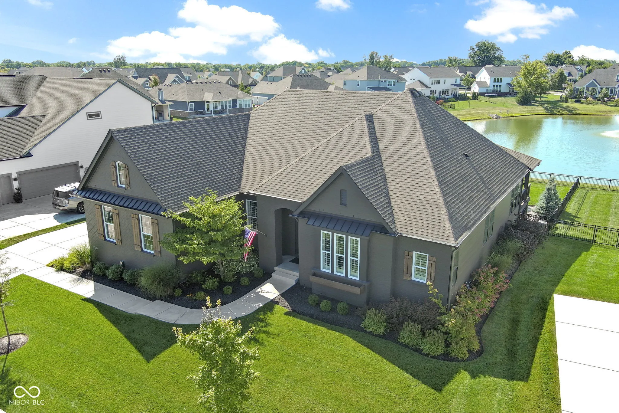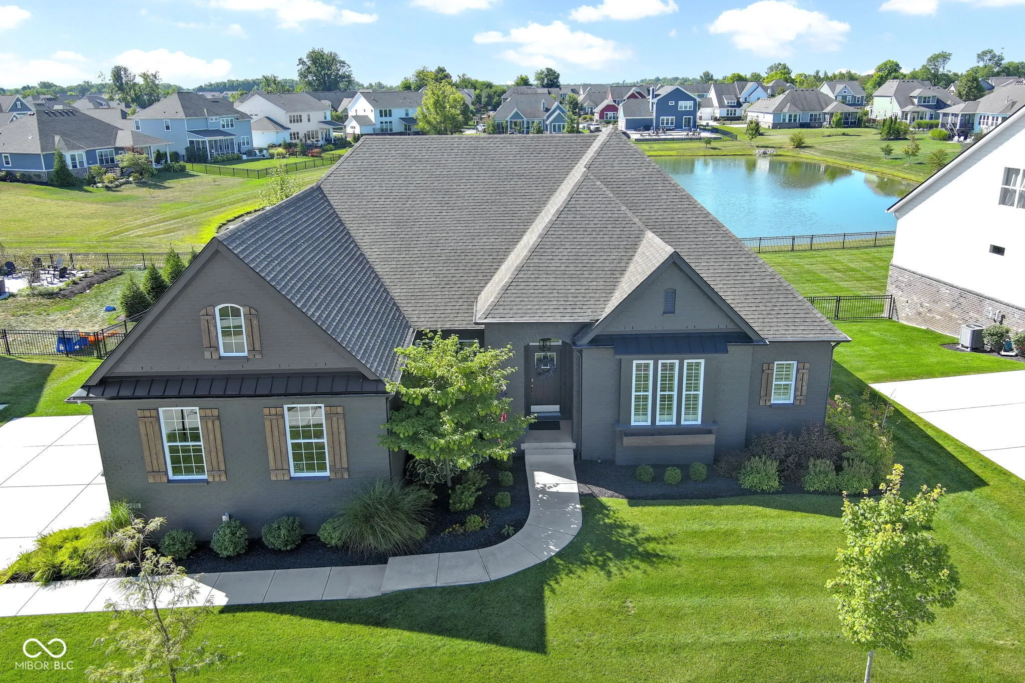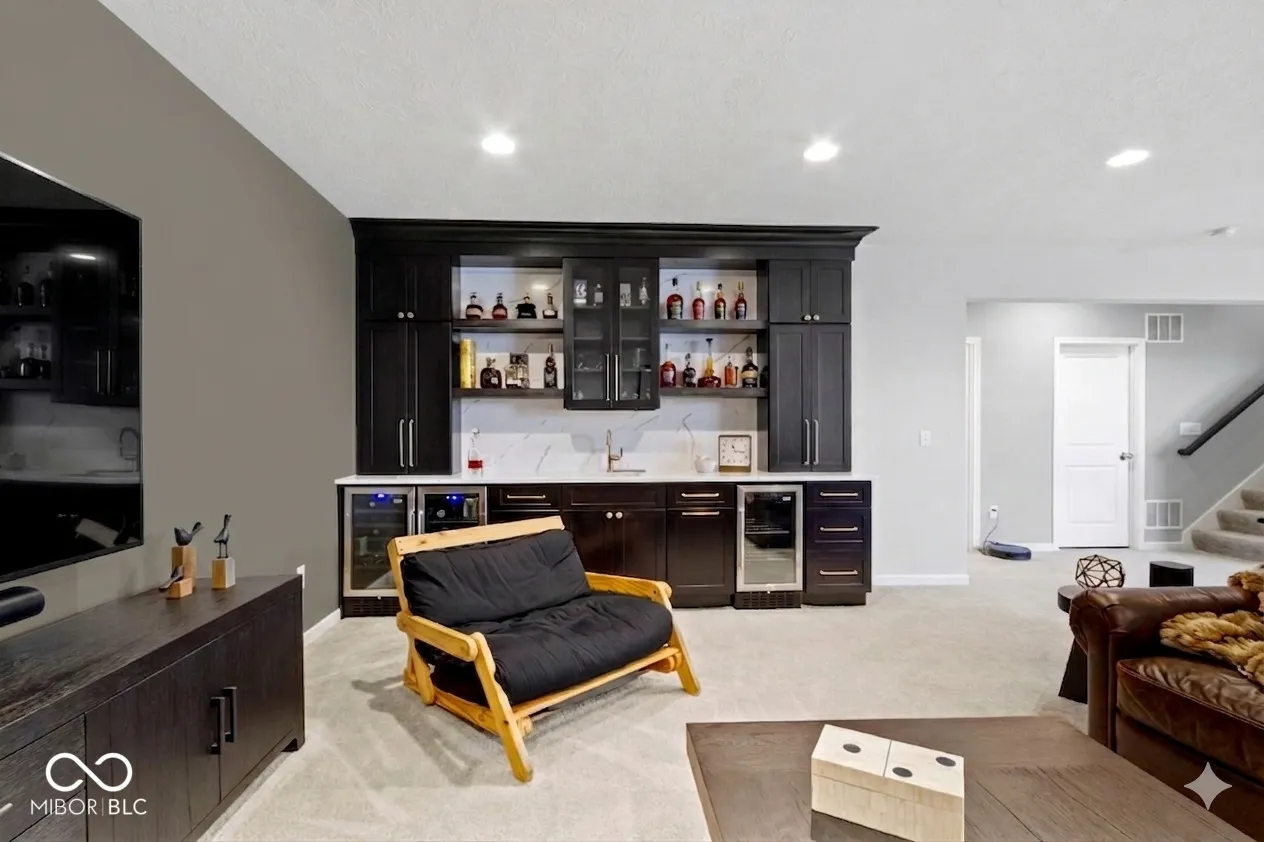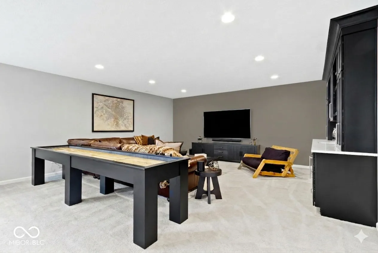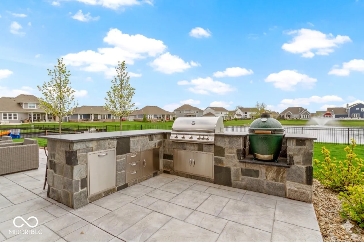 Experience luxury living in this beautifully maintained ranch home in Westfield, Indiana in the sought-after Lakes at Shady Nook community. Located in one of Hamilton County’s most desirable neighborhoods, this home blends upscale finishes with exceptional indoor and outdoor living spaces. Step inside to the stunning open-concept kitchen with granite countertops, a large eat-at island with bar seating, and sleek cabinetry, flowing seamlessly into the spacious Great Room. The Great Room impresses with a custom tiled gas fireplace, creating a warm and inviting space. The elegant main-level primary suite is a true showstopper with a tray ceiling, statement chandelier, and beautiful bay windows. The spa-like primary bath includes a fully tiled walk-in shower, dual sink vanity, and two large walk-in closets. A private home office with French doors and a den with tray ceiling provide flexible spaces for working from home, reading, or relaxing. The finished basement adds incredible flexibility, featuring a bedroom, full bathroom, wet bar, and ample storage. Step outside to enjoy one of the home’s most impressive features: a covered back deck overlooking a peaceful pond with fountain views. The outdoor kitchen, gas fire pit, and stamped concrete patio create the perfect setting for entertaining or enjoying quiet evenings. Additional highlights include a finished three-car garage with slat wall storage system, plantation shutters, custom interior paint, and designer lighting throughout. Residents of Lakes at Shady Nook enjoy coveted amenities including a community pool and playground, all just minutes from Grand Park Sports Campus, Grand Junction Plaza, the new Westfield Washington Public Library, and Westfield’s growing collection of restaurants, coffee shops, and local entertainment. If you’re looking for a luxury ranch home with finished basement, pond views, and outdoor living space in Westfield, this is may be the perfect option. Schedule your private showing today.