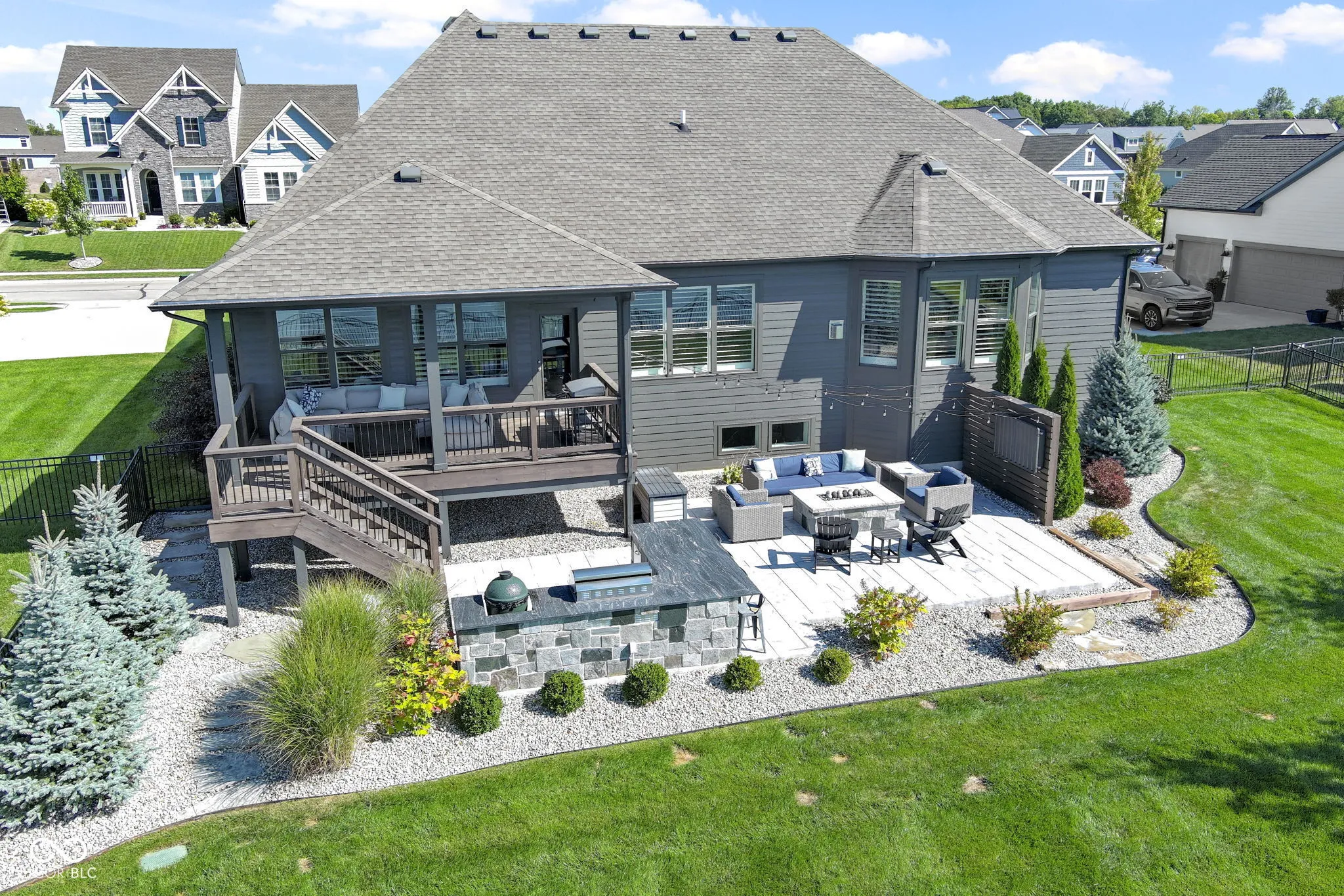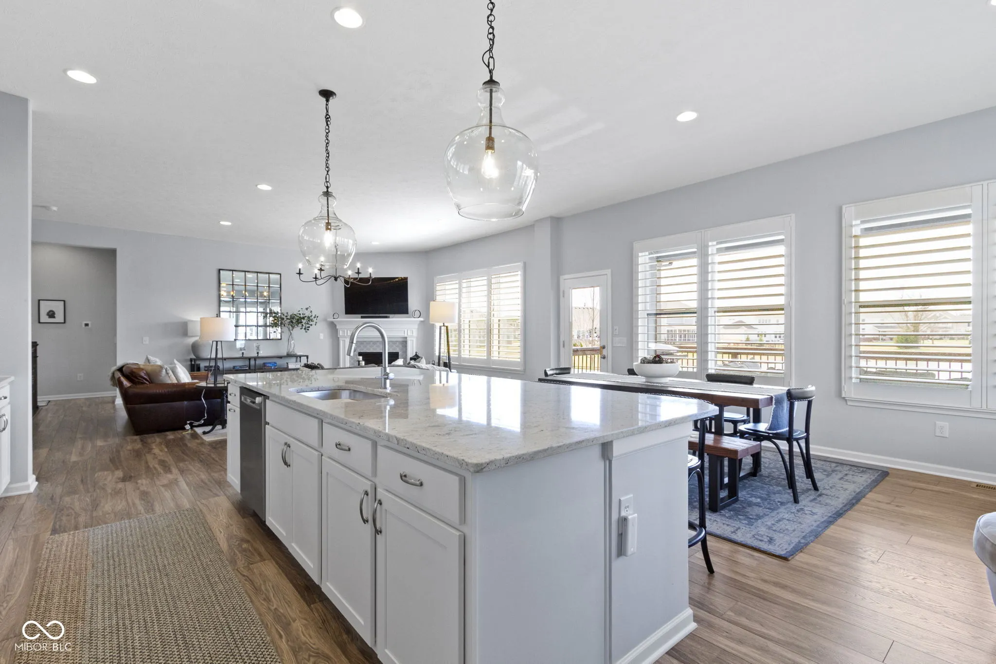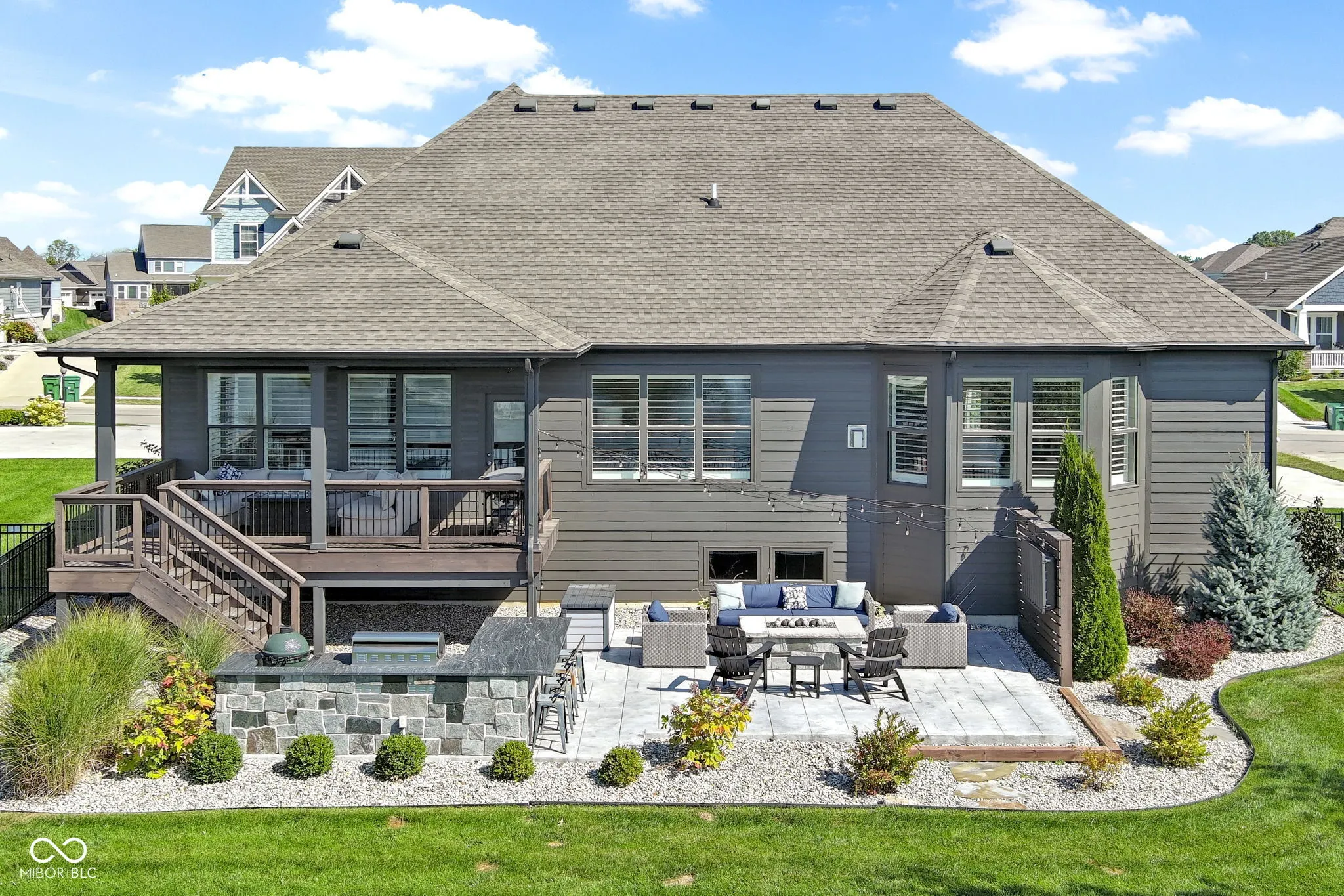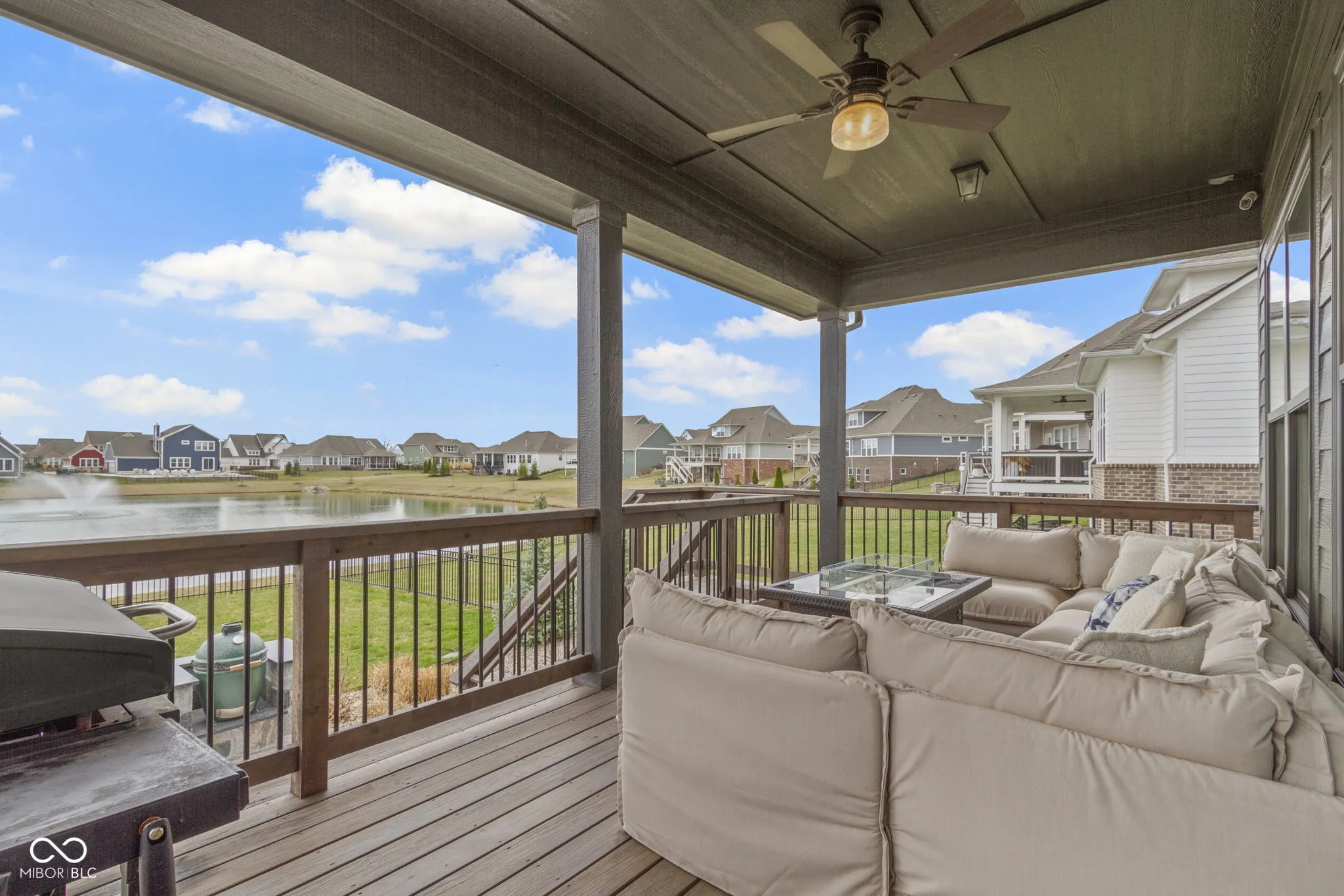 Experience luxury living in this beautifully maintained ranch home in Westfield, Indiana in the sought-after Lakes at Shady Nook community. Located in one of Hamilton County’s most desirable neighborhoods, this home blends upscale finishes with exceptional indoor and outdoor living spaces. Step inside to the stunning open-concept kitchen with granite countertops, a large eat-at island with bar seating, and sleek cabinetry, flowing seamlessly into the spacious Great Room. The Great Room impresses with a custom tiled gas fireplace, creating a warm and inviting space. The elegant main-level primary suite is a true showstopper with a tray ceiling, statement chandelier, and beautiful bay windows. The spa-like primary bath includes a fully tiled walk-in shower, dual sink vanity, and two large walk-in closets. A private home office with French doors and a den with tray ceiling provide flexible spaces for working from home, reading, or relaxing. The finished basement adds incredible flexibility, featuring a bedroom, full bathroom, wet bar, and ample storage. Step outside to enjoy one of the home’s most impressive features: a covered back deck overlooking a peaceful pond with fountain views. The outdoor kitchen, gas fire pit, and stamped concrete patio create the perfect setting for entertaining or enjoying quiet evenings. Additional highlights include a finished three-car garage with slat wall storage system, plantation shutters, custom interior paint, and designer lighting throughout. Residents of Lakes at Shady Nook enjoy coveted amenities including a community pool and playground, all just minutes from Grand Park Sports Campus, Grand Junction Plaza, the new Westfield Washington Public Library, and Westfield’s growing collection of restaurants, coffee shops, and local entertainment. If you’re looking for a luxury ranch home with finished basement, pond views, and outdoor living space in Westfield, this is may be the perfect option. Schedule your private showing today.