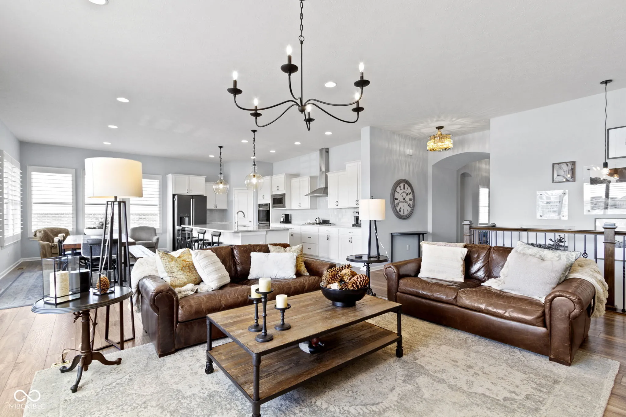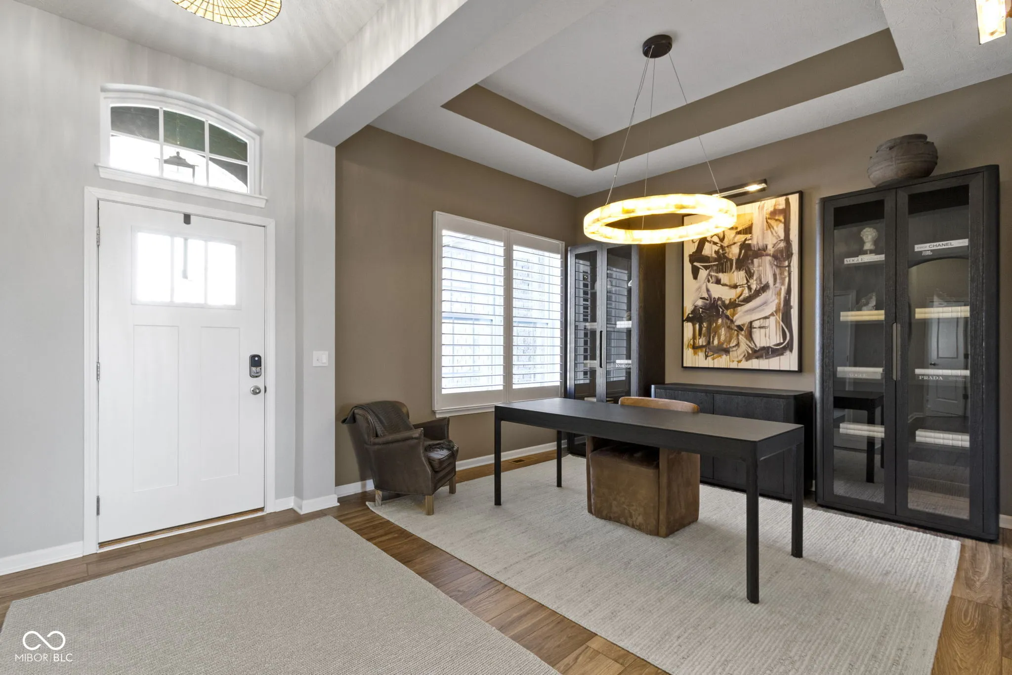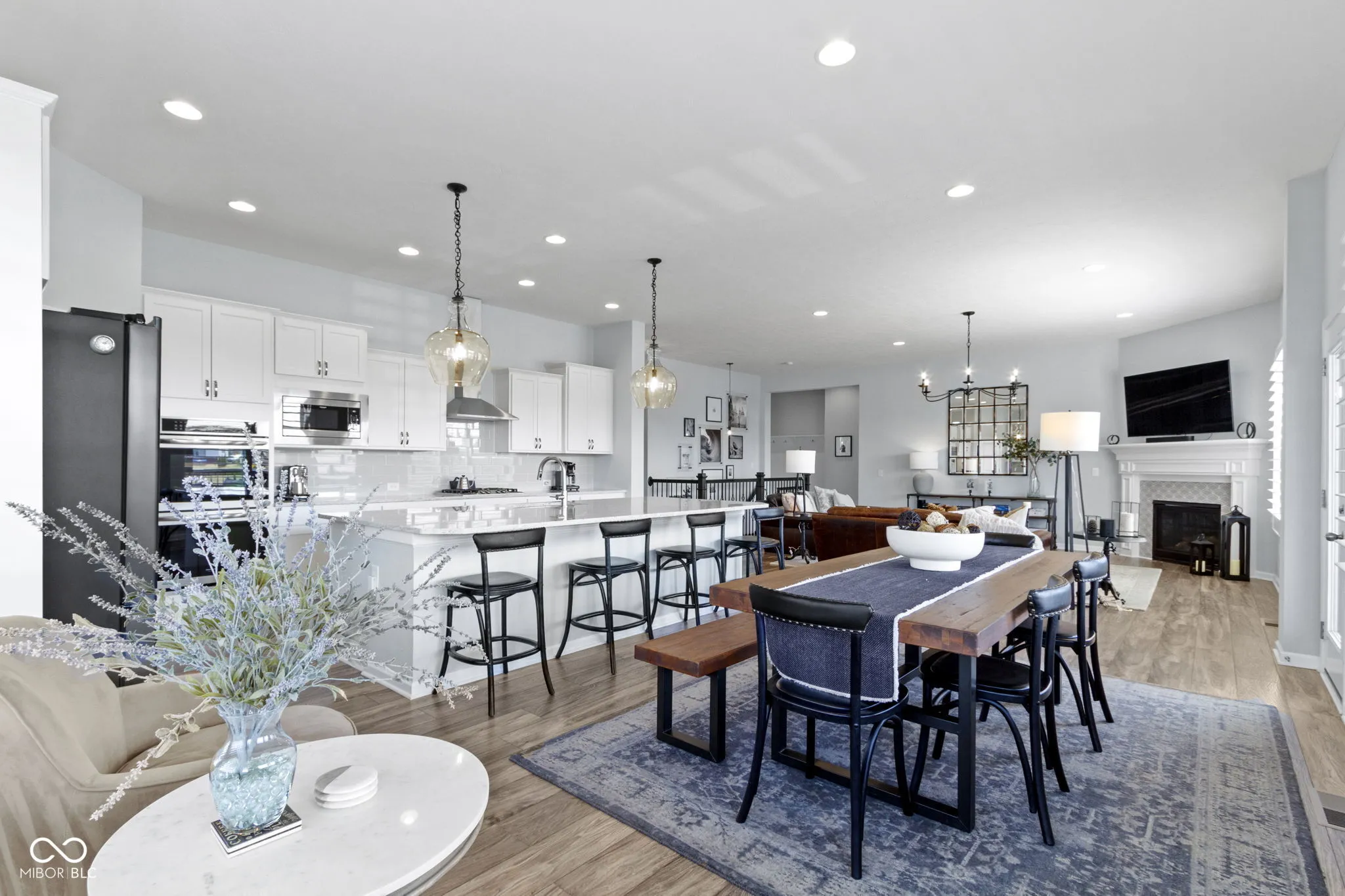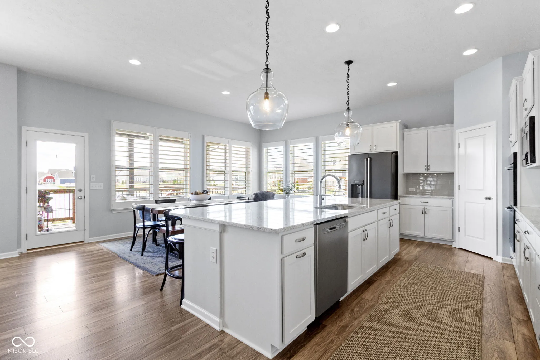 Experience luxury living in this beautifully maintained ranch home in Westfield, Indiana in the sought-after Lakes at Shady Nook community. Located in one of Hamilton County’s most desirable neighborhoods, this home blends upscale finishes with exceptional indoor and outdoor living spaces. Step inside to the stunning open-concept kitchen with granite countertops, a large eat-at island with bar seating, and sleek cabinetry, flowing seamlessly into the spacious Great Room. The Great Room impresses with a custom tiled gas fireplace, creating a warm and inviting space. The elegant main-level primary suite is a true showstopper with a tray ceiling, statement chandelier, and beautiful bay windows. The spa-like primary bath includes a fully tiled walk-in shower, dual sink vanity, and two large walk-in closets. A private home office with French doors and a den with tray ceiling provide flexible spaces for working from home, reading, or relaxing. The finished basement adds incredible flexibility, featuring a bedroom, full bathroom, wet bar, and ample storage. Step outside to enjoy one of the home’s most impressive features: a covered back deck overlooking a peaceful pond with fountain views. The outdoor kitchen, gas fire pit, and stamped concrete patio create the perfect setting for entertaining or enjoying quiet evenings. Additional highlights include a finished three-car garage with slat wall storage system, plantation shutters, custom interior paint, and designer lighting throughout. Residents of Lakes at Shady Nook enjoy coveted amenities including a community pool and playground, all just minutes from Grand Park Sports Campus, Grand Junction Plaza, the new Westfield Washington Public Library, and Westfield’s growing collection of restaurants, coffee shops, and local entertainment. If you’re looking for a luxury ranch home with finished basement, pond views, and outdoor living space in Westfield, this is may be the perfect option. Schedule your private showing today.