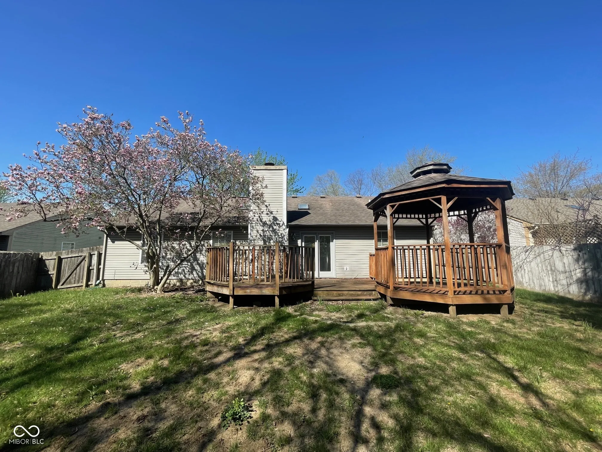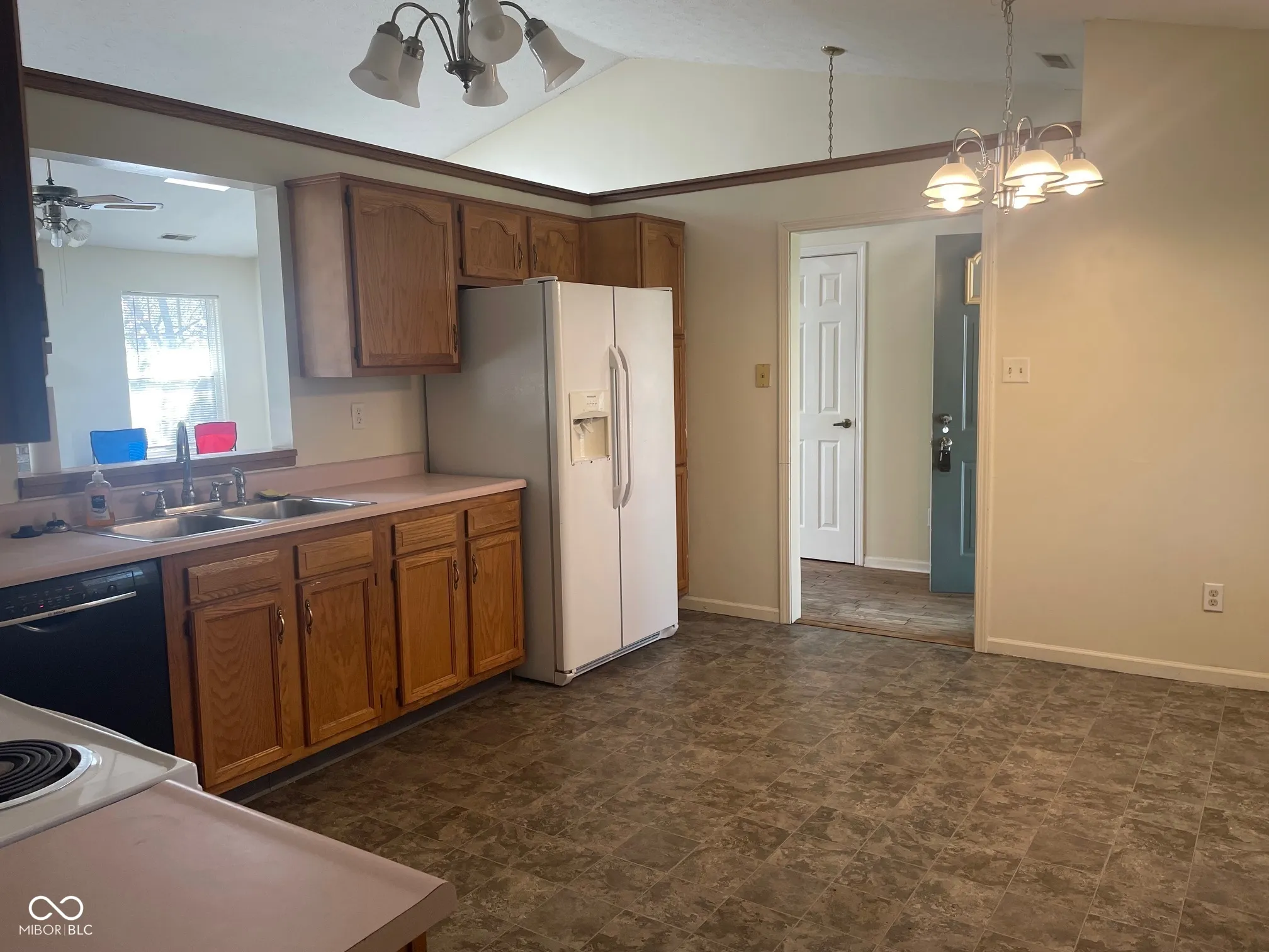 Almost 1500 Sqft 3 bedroom, 2 full bath ranch in Southern Lakes Estates on beautiful tree lined .23 acre lot, rear privacy fenced yard w/wood deck & gazebo. Great room w/soaring cathedral ceilings, 2 sky lights & wood burning masonry fireplace w/mantel. Pass thru window to large eat in kitchen! Refrigerator, stove & dishwasher included. Split entry/bedroom floor plan for privacy, Primary suit on one side & other 2 BRs & bath on other. Newer water heater. Finished gar w/storage, key less entry & opener. Home needs some TLC but will make a great home in a great location. Being sold As-Is. All Electric, No HOA, No FHA or VA offers.