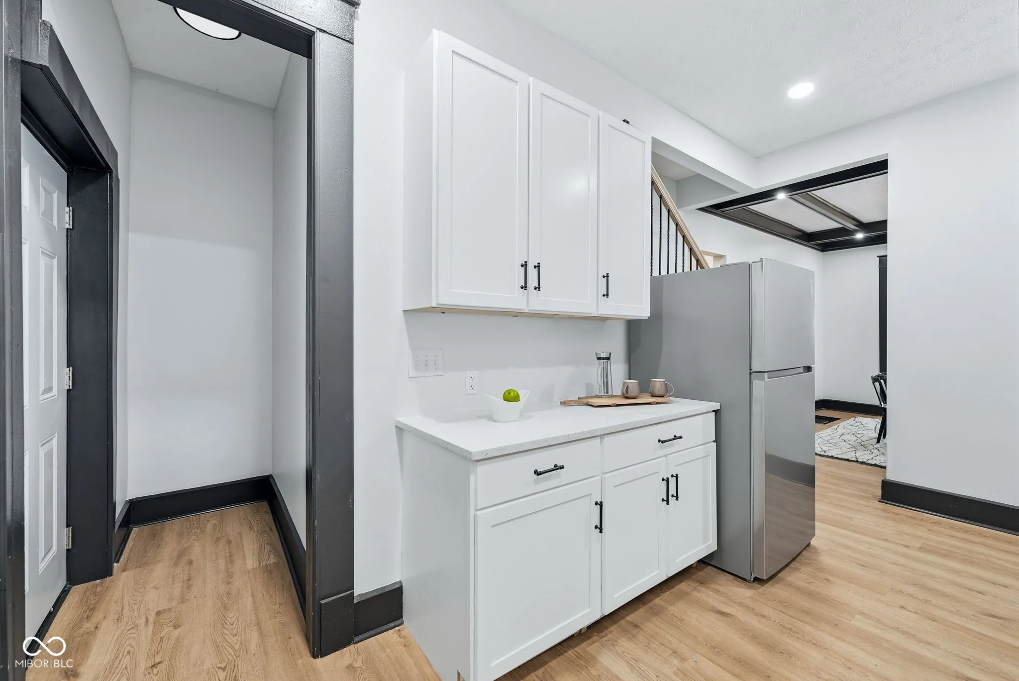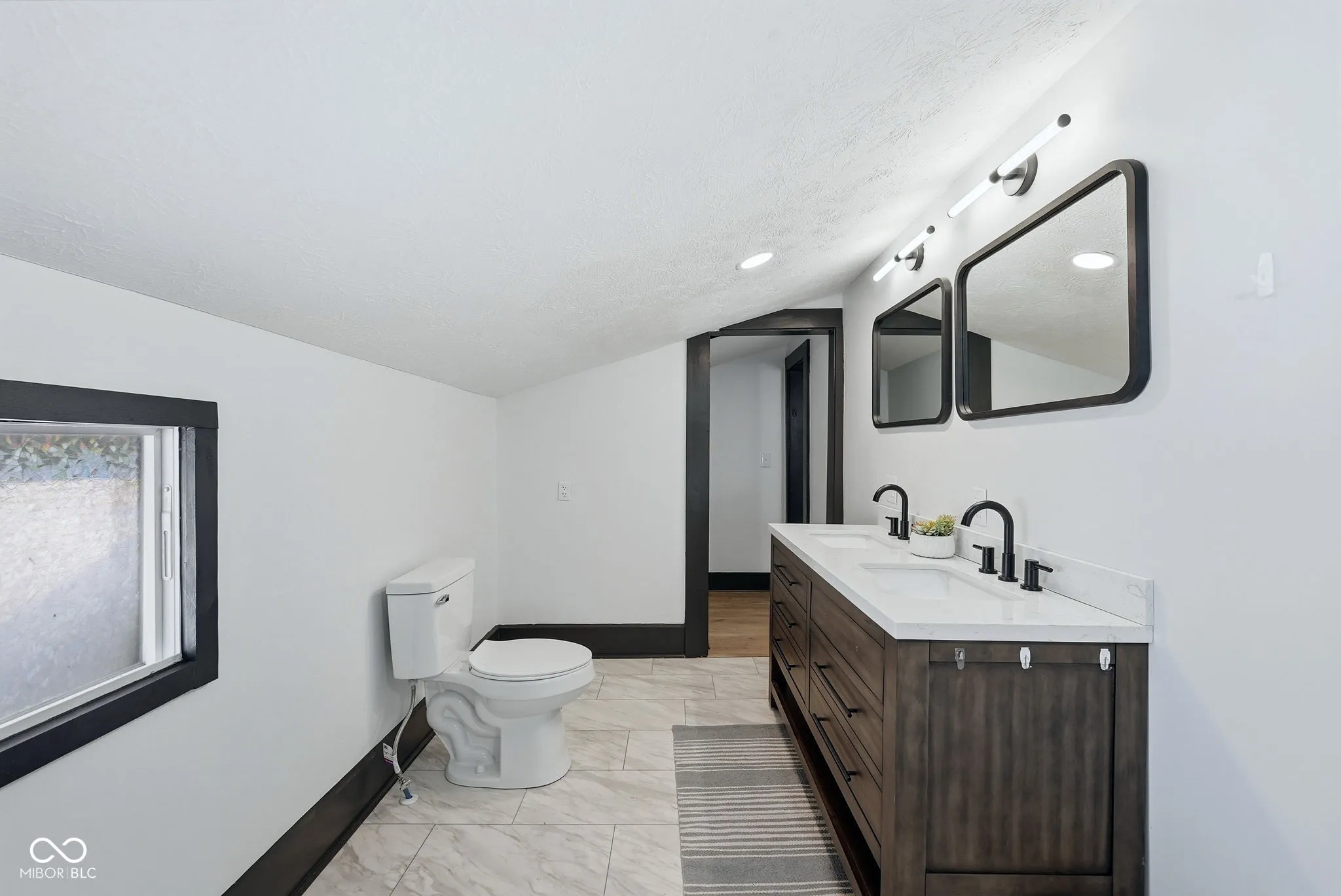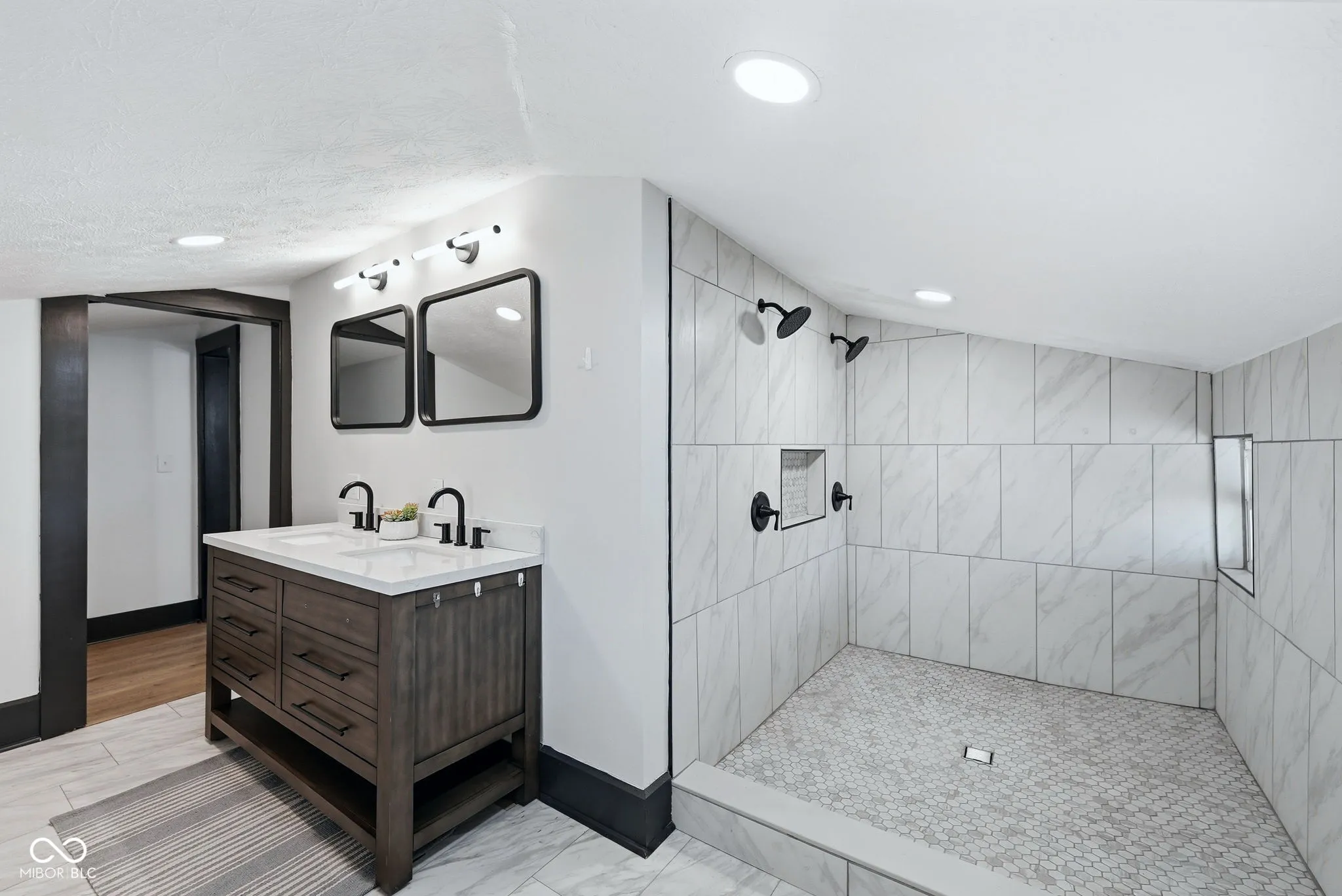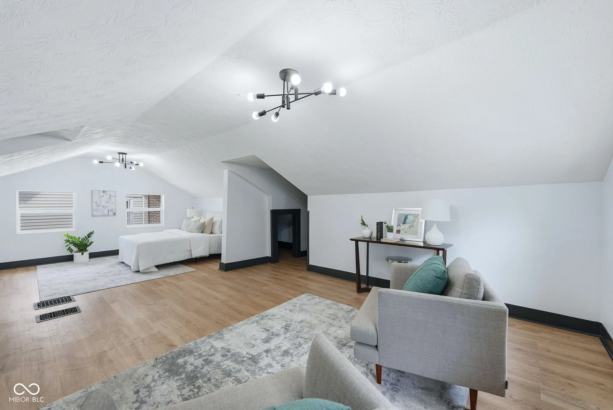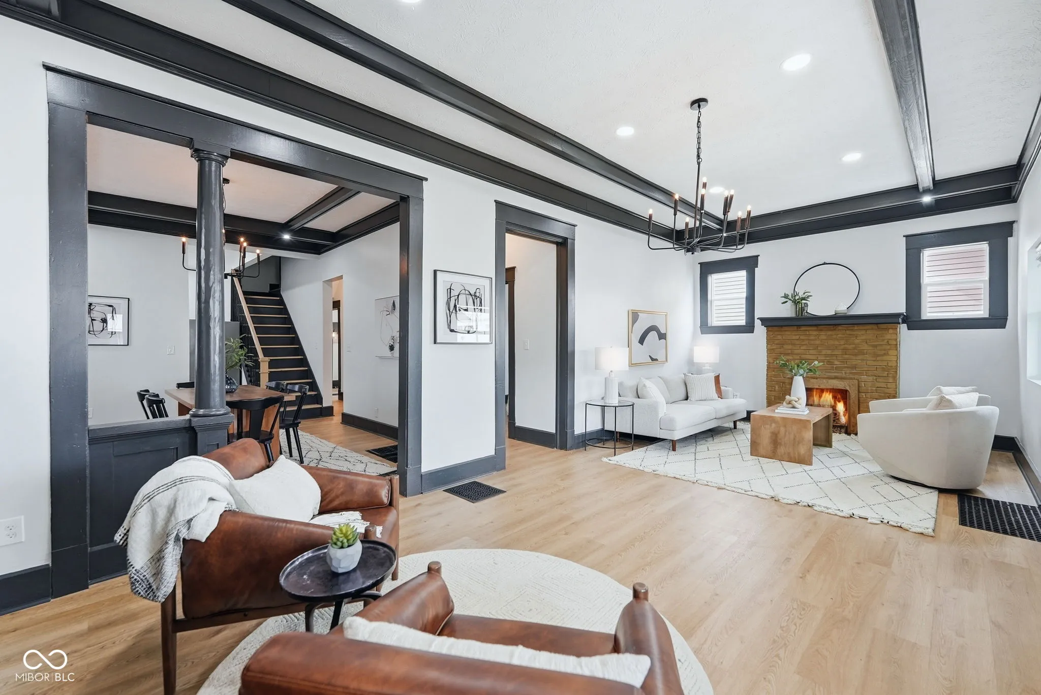 3752 Ruckle Street is the kind of home that stops you mid-scroll and makes you look twice. A fully renovated three-bedroom, two-bath property in the heart of one of Indianapolis’s most exciting urban neighborhoods – with nearly 2,500 finished square feet and a top-floor primary suite that has to be seen to be understood. The main level sets the tone immediately. Original hardwood floors, a gas fireplace with a clean updated surround, and an open living and dining layout that feels both historic and genuinely current. The kitchen has been completely reimagined with navy lower cabinetry, white uppers, quartz countertops, a farmhouse sink, subway tile backsplash, open shelving, and stainless appliances – a design that is confident without being trendy. Both bathrooms have been fully renovated. The main bath in particular is a standout – floor-to-ceiling tile, a soaking tub, and a separate walk-in shower that feels far more elevated than the price would suggest. Then there’s the top floor. The primary suite has been completely reimagined as something rare – vaulted ceilings, exposed wood beams, warm modern finishes, and sliding doors that open directly onto a private rooftop deck overlooking the backyard. It is the kind of space that feels like a retreat within your own home, and there is simply nothing else like it at this price point in this market. Located just steps from the Monon Trail and in close proximity to Fall Creek Trail, Monon 30, and Sobro. Walking, biking and great dining options await the minute you step out the front door. 3752 Ruckle sits in the heart of Indianapolis’s continued growth and development, blending quintessential city living with a space that truly feels like your own home.