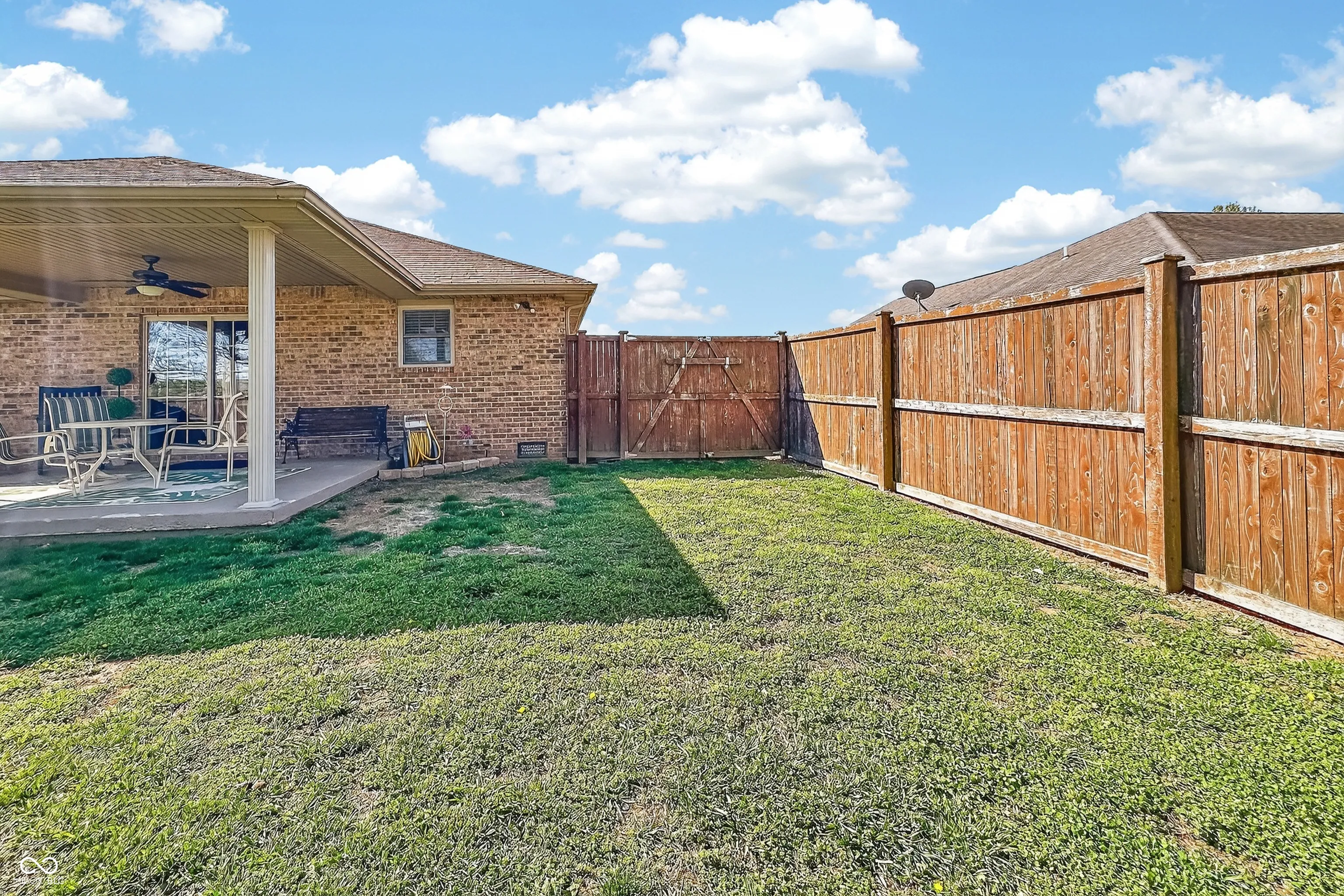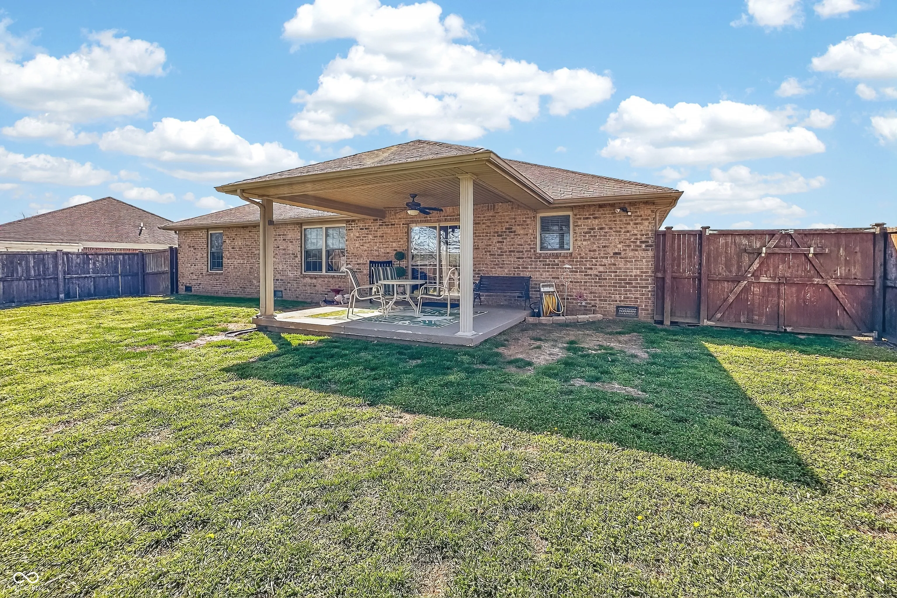 Welcome home to this charming all-brick ranch offering 3 bedrooms and 2 full baths in a desirable location! Step inside and be greeted by a spacious living room featuring a vaulted ceiling that creates an open, airy feel perfect for relaxing or entertaining. The kitchen provides ample cabinet and countertop space, and all kitchen appliances remain, making it move-in ready from day one. The primary suite offers comfort and convenience with a walk-in shower and double closets for plenty of storage. Enjoy outdoor living in the privacy-fenced backyard, complete with a generously sized 12×16 covered back porch, ideal for gatherings, grilling, or simply unwinding. A storage shed is also included for your tools and extras. In the front, a covered porch provides the perfect spot to enjoy your morning coffee. This home is connected to city water, with an existing well still on the property (not currently in use). New HVAC in 2023! Conveniently located near shopping, dining, and quick access to I-65, this home combines comfort, functionality, and location. Don’t miss your chance to make this one yours!