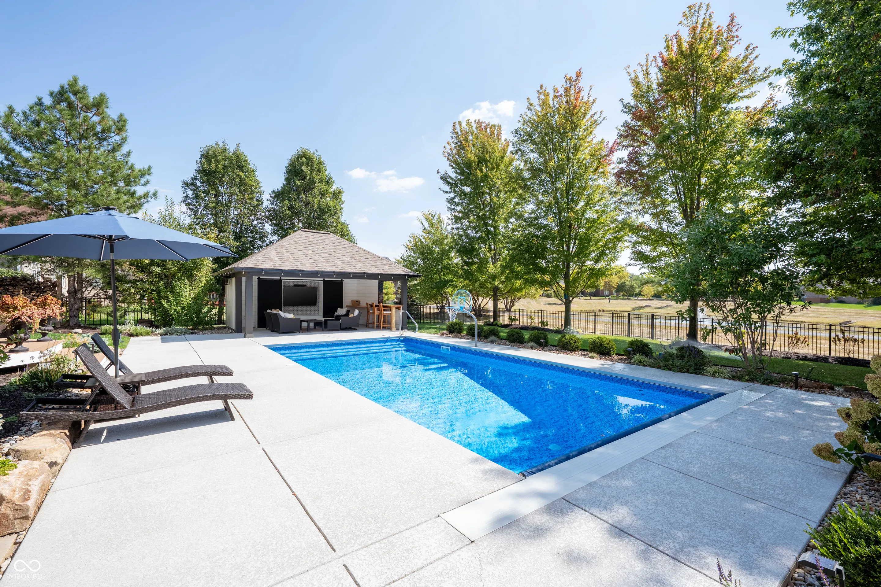 Luxury at its finest, this stunning 6-bedroom home in Carmel offers the perfect blend of elegance, comfort, and resort-style living. Step into a breathtaking great room where soaring ceilings and expansive windows create a bright, inviting atmosphere that immediately feels like home. The gourmet kitchen is designed to impress with stainless steel appliances, a spacious island, and seamless access to the backyard through sliding glass doors-perfect for indoor-outdoor entertaining. The main level is thoughtfully designed with a formal dining room, a private office with French doors, and a guest bedroom for added convenience. Upstairs, the well-appointed laundry room features cabinetry, a sink, and ample counter space, alongside four spacious bedrooms including the luxurious owner’s suite. Retreat to the owner’s suite featuring tray ceiling detail, a spa-like bath with double vanity, tile shower, soaking tub, and an expansive walk-in closet. The finished lower level elevates the home even further with a sixth bedroom, wet bar, and a large open entertainment space ideal for hosting or relaxing. Outside, your private backyard oasis awaits-complete with a saltwater pool, hot tub, Trex deck, pool house, and fenced yard, creating the ultimate retreat. A 3-car side-load garage completes this exceptional property.
