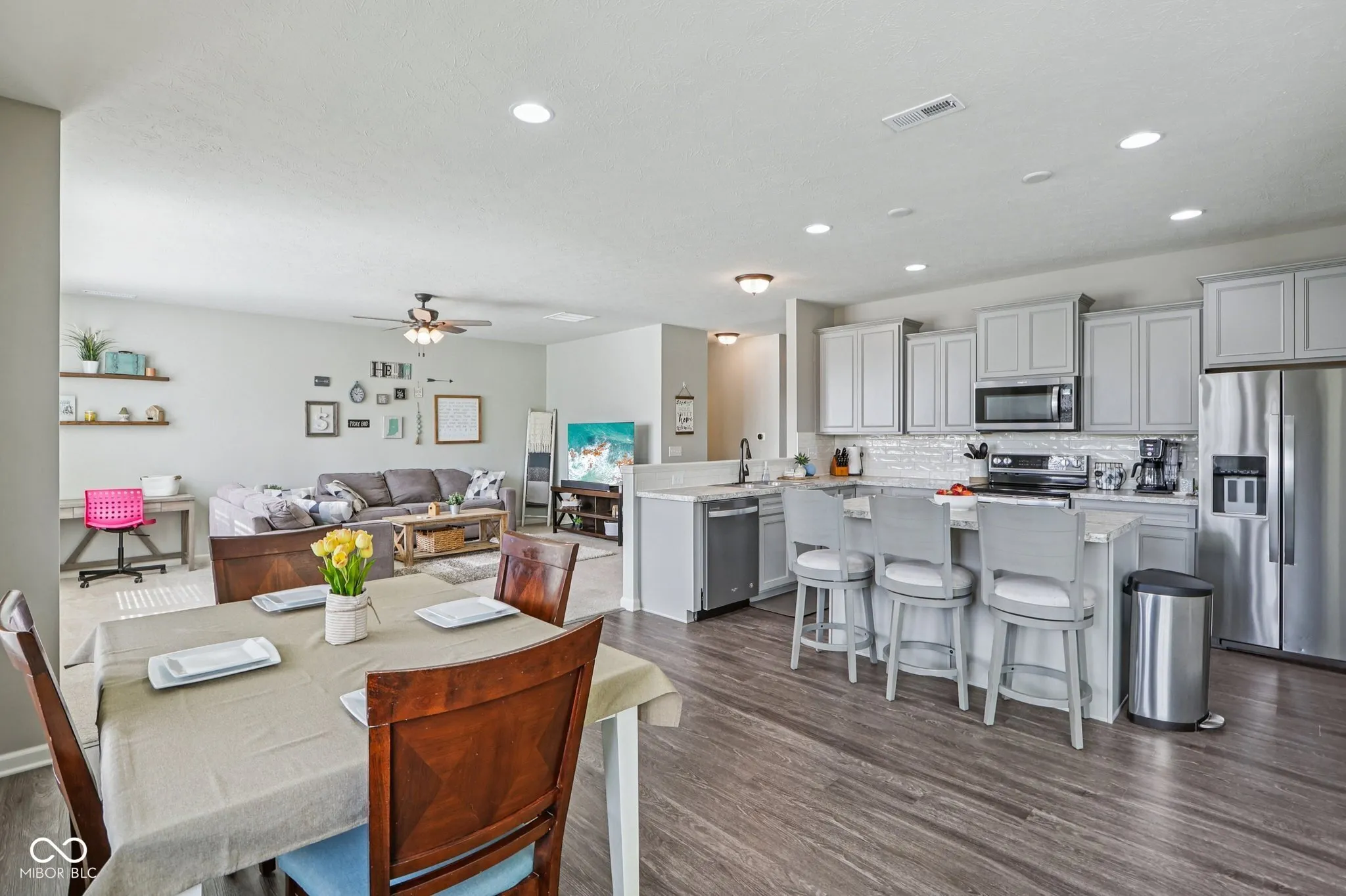 Most homes in this neighborhood back up to other homes-but this one is different. Instead, you’ll enjoy a tree-lined backyard that adds a sense of privacy and a peaceful, natural backdrop. The fully fenced back yard offers both comfort and convenience, giving you a perfect space to relax, entertain, or play while still taking in the wooded setting. Inside, the open floorplan creates a seamless flow between the main living spaces, making everyday living and hosting feel effortless. Natural light fills the home, with plentiful windows that highlight the scenery beyond. Downstairs, you’ll find an office and versatile bonus room, ideal for a playroom or gym, along with an abundance of storage to keep everything organized and out of sight. Upstairs loft provides secondary living area and even more flexibility. From functional living spaces to the rare privacy of a tree-lined lot, this home offers the best of both comfort and setting. Opportunities like this don’t come around often in this neighborhood! Don’t miss your chance to own one of the few homes with this kind of private, picturesque view. 3D virtual walkthrough link below.