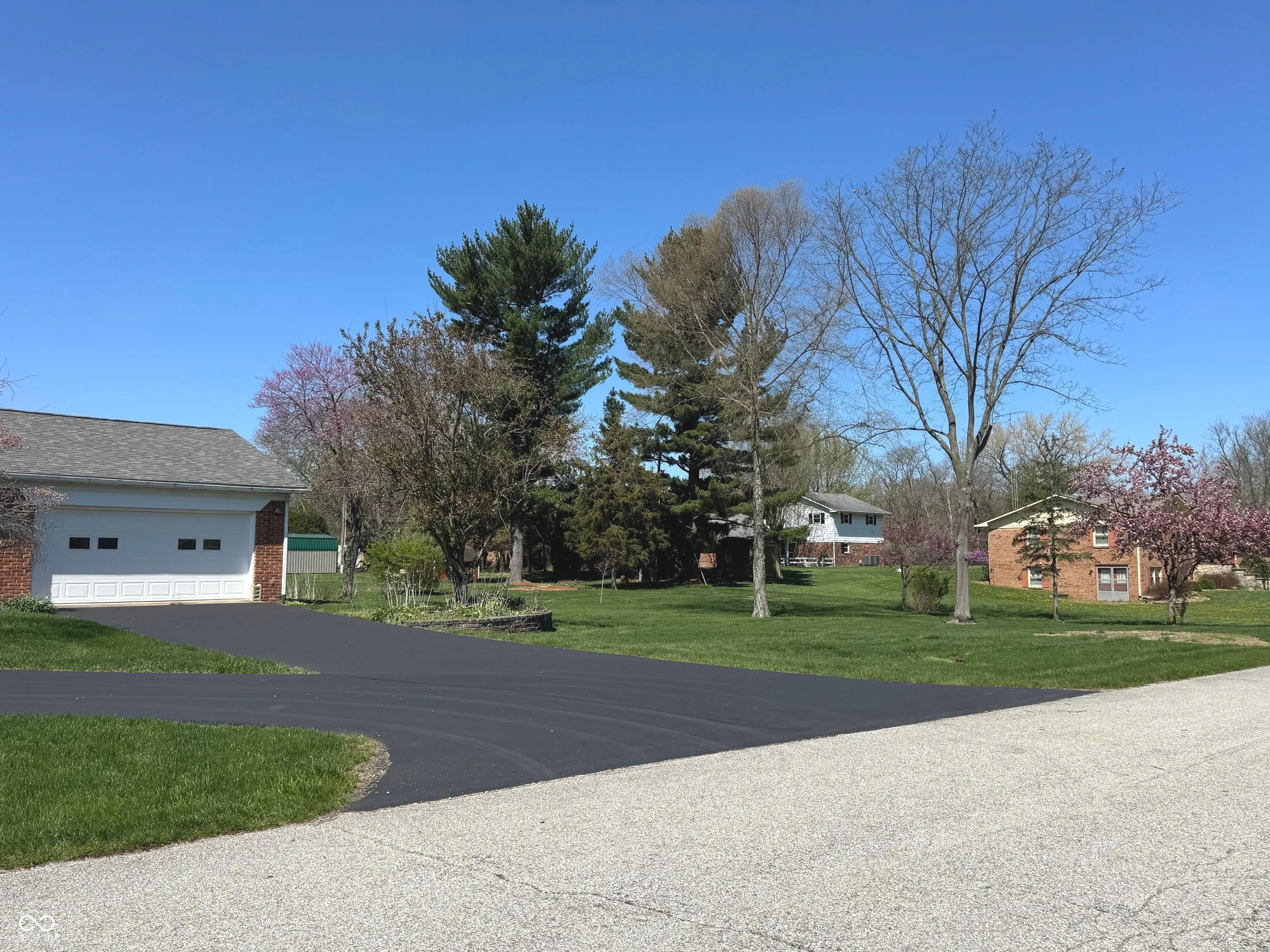 At 353 E Rivercrest DR, RUSHVILLE, IN, USA, resides an inviting single-family residence, meticulously prepared and ready to welcome its new occupants. This distinguished property, built in 1969, spans 2689 square feet of living space across two stories and sets upon an expansive 3/4-acre lot with 2 separate 2 car garages. The inviting entry way sets the tone for this property and its well cared for feel. The large step-down living room and formal dining room offer the ultimate spots for entertaining. The culinary space presents a generous size area with a kitchen island that invites gathering & preparation, complemented by practical stone countertops and a stylish backsplash. A skylight bathes the area in natural light, with the kitchen sink overlooking the back yard. Cabinets provide a large amount of storage with thoughtful pull-out drawer design. Within the family room, a beamed ceiling adds character and architectural interest, creating an inviting atmosphere around the substantial gas log fireplace. The wet bar area with built-in storage ties the family room and kitchen together. Completing the first floor is an office with closet and built-ins, a half bath and separate laundry room. The primary bedroom extends the length of the second story at the front of the house and offers a walk-in closet. A thoughtfully designed private bathroom suite boasts a spacious walk-in shower and vanity. The adorable built in make-up desk has a secret door which serves as the laundry shoot! The other 2 guest bedrooms are spacious & offer excellent storage and closet space. The exterior grounds are designed for relaxation and recreation as seen with fenced in private stamped concrete patio, in ground saltwater pool and pool house which has a FULL bathroom inside! This property presents a remarkable opportunity to blend charm with contemporary amenities across its generous indoor and outdoor spaces.