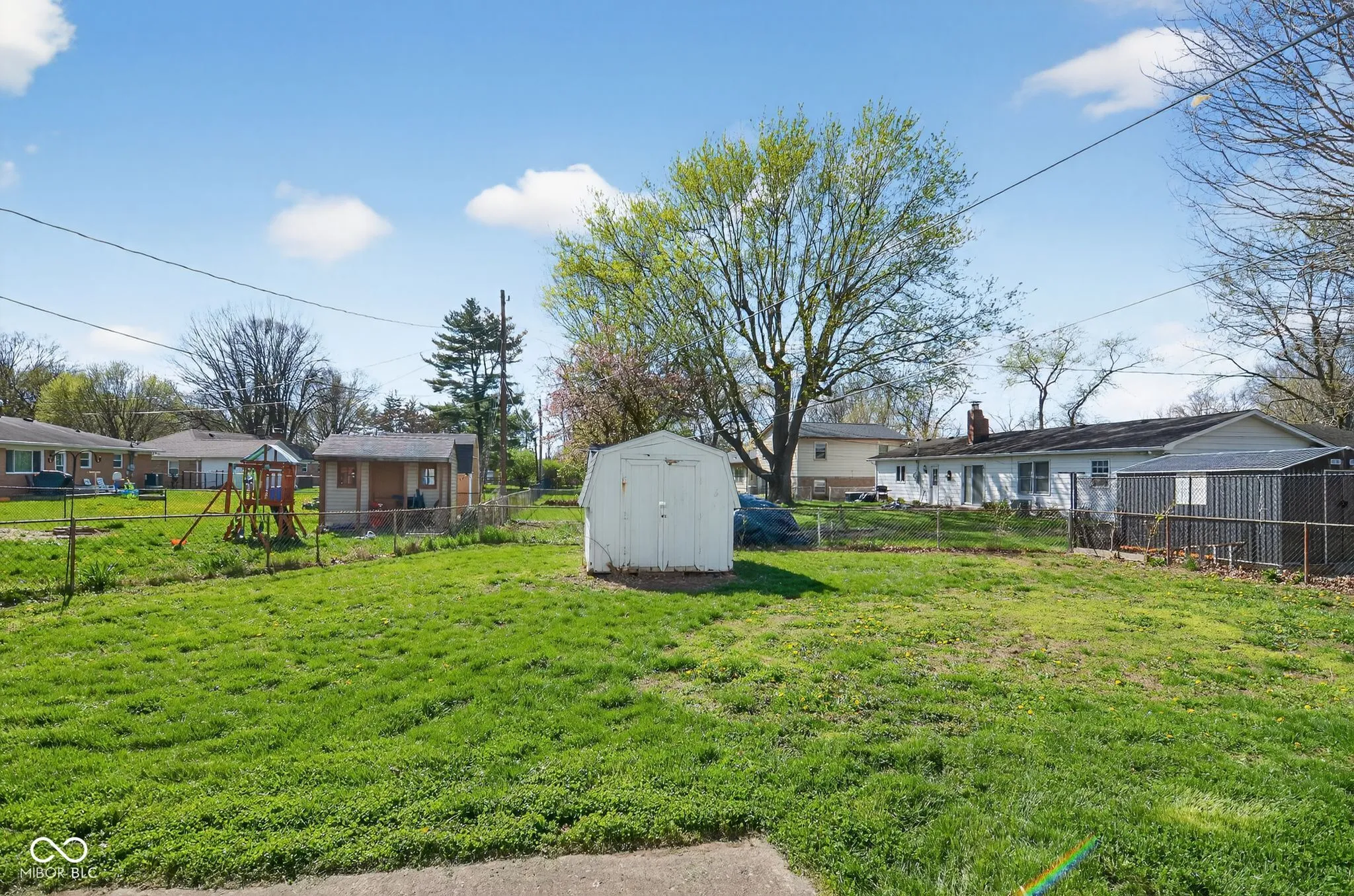 Welcome home to this sprawling all-brick ranch in the highly sought-after Chapel Hill community! Boasting 1,740 sq. ft. of main-level living space, this well-maintained 3-bedroom, 2-bathroom residence offers a perfect blend of classic charm and modern potential. The inviting floor plan features original hardwood floors through the formal living room and bedrooms, complemented by a massive 24×12 family room with a cozy masonry wood-burning fireplace. The kitchen includes a breakfast nook and formal dining area, providing ample space for gatherings. Outside, enjoy a large 0.31-acre lot with a fully fenced backyard, mature trees, and a mini-barn for extra storage. Recent updates like a newer roof and vinyl windows add peace of mind, while the 2-car attached finished garage provides a heated workspace for hobbies. Located just minutes from Ben Davis High School and easy I-465 access, this move-in-ready classic is a must-see!