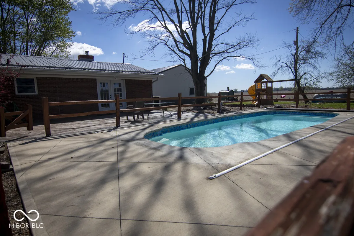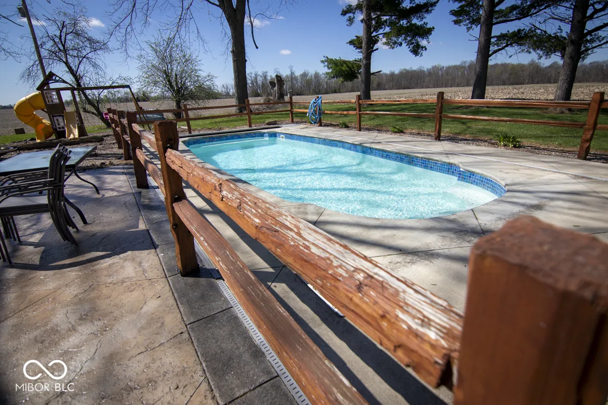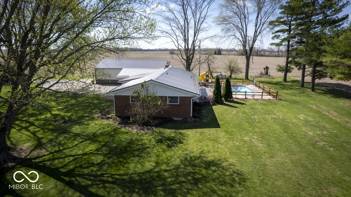 Welcome to your own private country retreat situated on 1.6 acres, offering the perfect blend of comfort, functionality, and outdoor living. This all brick home features a durable metal roof and is surrounded by mature trees, creating a peaceful setting with plenty of space to enjoy. Inside, you’ll find a spacious layout with quality finishes throughout. The dining area showcases beautiful hardwood floors and flows nicely into the kitchen, complete with luxury vinyl tile flooring, custom Amish built cabinetry, and cherry hardwood accents. The home offers three well sized bedrooms, along with a living room featuring a cozy wood burning fireplace that is perfect for relaxing evenings. Step outside to enjoy the in ground swimming pool with a heater, surrounded by a stamped concrete patio ideal for entertaining or unwinding during the summer months. The pole barn is a standout feature with concrete floors, electric, and a finished area that includes a kitchen and full bath, making it perfect for guests, hobbies, or a workshop setup. The property also includes a wood boiler system that heats both the home and pole barn, along with a propane furnace for added efficiency. Additional highlights include four kitchen appliances + washer and dryer included, and even the ultimate chicken house stays with the property! This property truly offers the best of country living with modern conveniences.