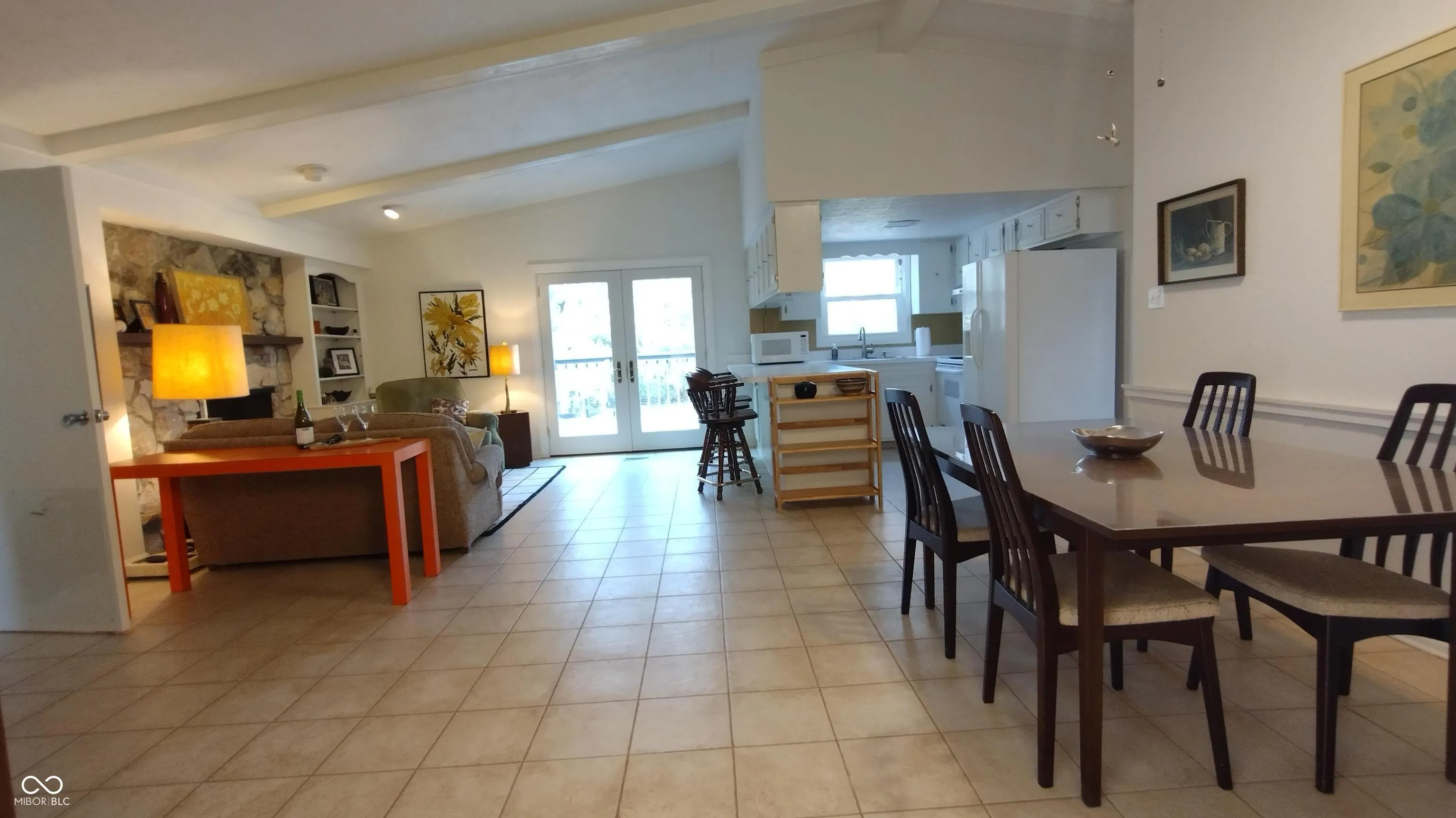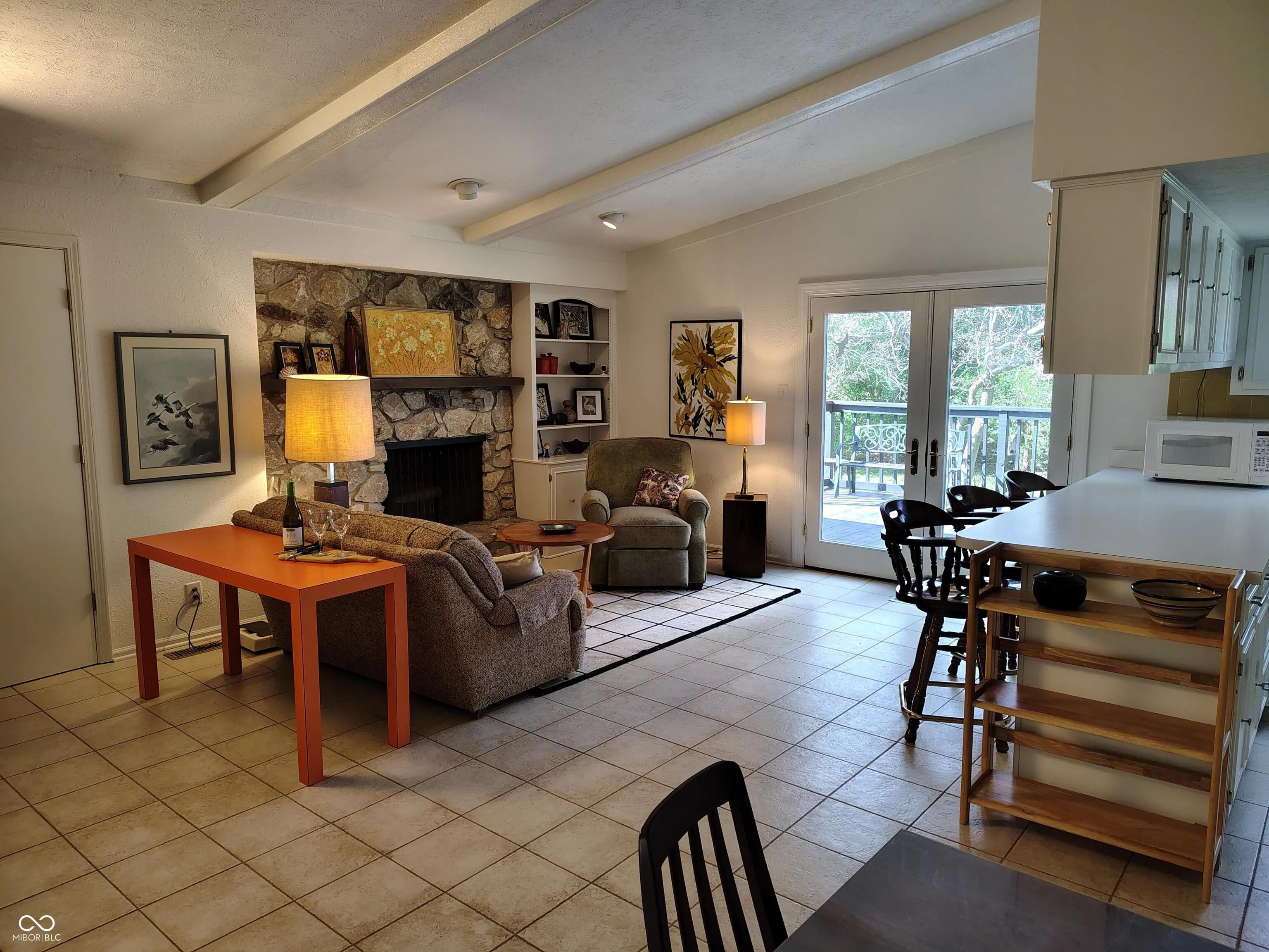 Move-in ready ranch in desirable College Park Estates! This beautifully maintained single-level 3-bedroom, 2-bath home is 1,760 sq. ft. on a quiet cul-de-sac with mature trees. An open-concept layout features vaulted ceilings, a tiled great room, peninsula kitchen, stone fireplace, and French doors to a 13′ x 20′ deck. A carpeted 300 sq. ft. adjoining space could be office, dining, or entertaining room. Updates include new carpet, fresh paint, window treatments, closet organizers, attic insulation, sump pump, and more. All-electric with included appliances, two-car garage, and immediate occupancy.