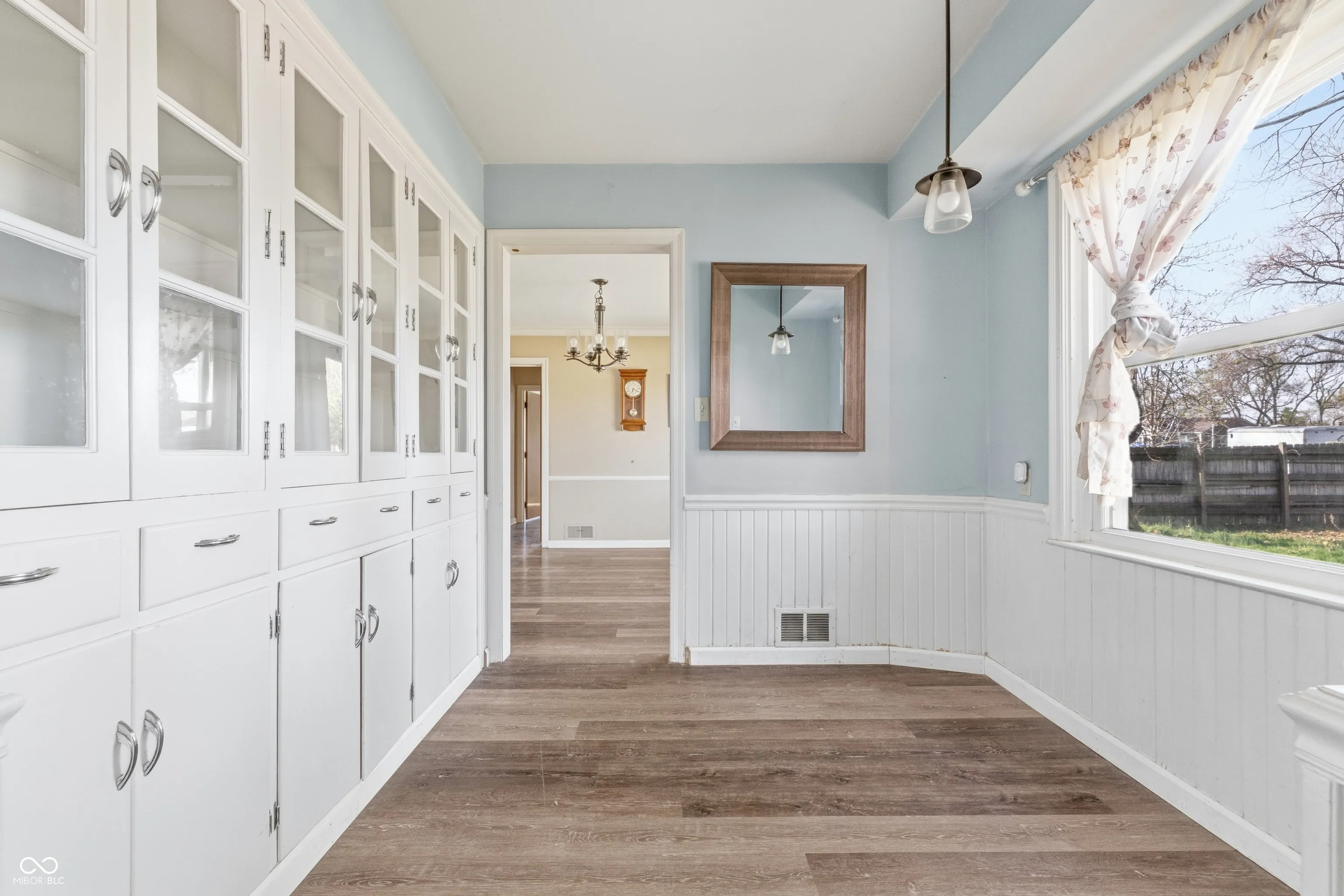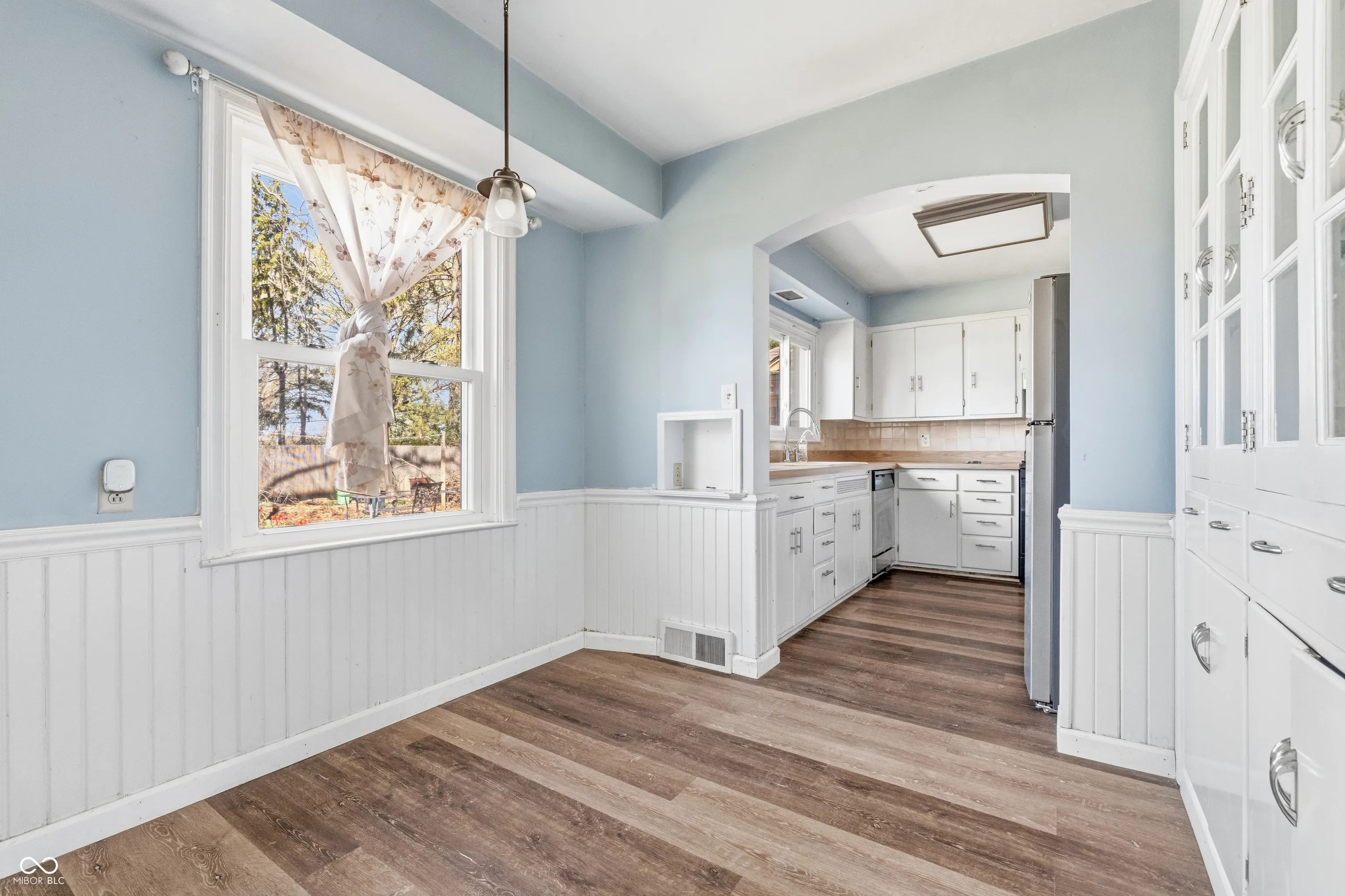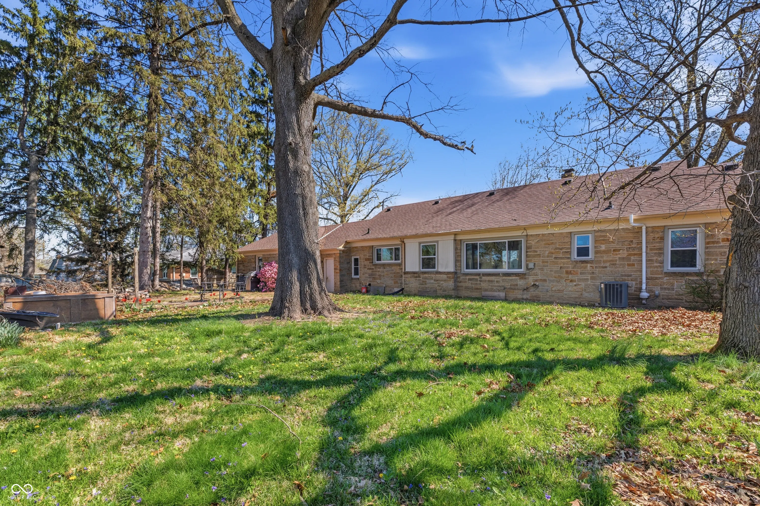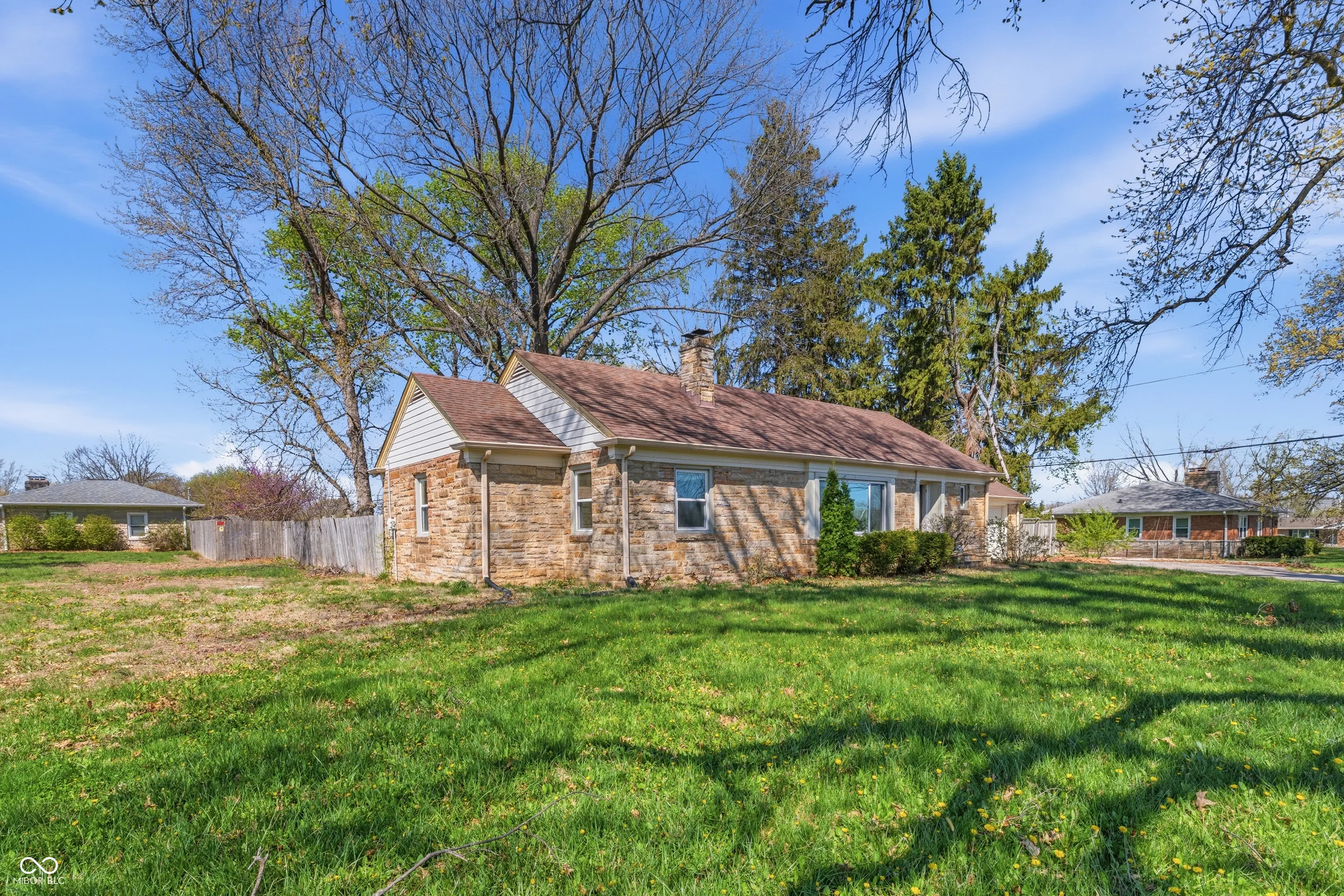 Perry Township Stone ranch on a 1.149 Ac corner lot offers a 3 Bedrooms, 1.5 baths, extra large 2 cars attached garage with a wood-working area or storage area, and a full basement, as well as a spacious long private driveway with a turn- around for easy parking and driving. Many updates have been made recently. Updates include Flooring (2021), sump pump (2024), private well pump (2023), and all plumping supply line was replaced in (2023). This 1947 built home has timeless charm and character throughout. There’s a beautiful arched entry way to the sundrenched living room and dining room. LR is very spacious and cozy with a fireplace, built in bookcases and crown moldings. Adjacent to LVR is a Dining Room with large windows which also brings in natural light throughout the day. A cute breakfast nook by the kitchen comes with large window and great built-in shelving or cabinet for your favorite items to display. Another room is just a cozy corner kitchen with all the kitchen appliances, and it offers a great view of the spacious backyard as well. Home also offers a large basement which is just a blank canvas for anything owners want it to be, and it already has both washer and dryer. A spacious backyard with privacy fence, a large brick patio and a firepit is ready for any occasions for gathering. This charming Stone ranch is close to Indy Downtown, Greenwood and has easy access to Interstates and major highways. Close to shopping centers, yet home is in an established neighborhood with mature trees and NO HOA.