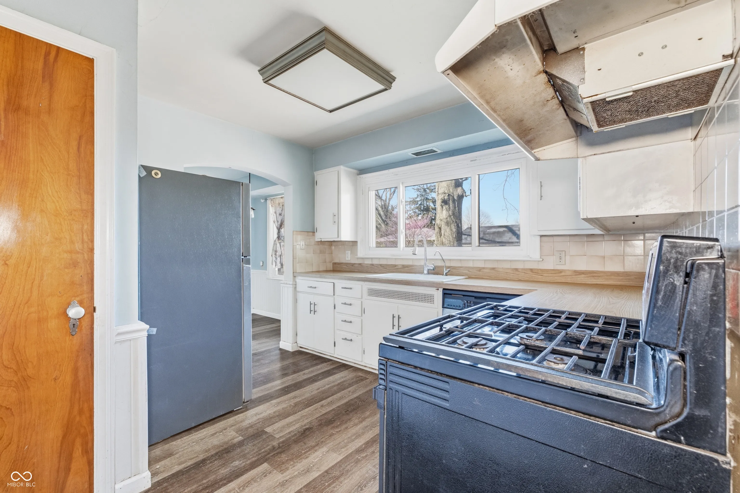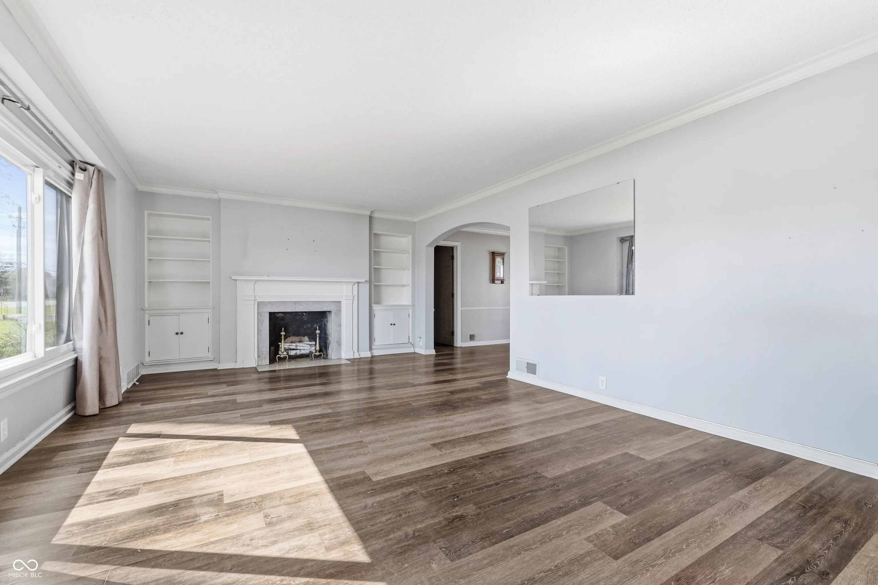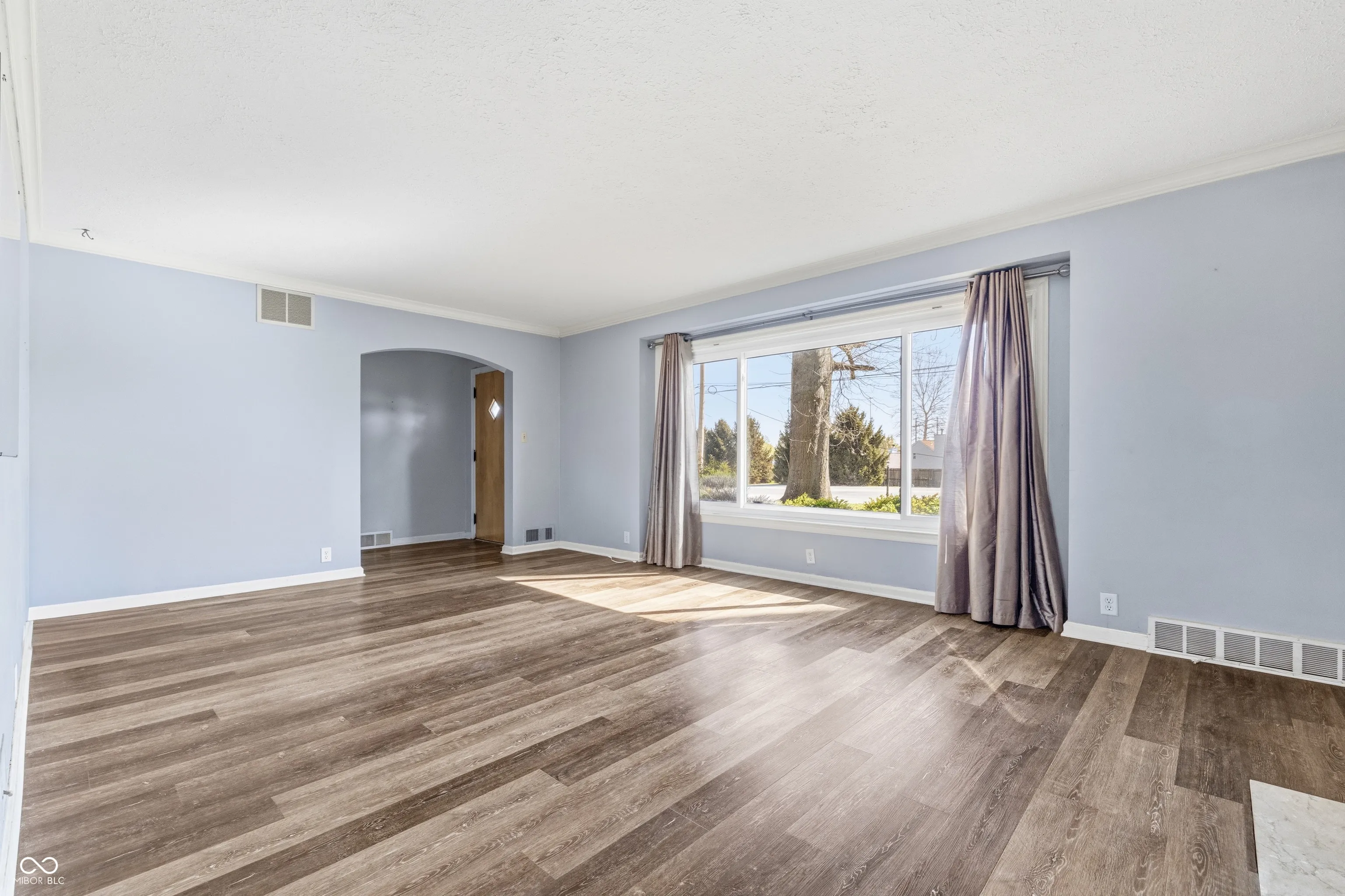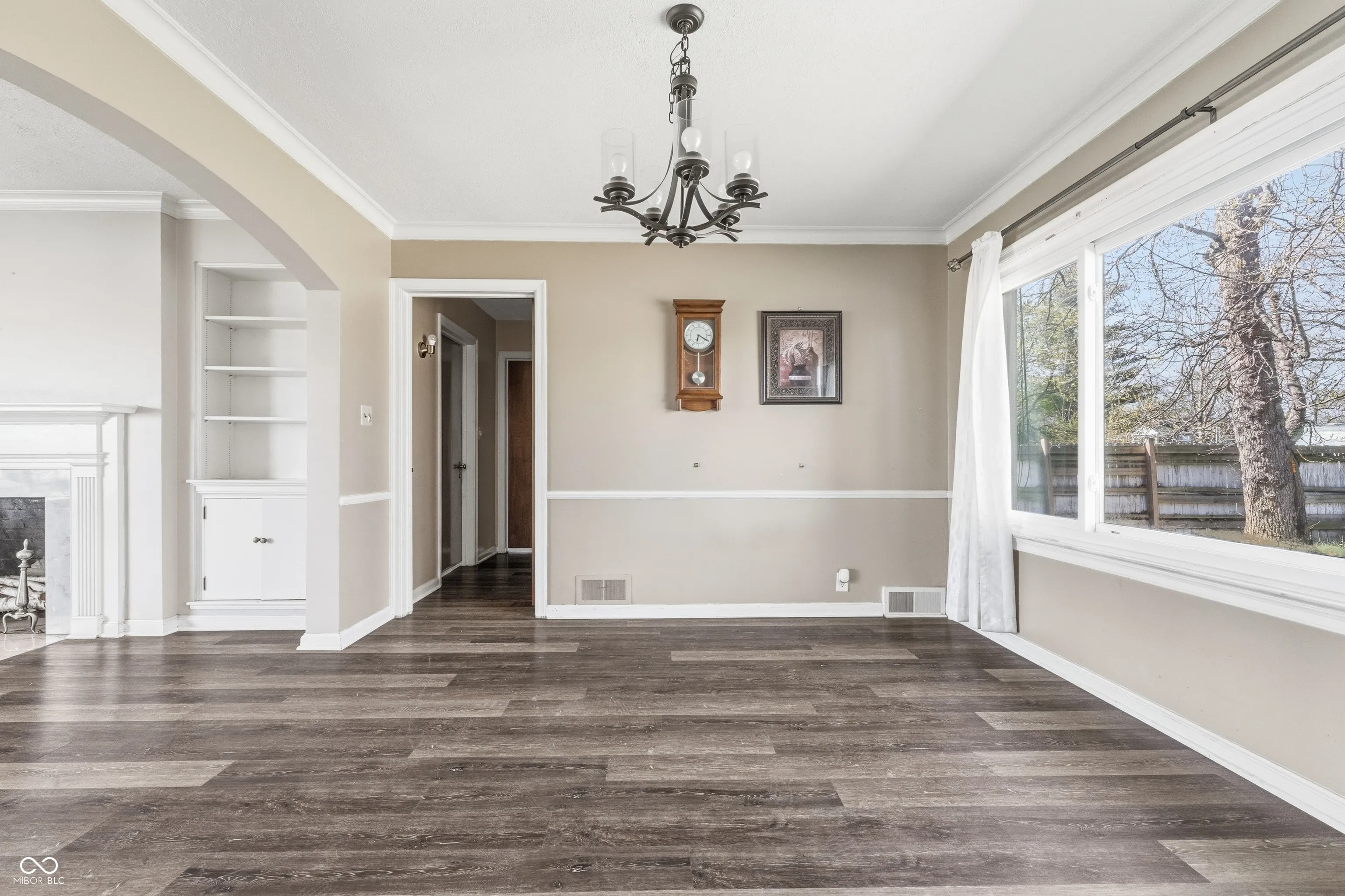 Perry Township Stone ranch on a 1.149 Ac corner lot offers a 3 Bedrooms, 1.5 baths, extra large 2 cars attached garage with a wood-working area or storage area, and a full basement, as well as a spacious long private driveway with a turn- around for easy parking and driving. Many updates have been made recently. Updates include Flooring (2021), sump pump (2024), private well pump (2023), and all plumping supply line was replaced in (2023). This 1947 built home has timeless charm and character throughout. There’s a beautiful arched entry way to the sundrenched living room and dining room. LR is very spacious and cozy with a fireplace, built in bookcases and crown moldings. Adjacent to LVR is a Dining Room with large windows which also brings in natural light throughout the day. A cute breakfast nook by the kitchen comes with large window and great built-in shelving or cabinet for your favorite items to display. Another room is just a cozy corner kitchen with all the kitchen appliances, and it offers a great view of the spacious backyard as well. Home also offers a large basement which is just a blank canvas for anything owners want it to be, and it already has both washer and dryer. A spacious backyard with privacy fence, a large brick patio and a firepit is ready for any occasions for gathering. This charming Stone ranch is close to Indy Downtown, Greenwood and has easy access to Interstates and major highways. Close to shopping centers, yet home is in an established neighborhood with mature trees and NO HOA.
