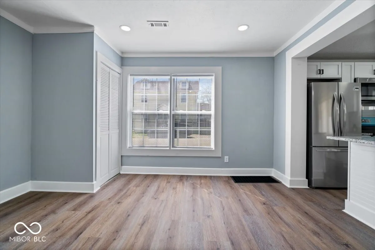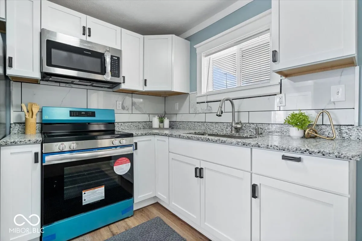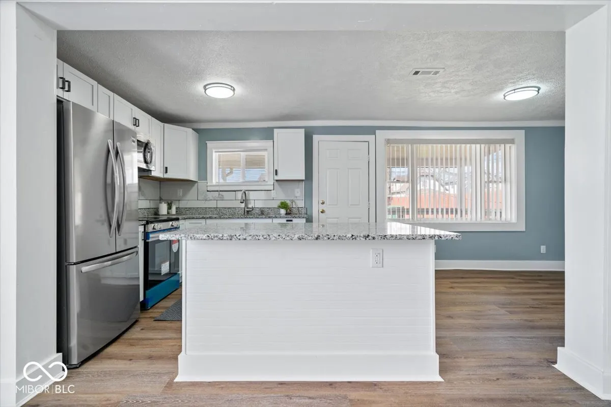 Come view this RENOVATED home located on the west side of Indy on a corner lot. This 4 bedroom, 2 bath house has been refreshed and ready for you to move right in. Step onto the charming covered front porch with updated lighting. Enter into the spacious living room with an electric fireplace. Primary bedroom on the main floor with full bathroom off the hallway. Updated walk-in shower, double vanity and toilet. Updated kitchen with NEW white cabinets, center island, granite countertops, NEW Stainless Steel appliances, lighting and sink. NEW flooring in the living areas. The fully fenced yard with plenty of room to play outside, garden or gather. It’s the perfect blend of fresh updates and welcoming spaces – a must-see! 2 car detached garage with side door entrance. Located within minutes to downtown Indy and the Zoo. This property qualifies for grants and down payment assistance programs. Set your showing up today!