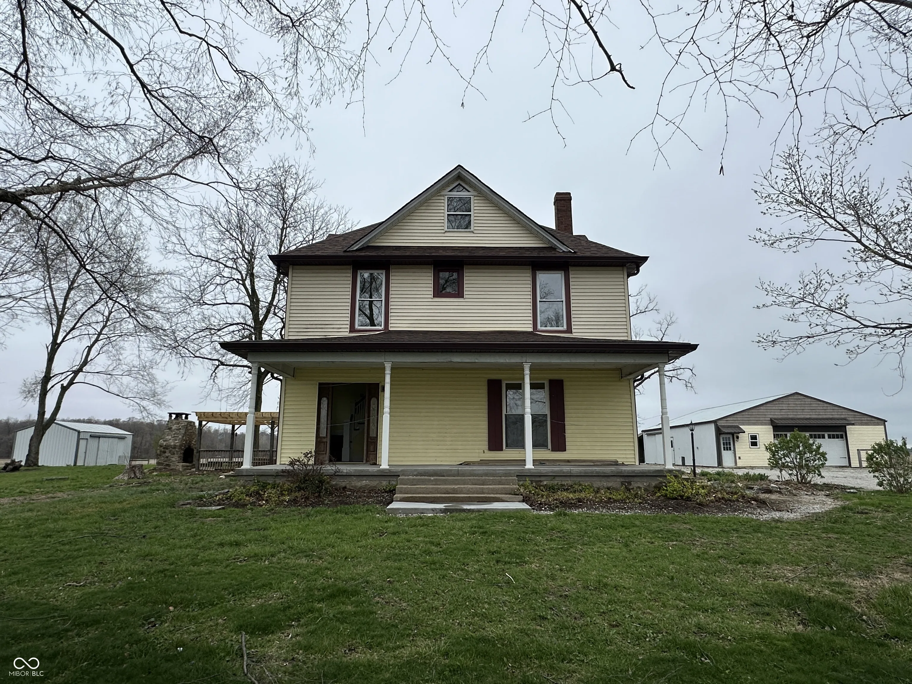 *INTERIOR PHOTOS COMING SOON.* Set on 3.25 picturesque acres off of Highway 59 in Rockville, this stunning 3,040 SF, 2.5 story Victorian farmhouse offers the perfect blend of classic charm, modern updates and incredible functionality…an ideal setting for a mini farm or country retreat! Step inside to a grand entrance foyer showcasing a striking mosaic tile design inlaid in the hardwood floors, leading to an elegant staircase. The home features 4 spacious bedrooms and 2 full baths, along with the rare convenience of both a main level laundry room and a second laundry upstairs. 2 cozy gas fireplaces anchor both the living room and dining room, creating inviting spaces for everyday living and entertaining. The updated kitchen impresses with granite countertops, stone backsplash and a walk-in pantry, blending style with practicality. Outdoor living is just as exceptional. Enjoy the covered front porch with new concrete, or relax by the outdoor fireplace on a brick paver patio beneath a pergola, overlooking wide open views. The mini farm infrastructure is already in place, including a fenced front pasture, garden area and well house/storage shed with a new well pump just installed in February 2026. The property also boasts remarkable outbuildings: (1) A massive 1,920 SF oversized, 4-car detached garage with concrete floor and electric; (2) A 1,728 SF pole barn featuring a 2-car garage bay with concrete and electric, plus a 3-stall area behind it (middle stall with concrete floor), electric and water pump/spigot for easy animal watering; (3) A 432 SF lean-to off the back of the pole barn for additional storage; and, (4) Another 384 SF storage barn on the opposite side yard. Major updates include a new roof on the home just 6 months ago. With space to spread out, room for animals and serene country views in every direction, this property offers a rare opportunity to enjoy the rural lifestyle you’ve been dreaming of.