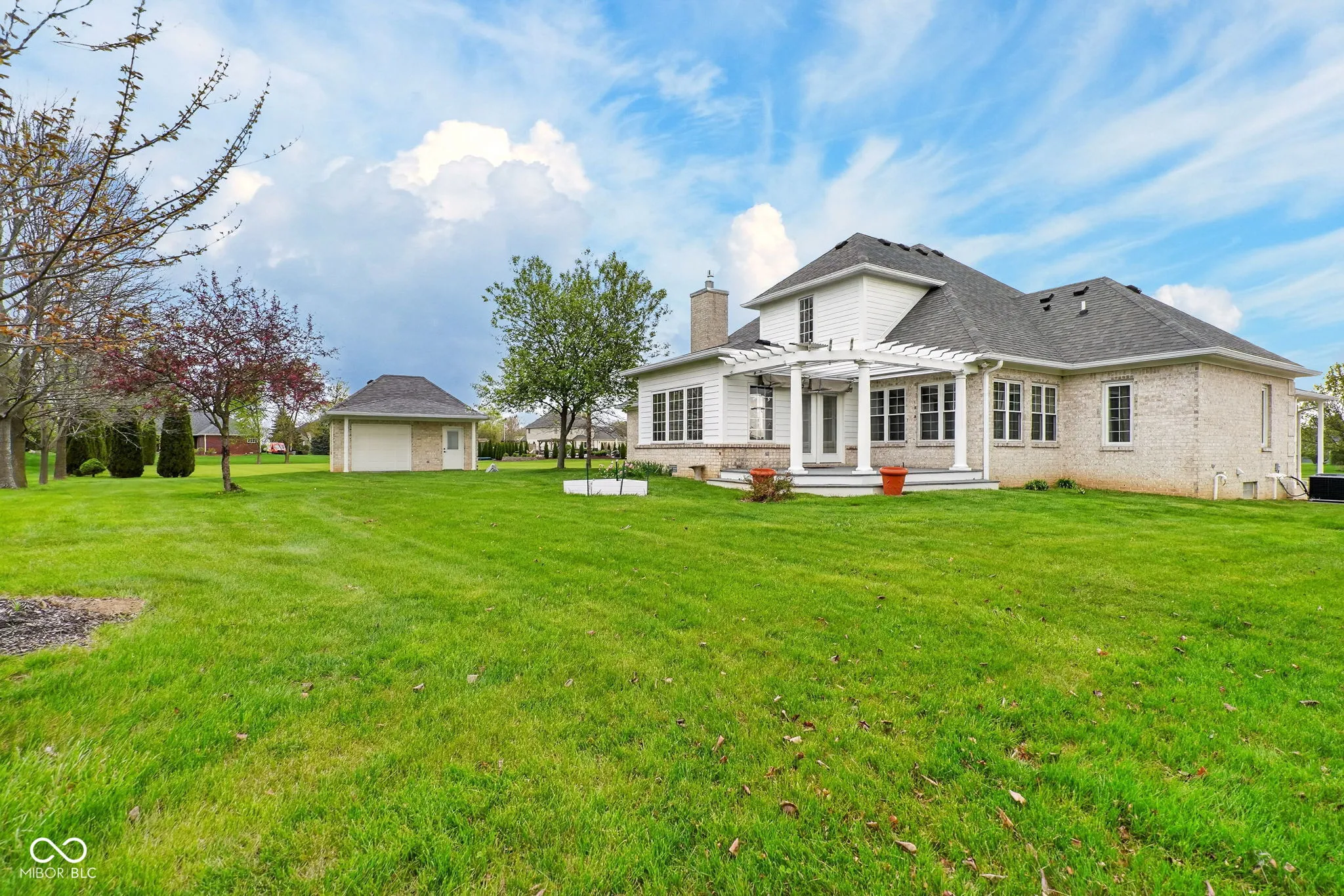 This completely custom built home is hitting the market for you! The options are endless with your ability to even make this a 5 (+) bedroom home (add a closet to the main floor den and/or convert the loft upstairs! The possibilities are truly endless in this custom home! The home currently has 3 bedrooms (primary down), 3 living spaces on the main floor, 3 full baths, a full basement, raised ceilings in entire home, and outdoor living to stun. First floor is complete with primary bedroom, WIC, updated primary bath including soaker tub, dual shower heads, plenty of storage, and your own fireplace. Upstairs you will find 2 large bedrooms, WICs, and loft area between. The basement shows off with a complete 2400 sq ft inlcuding a heated floor office, dual egress windows, and several rooms ready to complete however you want to finish off this home and make it your own! Outside you will find a massive 3 car garage, beatiful outbuilding, gas hook up for your grill on the stunning patio, and even buried downspouts. The patio is beautiful with attachments for overhead and side sun shades to enjoy the beautiful view of this 0.81 acre property. Also installed in home: generac generator, whole home radon system, reverse osmosis system, 2 water heaters (including tankless and one just for the primary bedroom). No detail was overlooked in this home and it is ready for you to make it your own!