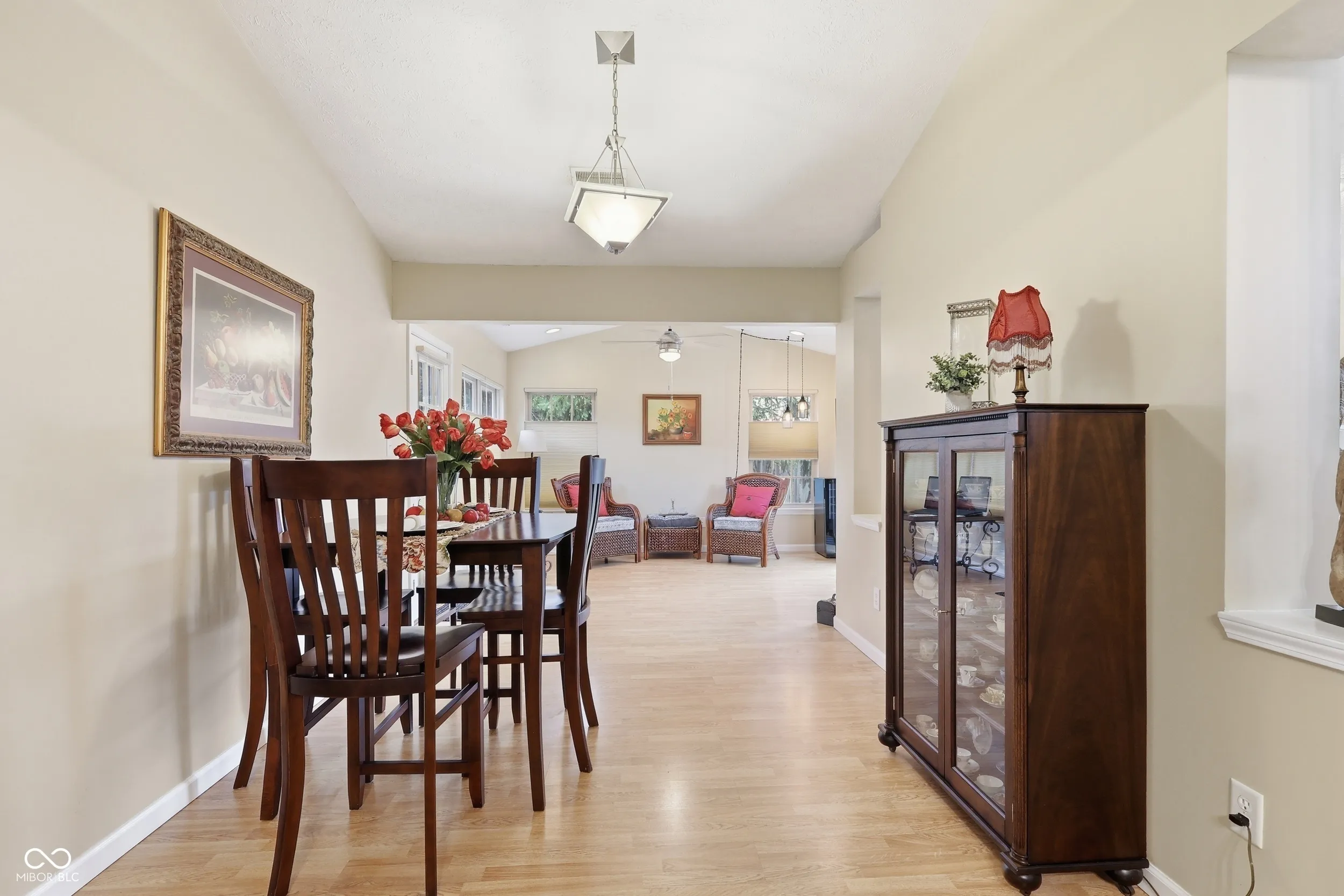 Step into this darling 2-bedroom, 2 full bath, 2-car garage home that perfectly blends comfort, charm, and functionality. The inviting great room welcomes you with a soaring vaulted ceiling and a cozy fireplace-ideal for relaxing evenings or gathering with friends and family. Just off the main living space, pass through the breakfast nook to the bright and airy sunroom offering the perfect spot to enjoy your morning coffee or unwind with a good book while taking in peaceful views of the two private backyard patios. The kitchen shines with updated appliances, offering both style and convenience for everyday living and entertaining. The thoughtful layout flows seamlessly, making the home feel both spacious and connected. The primary suite and additional bedroom are generously sized, each complemented by full baths designed for comfort and ease. Nestled in a tranquil, peaceful community, this home offers a low-maintenance lifestyle without sacrificing warmth or character. Whether you’re downsizing, rightsizing, or simply looking for a place that feels like home the moment you walk in, this one is a must-see. All newer mechanicals, a new deck and a new roof on-the-way mean that all you need to do is unpack!