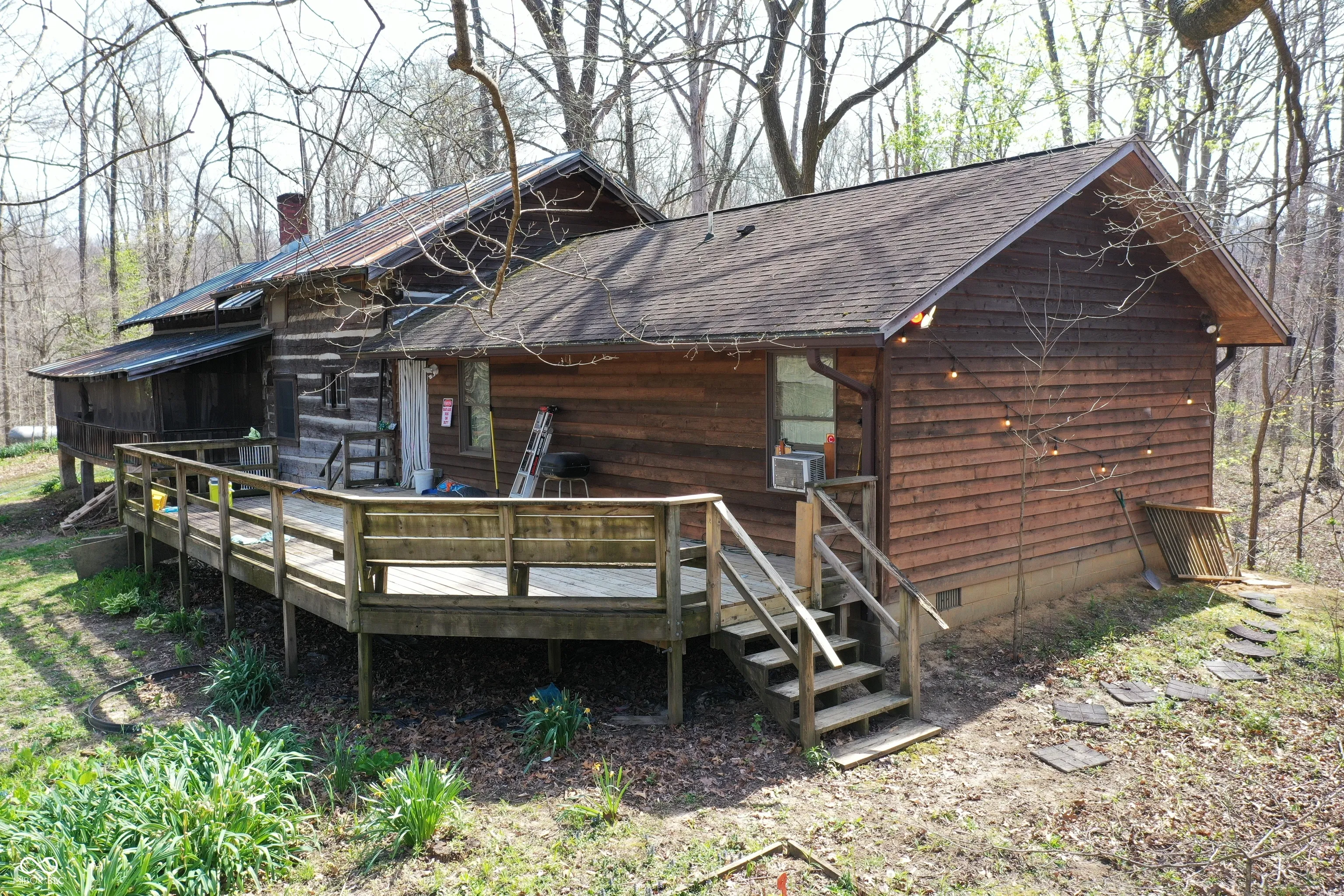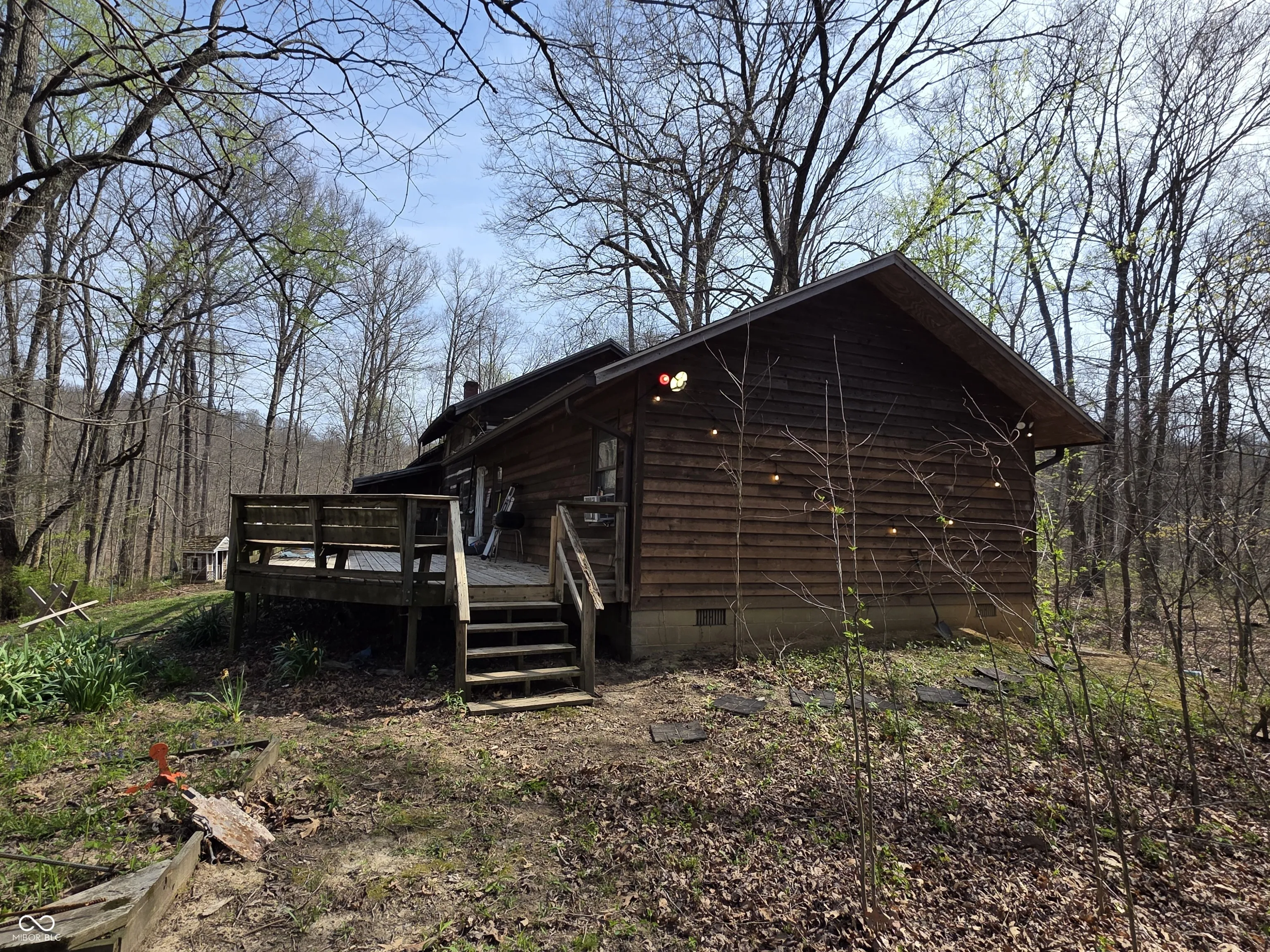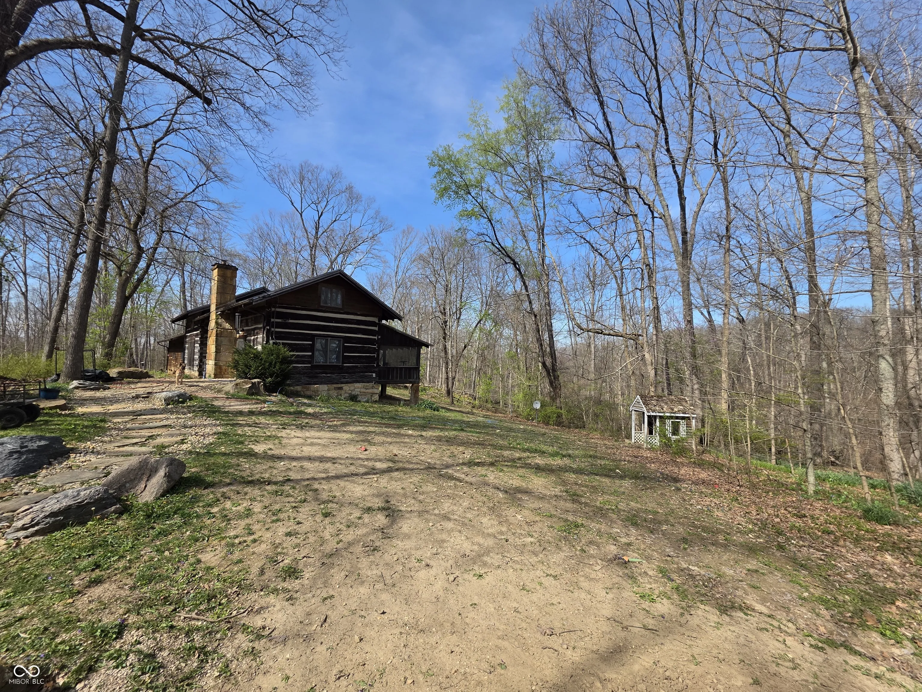 Located on SR 135 N between Nashville & Bean Blossom, just north of the Bean Blossom overlook, this 11.2-acre fully wooded property offers a private setting in one of Brown County’s most desirable scenic corridors. The property combines the feel of a secluded retreat w/ the convenience of direct state road access. The 2,844 sq ft log home features 3 bedrooms & 3 full bathrooms, w/ the original cabin dating to 1937. Interior highlights include an upstairs primary suite w/ loft, formal dining room, & a downstairs utility room. Wood finishes throughout maintain the original log home character; & new flooring installed in bedroom hallways. The home is equipped with city water & propane furnace, w/ a new HVAC system installed 2 years ago. Outdoor features include a screened-in back porch & open rear deck overlooking the wooded acreage, along w/ a camper/RV power hookup. The land is fully forested, offering privacy & recreational potential.