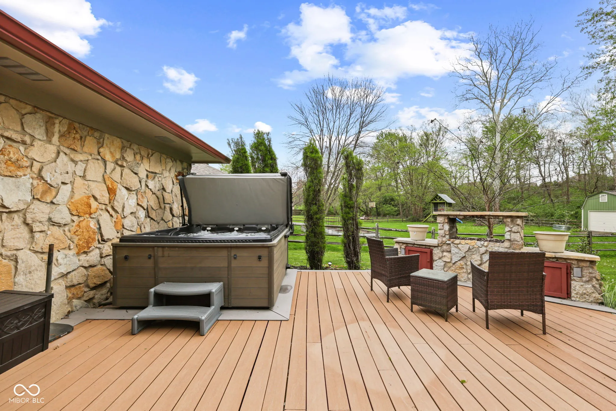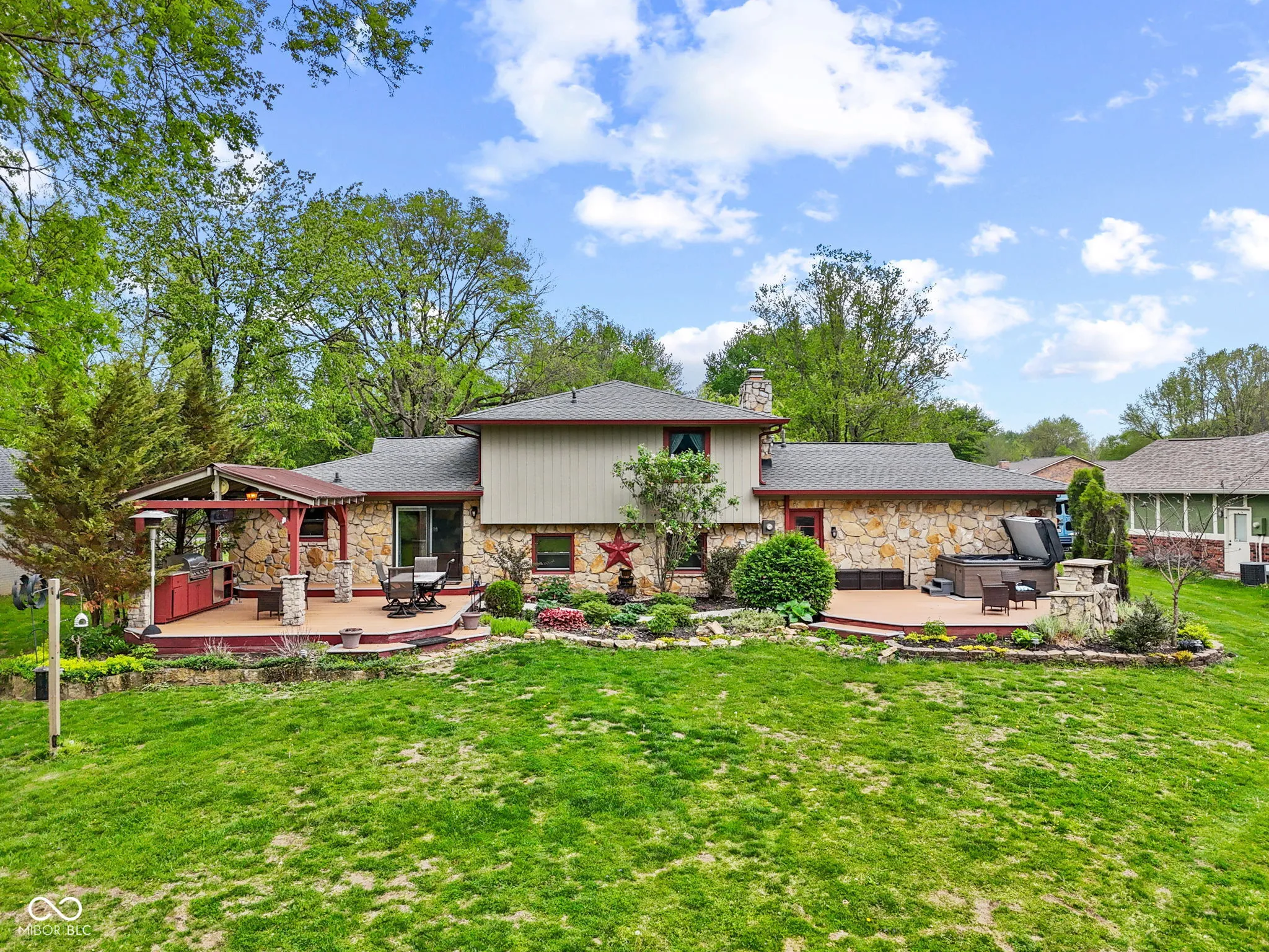 Welcome to this spacious and inviting 4-bedroom, 2.5-bath home designed for both comfort and entertaining. Featuring two separate living areas, this home offers the flexibility for relaxing, hosting, or creating a dedicated home office or play space. At the heart of the home, you’ll find an eat-in kitchen complete with stainless steel appliances, ideal for everyday living and casual gatherings. Cozy up by the charming wood-burning fireplace, adding warmth and character to the main living space. The primary suite is the perfect place to relax with your en suite bathroom, complete with a standing shower and walk in closet, or soak in your hall bath Jacuzzi tub. Step outside and discover your own private outdoor oasis. This incredible backyard is built for entertaining, featuring an outdoor kitchen, fireplace, fire pit, and a hot tub-perfect for enjoying every season. The property also includes a versatile mini barn equipped with electricity, storage space, and an upper level, offering endless possibilities for hobbies, a workshop, or additional entertaining space. Recent updates include roof and gutters 4 years old, garage door 3 years old, new hot tub cover, and recently serviced HVAC giving you peace of mind. This home truly blends indoor comfort with outdoor living. Don’t miss your chance to make it yours!