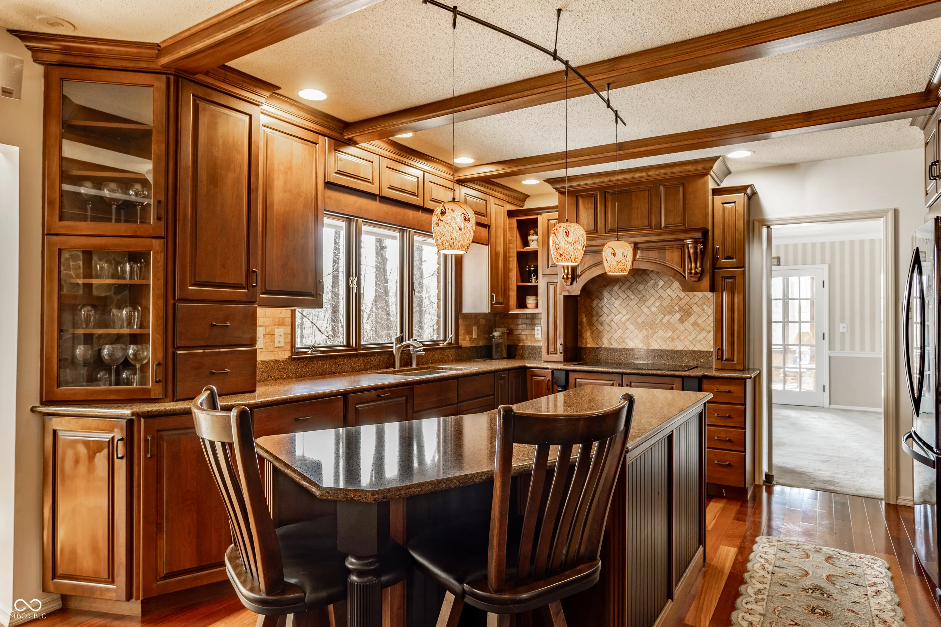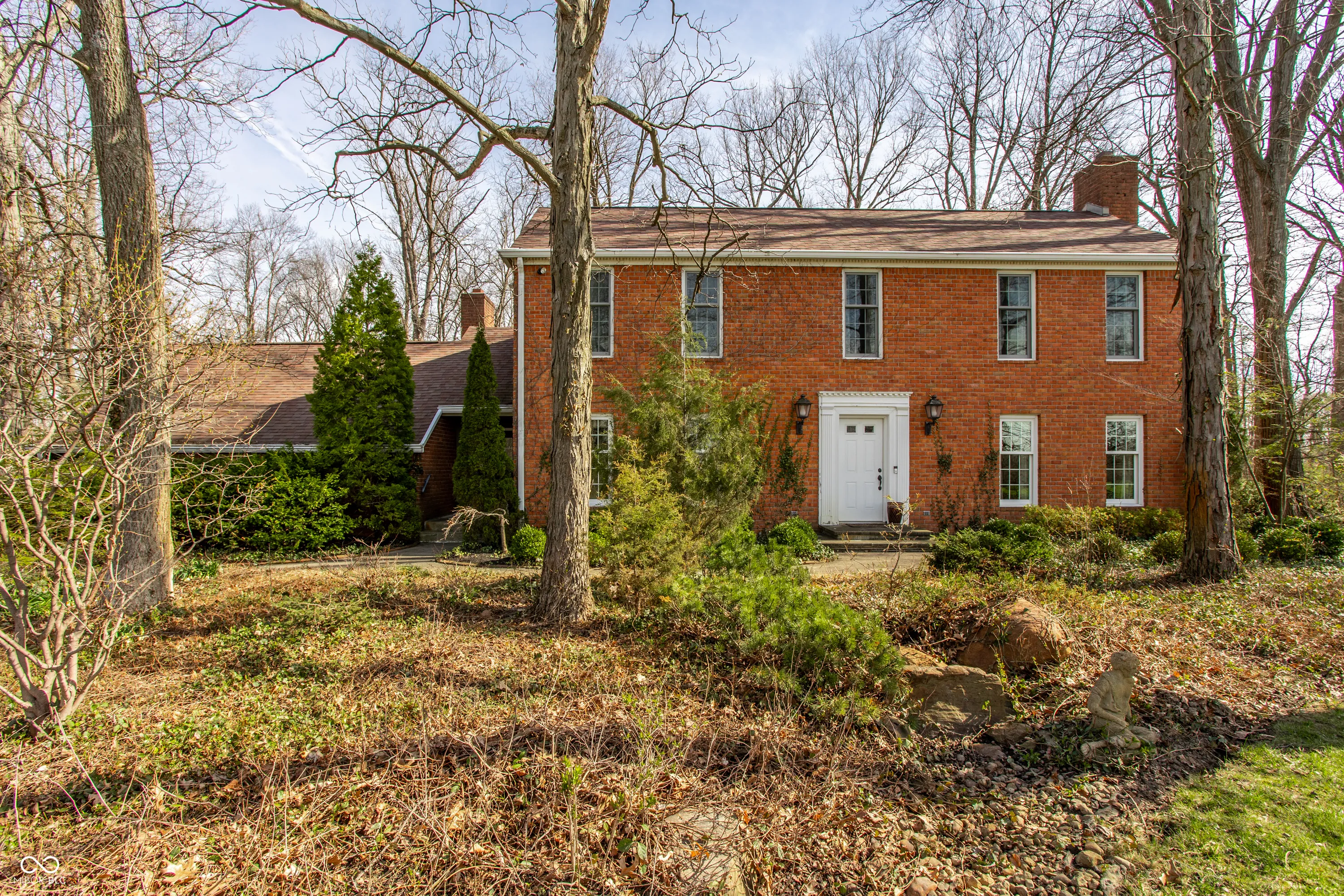 Stunning, custom built one owner estate in perfect Muncie location. Private views out every window, yet close to all amenities. Expansive family gathering area with beautiful fieldstone fireplace, large windows, custom built-ins and solid cherry finishes. Updated kitchen complete with custom cabinets, quartz counters, double ovens, induction cooktop and warming drawer. Main level is completed with a spacious living room, dining room, library and office with tons of built-in storage. Upper level boasts 4 generous bedrooms, tons of closets and upstairs laundry. Sunroom takes in the wooded landscape wrapped in casement windows and directly accesses the blue stone patio complete with water feature. A nature lover’s dream–densely wooded, fruit trees, garden plots and pasture. See it today!!! *Additional acreage available in two separate 12 acre parcels on both sides of the home: BLC 22093928 and 22093903.