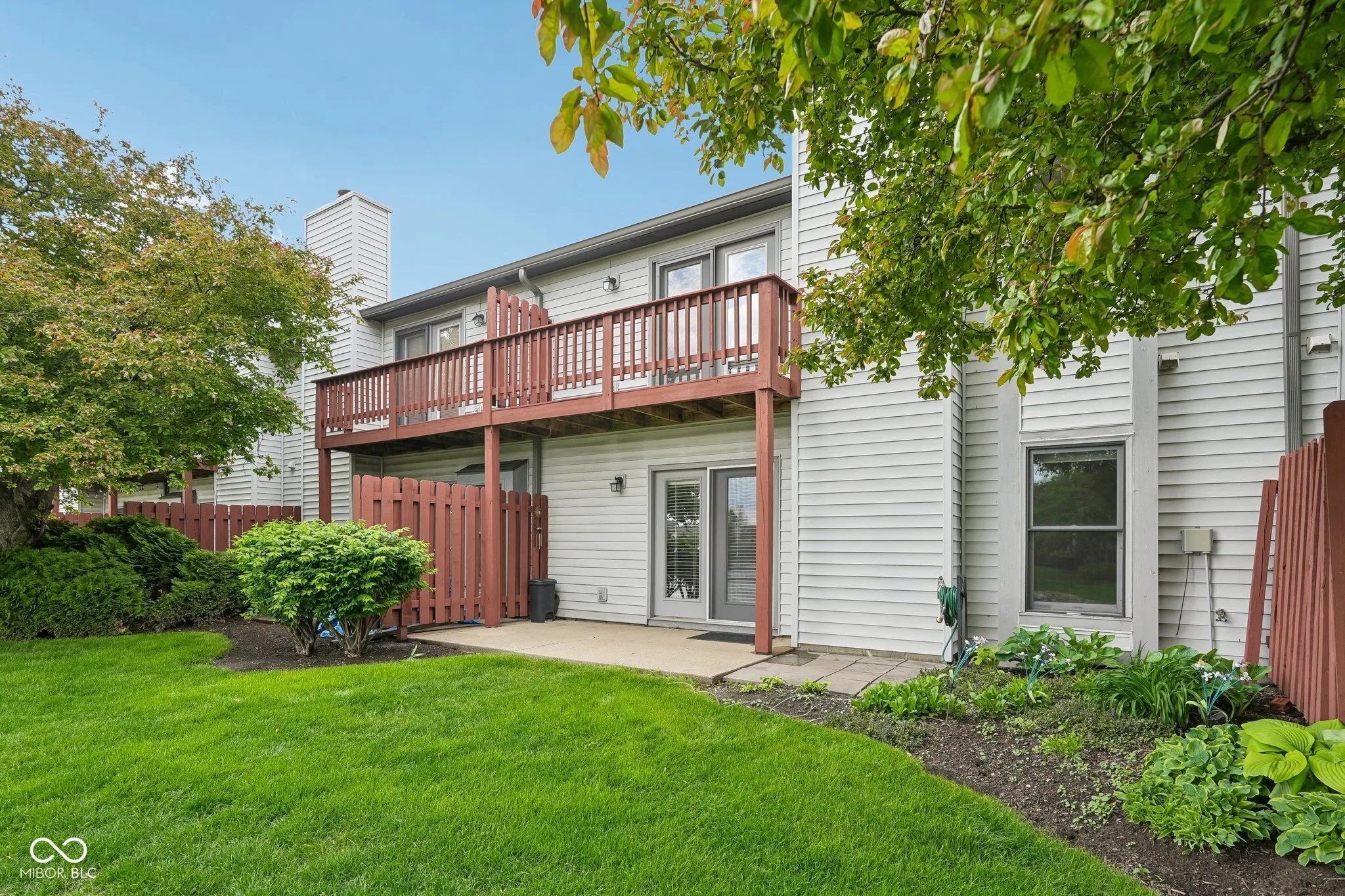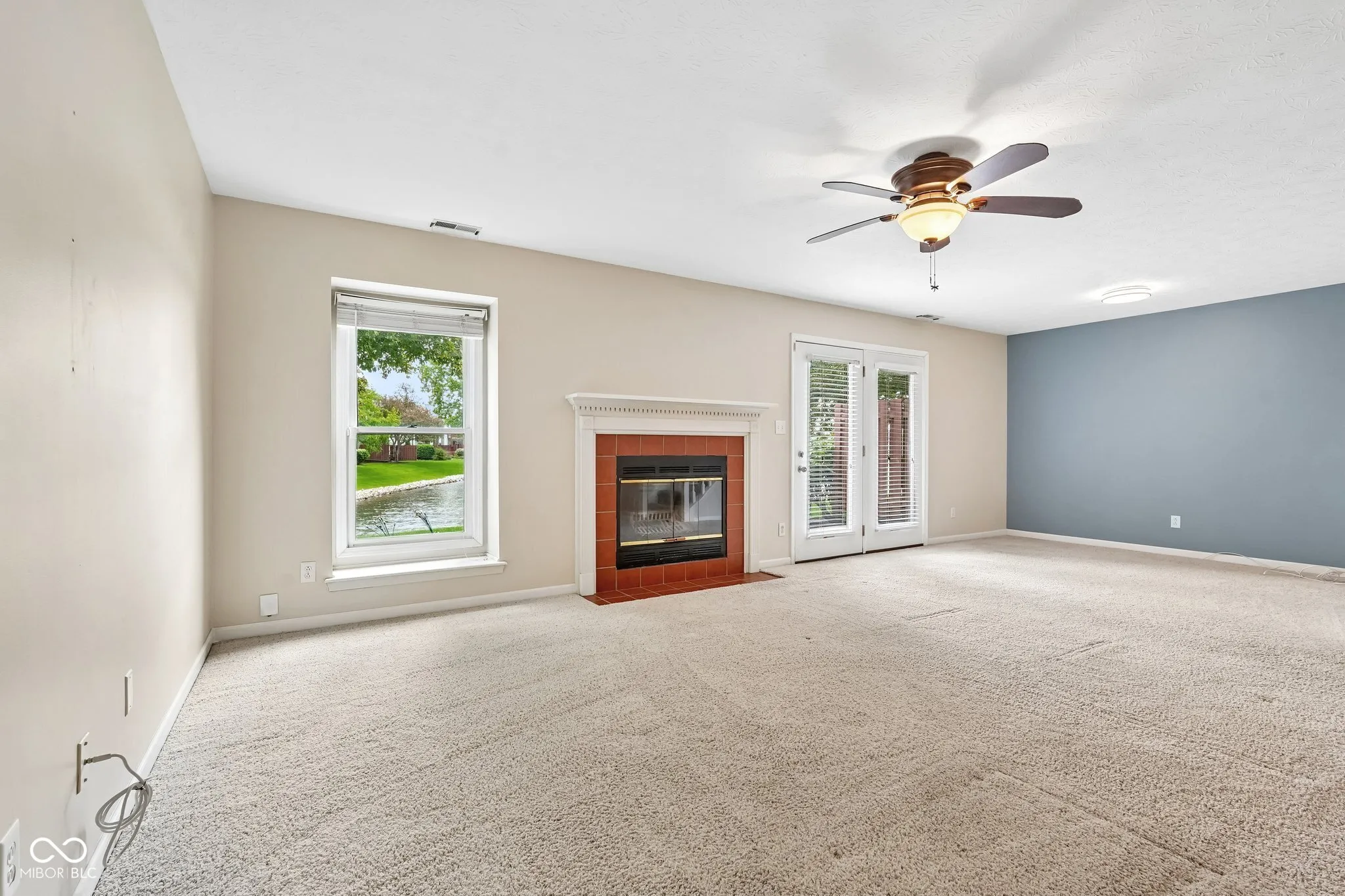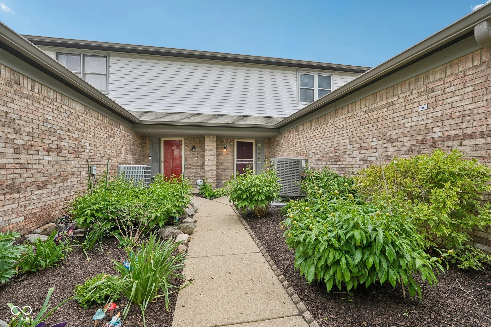 Waterfront living meets effortless convenience in Spinnaker Cove. Located ideally between 91st and 96th Street, this 1,612-square-foot condo delivers serene pond views right from your private patio. The main level features an open layout designed for easy living. Tile flooring spans the entryway into the kitchen, which is outfitted with a center island, stainless steel appliances, and ample pantry storage. The footprint flows directly into a massive great room anchored by a classic wood-burning fireplace. Adjacent is a highly adaptable flex space with excellent natural light; perfect for a home office, or extended living area. Upstairs, the home offers a true dual-suite feel. Both bedrooms feature vaulted ceilings and generous walk-in closets. The primary bedroom elevates the space further with a skylight and direct access to a private balcony overlooking the water. An upper-level laundry room, with the washer and dryer included, adds everyday practicality. With a rare 2-car attached garage, 2.5 total baths, and recent efficiency updates including a newer HVAC, water heater, and added attic insulation, the mechanical heavy lifting is already done. The community rounds out the lifestyle with an HOA that includes a neighborhood pool and clubhouse.