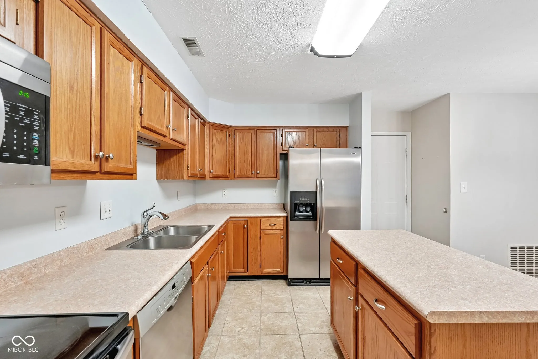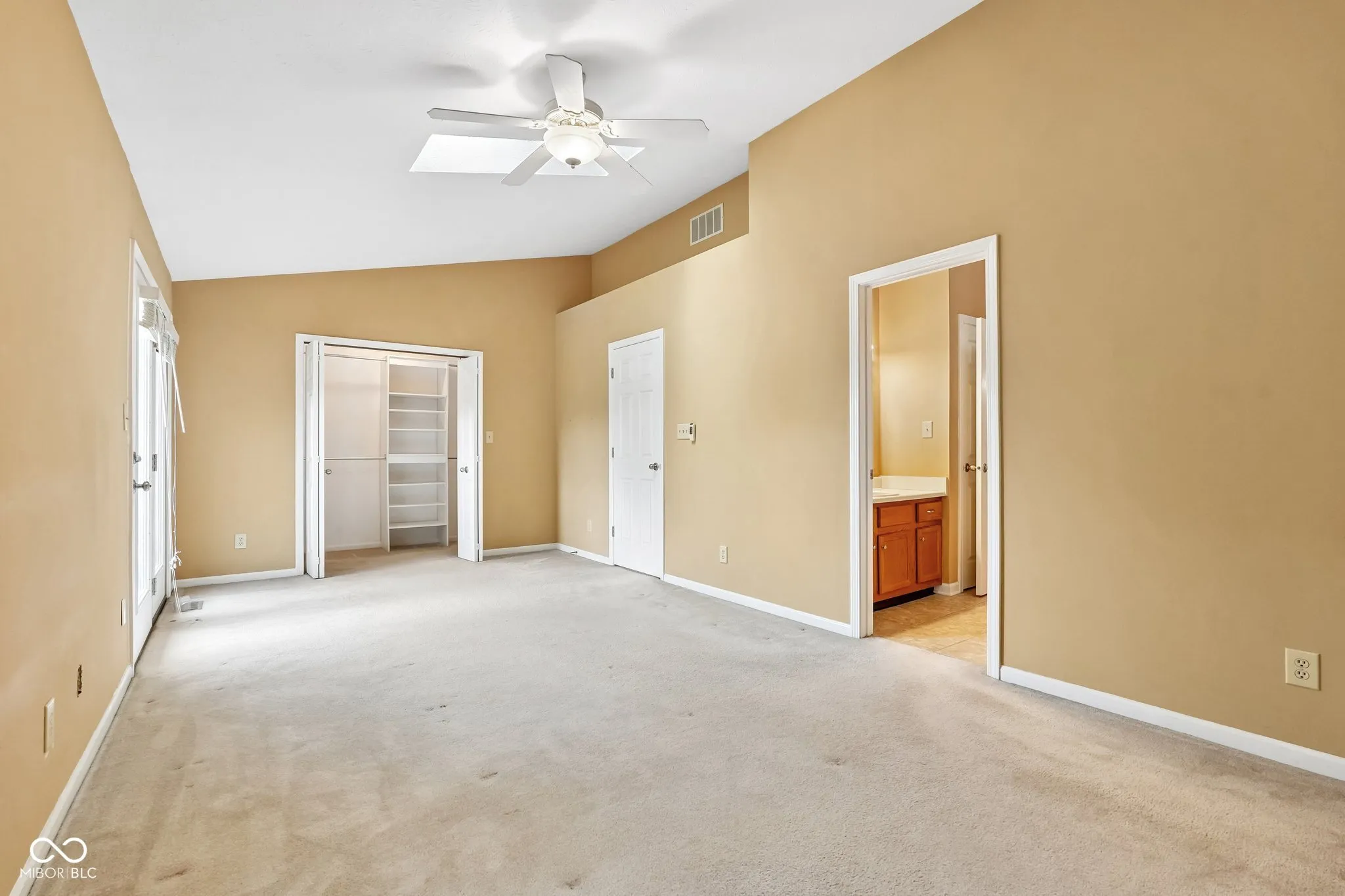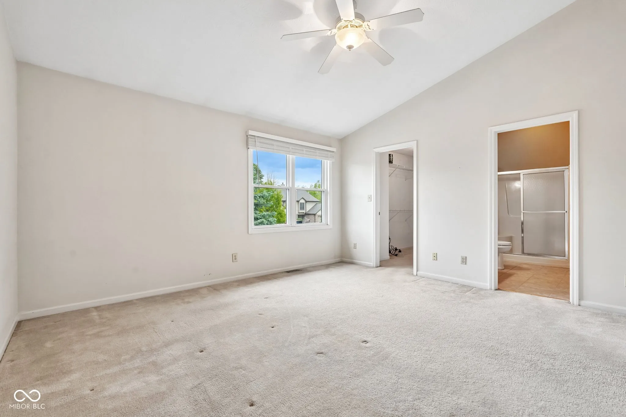 Waterfront living meets effortless convenience in Spinnaker Cove. Located ideally between 91st and 96th Street, this 1,612-square-foot condo delivers serene pond views right from your private patio. The main level features an open layout designed for easy living. Tile flooring spans the entryway into the kitchen, which is outfitted with a center island, stainless steel appliances, and ample pantry storage. The footprint flows directly into a massive great room anchored by a classic wood-burning fireplace. Adjacent is a highly adaptable flex space with excellent natural light; perfect for a home office, or extended living area. Upstairs, the home offers a true dual-suite feel. Both bedrooms feature vaulted ceilings and generous walk-in closets. The primary bedroom elevates the space further with a skylight and direct access to a private balcony overlooking the water. An upper-level laundry room, with the washer and dryer included, adds everyday practicality. With a rare 2-car attached garage, 2.5 total baths, and recent efficiency updates including a newer HVAC, water heater, and added attic insulation, the mechanical heavy lifting is already done. The community rounds out the lifestyle with an HOA that includes a neighborhood pool and clubhouse.