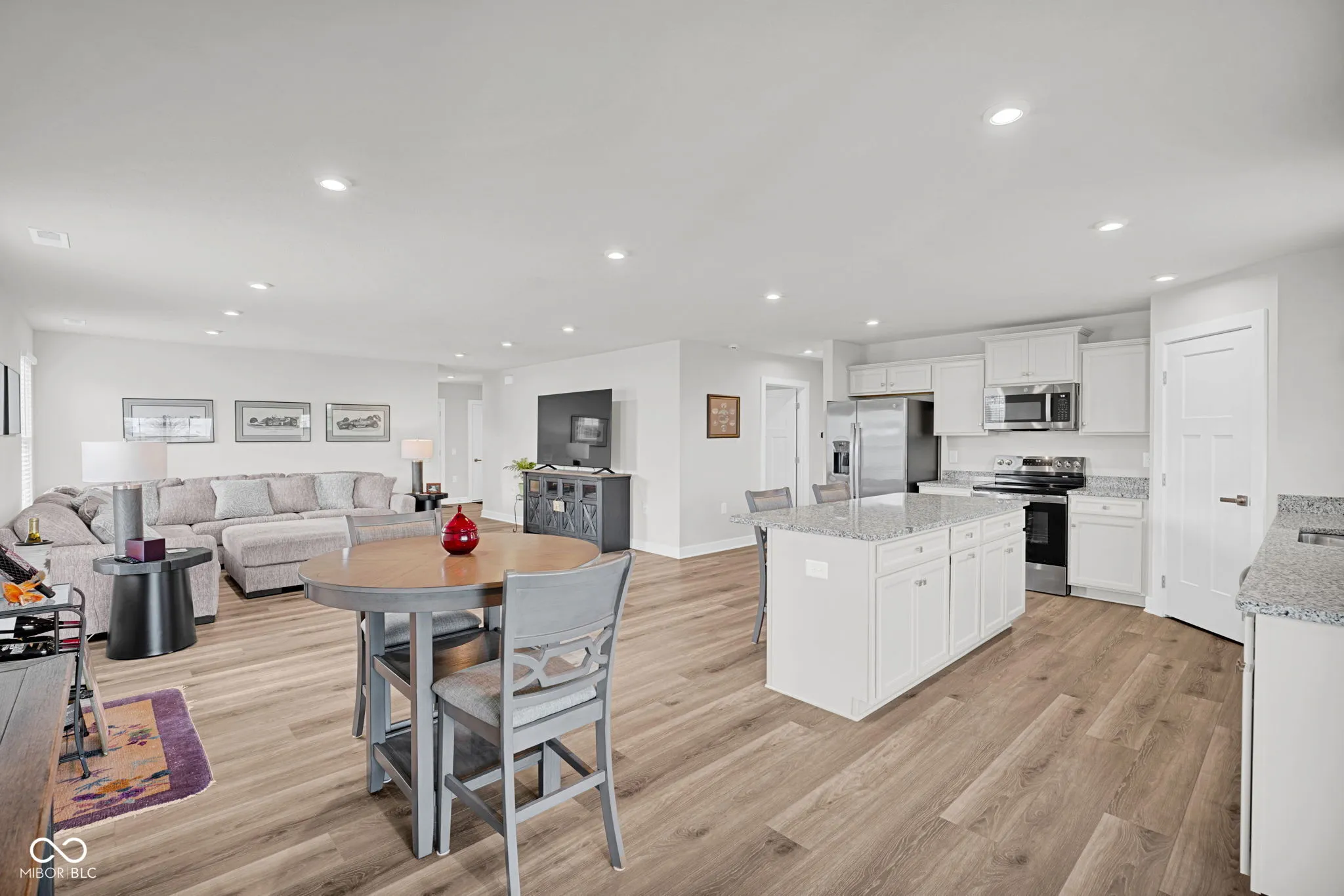 Welcome to 959 Independence Drive in the highly desirable Timbergate Subdivision, where low-maintenance living meets upscale comfort and golf course views! This beautifully upgraded 3-bedroom, 2 full bath home offers stunning views of the 13th green and over $30,000 in thoughtful upgrades since construction. Step inside to an open-concept layout featuring a spacious living room that flows seamlessly into the dining area and kitchen-perfect for everyday living and entertaining. The kitchen is a standout with granite countertops, a large center island, and all appliances included. Durable vinyl plank flooring runs throughout the main living areas, while plush carpeting adds comfort in the bedrooms. Custom faux-wood blinds have been installed throughout the home. Designed for efficiency and convenience, this home includes an on-demand gas water heater, water softener, and a whole house water filtration system. The finished garage adds even more functionality, while the energy-efficient construction helps keep utility costs low. Enjoy outdoor living at its best with a covered back patio plus an extended open patio-ideal for a future hot tub or entertaining space. The spacious lot offers added privacy, enhanced by beautiful low-maintenance landscaping, full sod installation (front and back), and sidewalks on both sides of the home. The HOA takes care of lawn care and snow removal-making this a truly low-maintenance lifestyle. Exterior finishes include attractive stone and composite cement siding for long-term durability and curb appeal. With recent price increases on the Eden Cay model, you can’t even build this home today for this price, making it an incredible value. Move-in ready and packed with upgrades, this is a rare opportunity to own a better-than-new home in Timbergate.