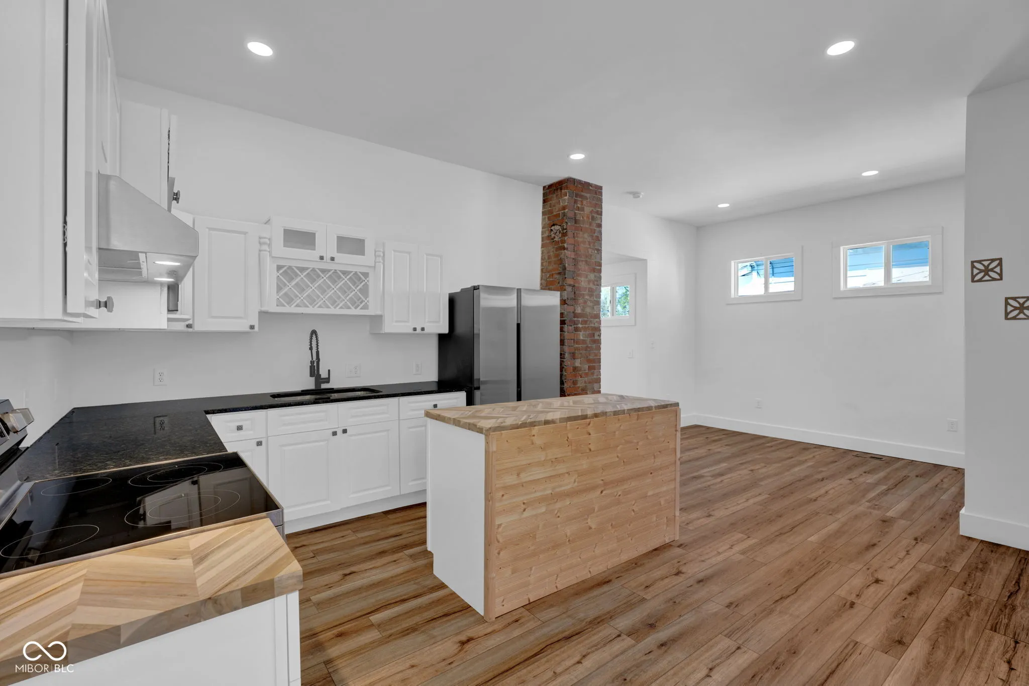 Welcome to 1200 N 10th St – Nestled in Terre Haute, this delightful turn of the century home-originally built in 1909-has been carefully renovated and shines with upgraded finishes, space, and modern touches. A Kitchen Made for Living The true centerpiece of the home is the spacious, inviting kitchen with beautiful solid surface counter tops and white shaker (soft close) cabinets. A large island sets the stage for cooking, gathering, and late-night conversations, offers smart storage for all your culinary tools. Comfort in Every Corner With two full bathrooms, mornings run smoothly and evenings wind down with ease. One bathroom features a beautiful walk-in shower-your personal retreat-for a refreshing start or a calming end to the day. Room to Relax & Room to Live With 1,370 sq ft of living space on a generous corner lot, this home offers the freedom to spread out and enjoy life. Two large bedrooms provide peaceful retreats. The single-story layout and extra tall ceilings create an airy, light filled space that blends historic character with modern function. The back deck overlooks the open back yard, ready for summer BBQ’s and sweet tea sipping.