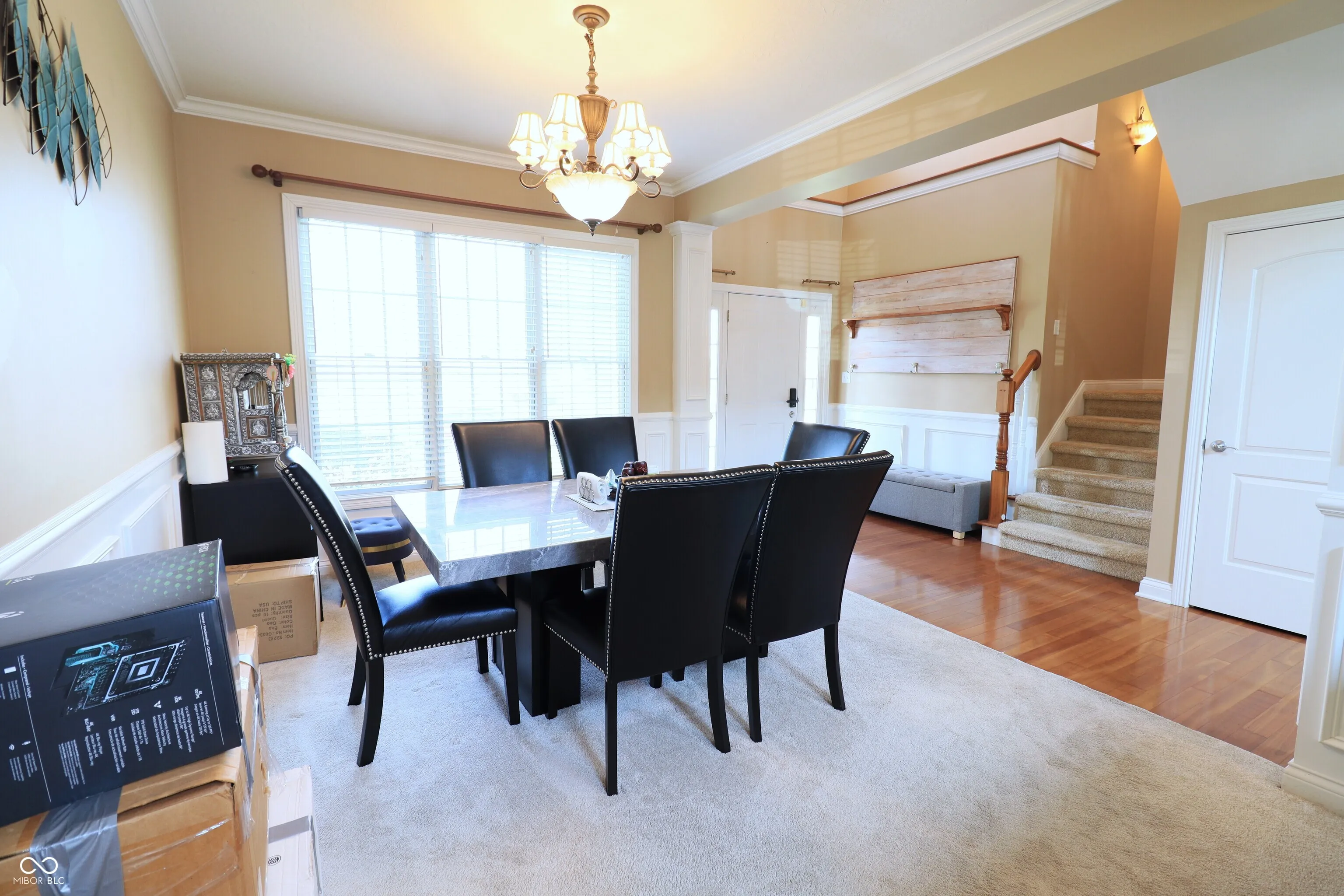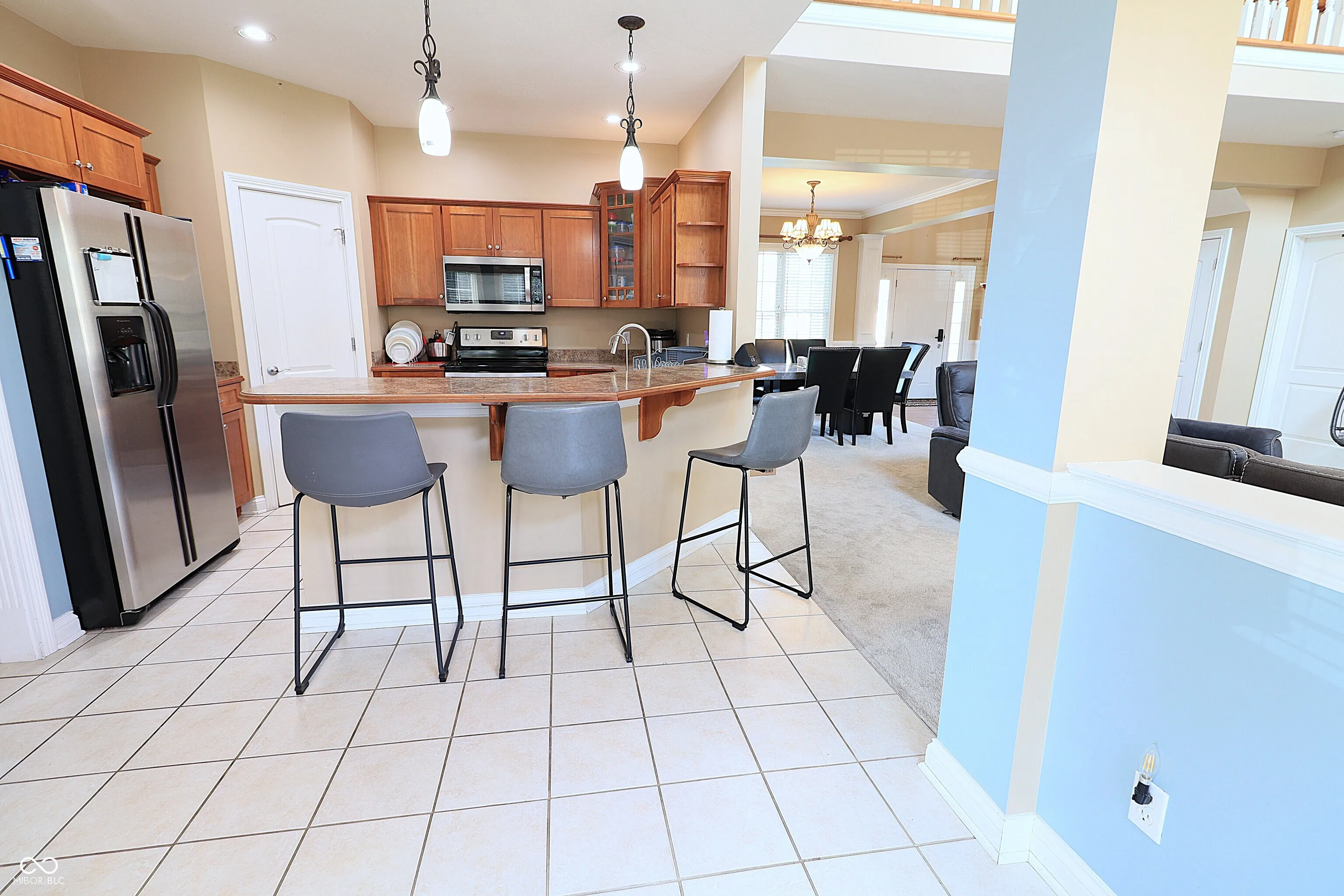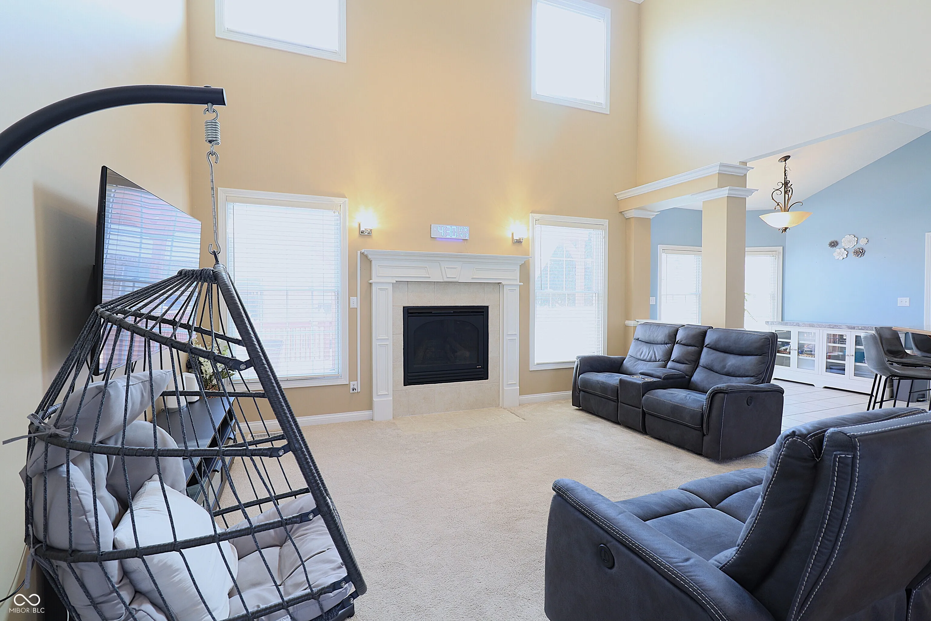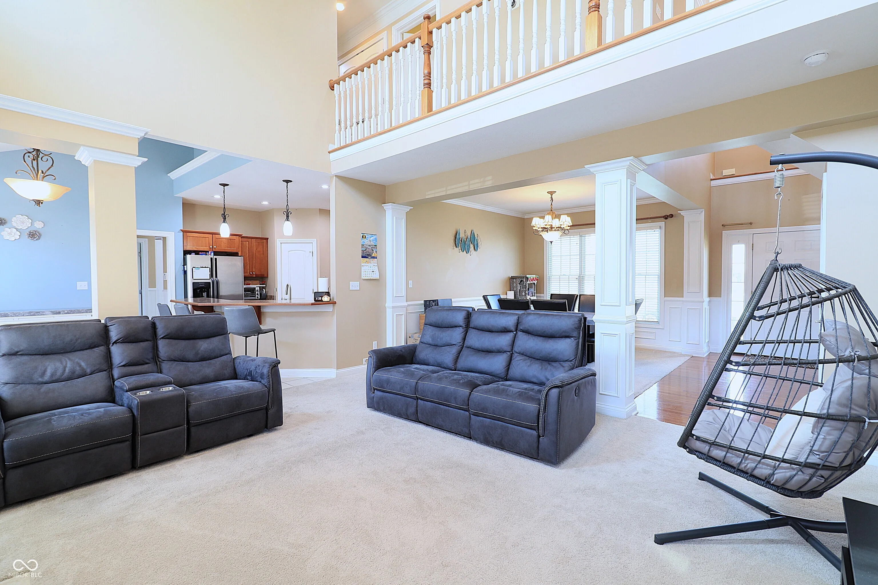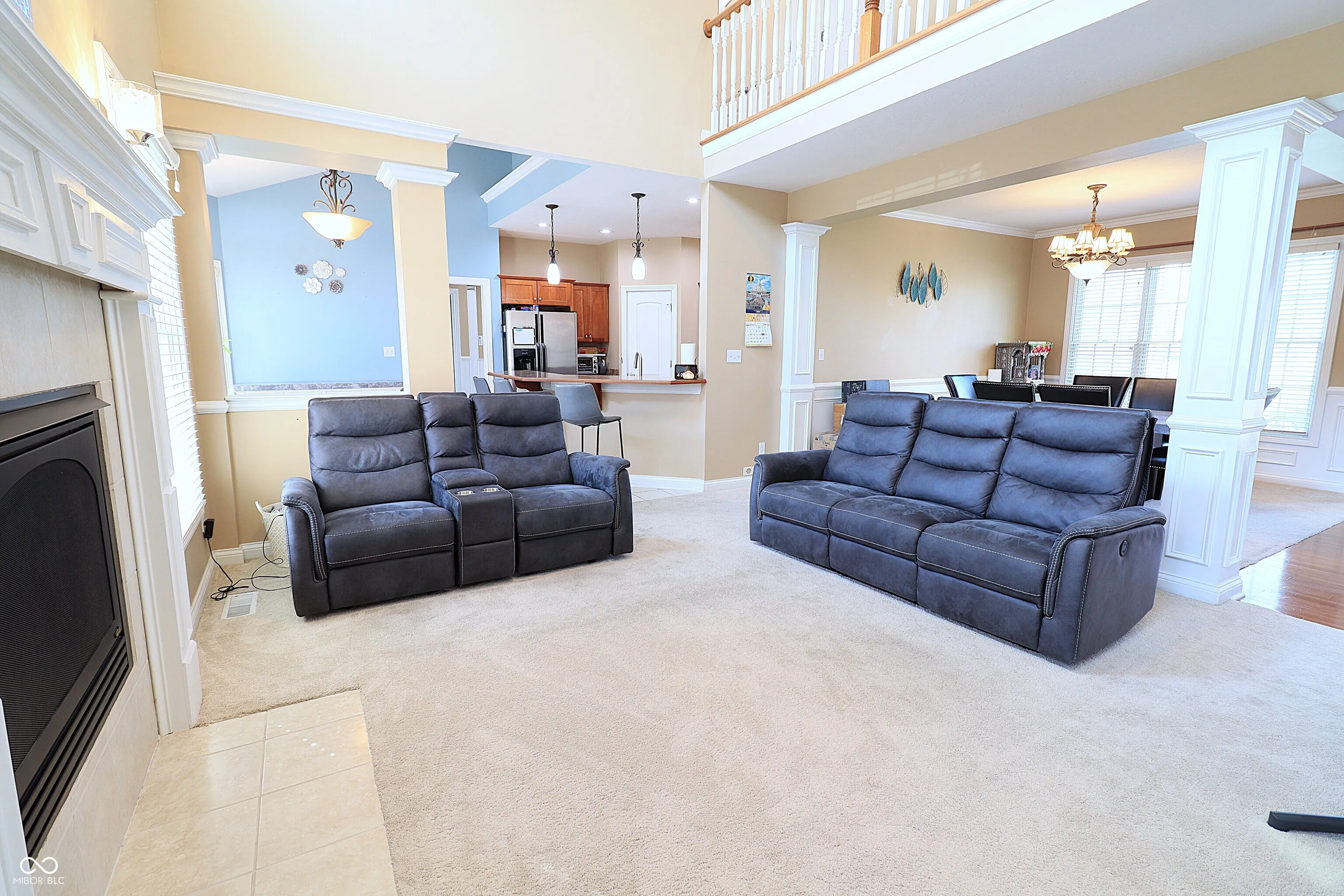Exceptional quality-built residence located in the highly sought-after Yorktown School District, offering impressive architectural design and functional living space. This 4-bedroom, 2.5-bath home is situated on a desirable corner lot with a fully fenced yard water pond view. The main level features a spacious great room with 18-foot ceilings and a gas fireplace, creating an open and inviting atmosphere. A formal dining room with decorative columns and wainscoting adds elegance for entertaining. The kitchen is well-appointed with cherry cabinetry, stainless steel appliances, tile flooring, a breakfast bar, and a walk-in pantry. The primary suite is conveniently located on the main floor and includes tray ceilings with crown molding, a whirlpool tub, and a ceramic walk-in shower. The upper level offers a versatile loft space along with three additional bedrooms, two of which include walk-in closets. A standout feature is the laundry/mud room, complete with built-in bench seating, coat and shoe storage, cabinetry, and a utility sink-designed for maximum convenience and organization. Ideally located just minutes from local schools, parks, and the YMCA, this home combines comfort, style, and accessibility. Room sizes and square footage are deemed reliable but not guaranteed. Buyer is responsible for verifying all measurements and dimensions.