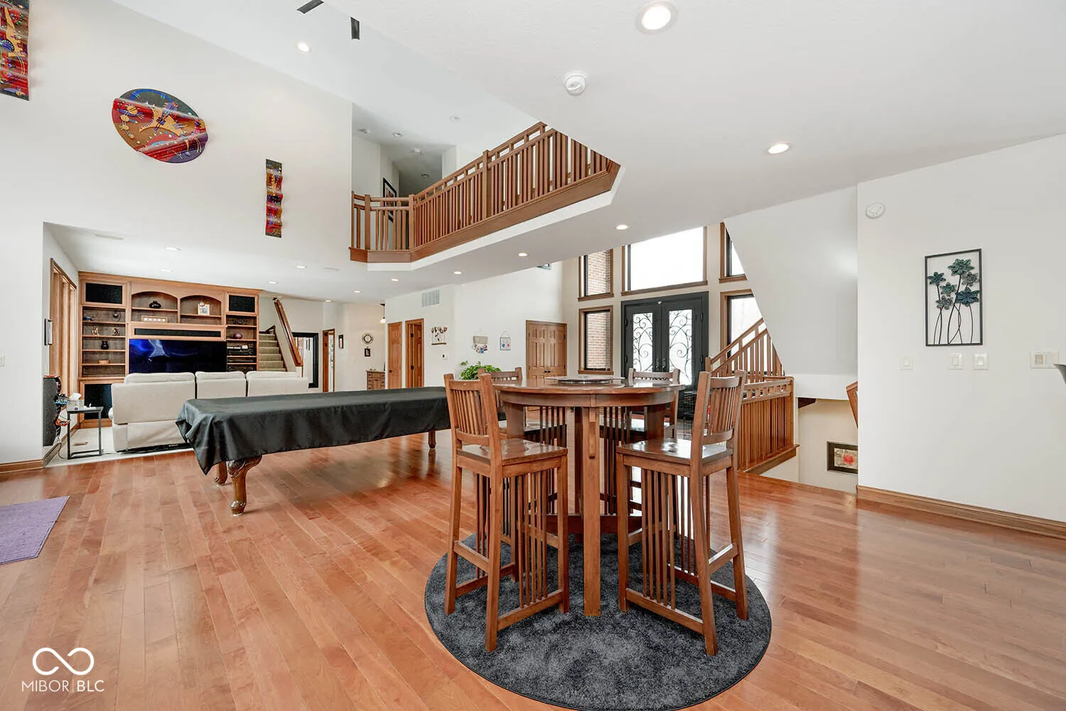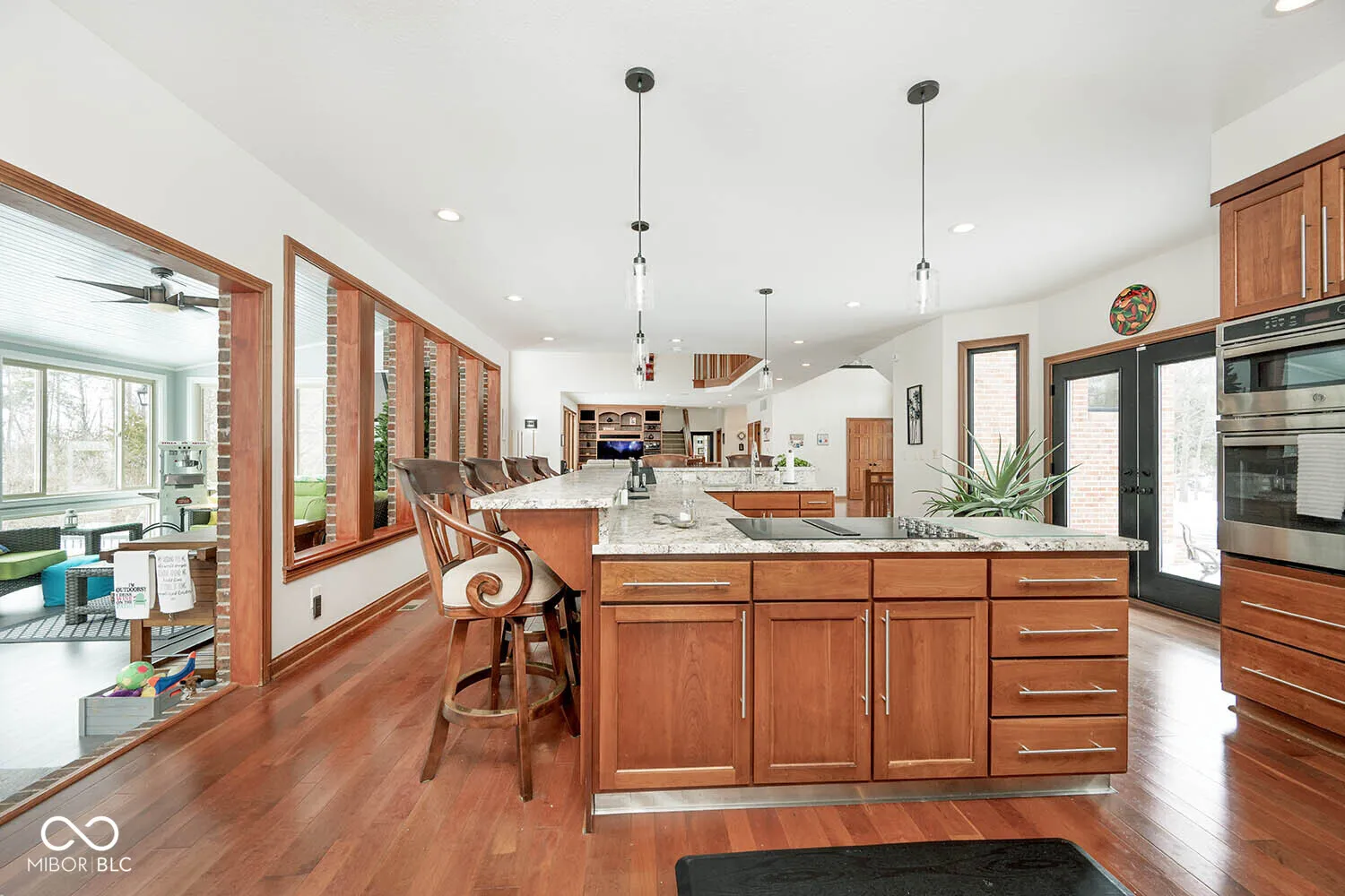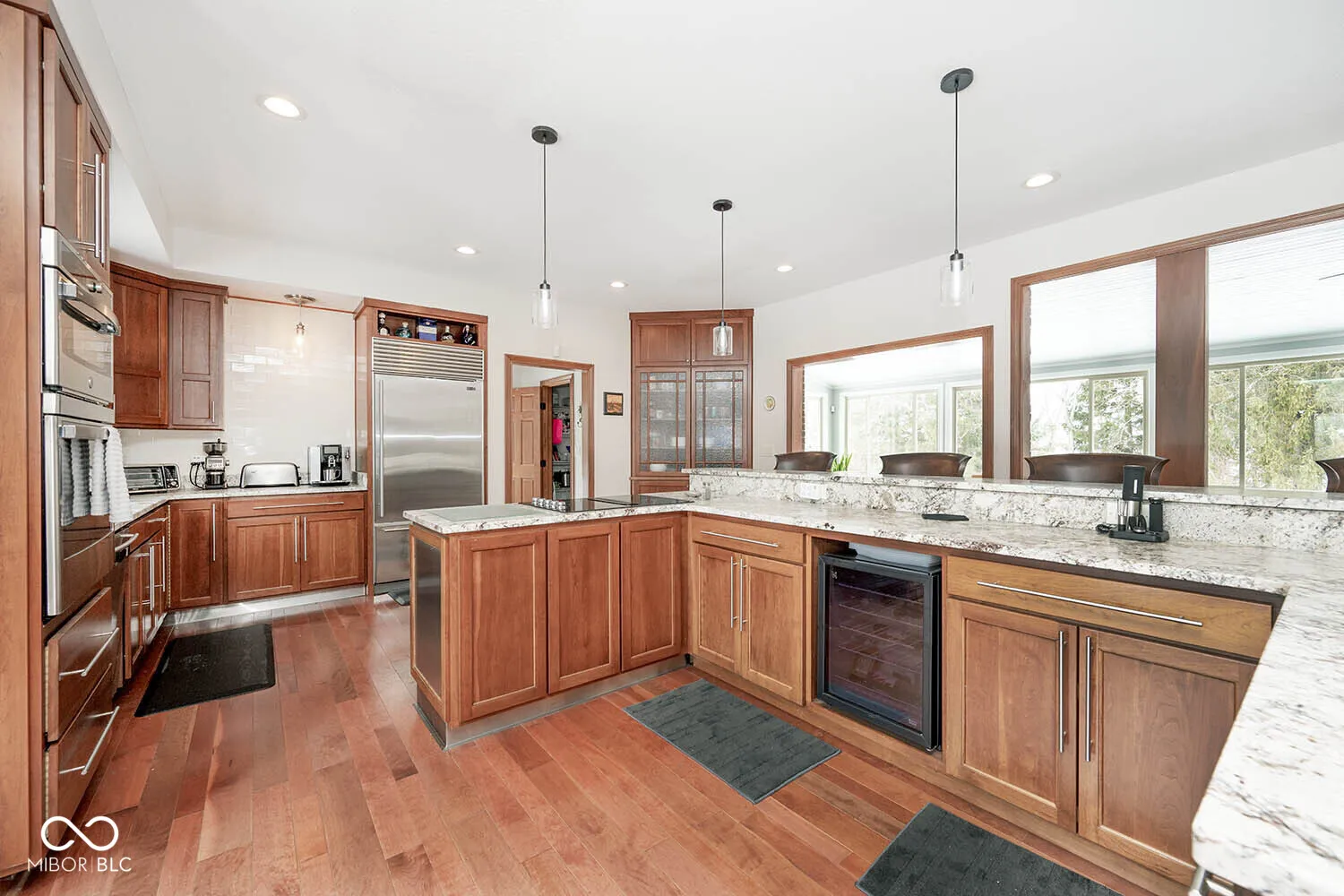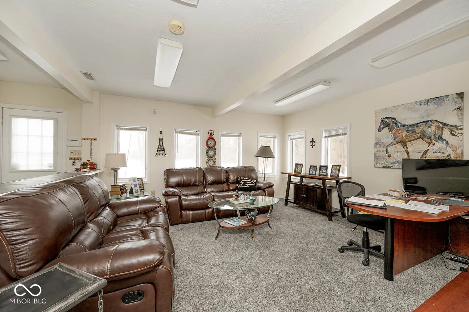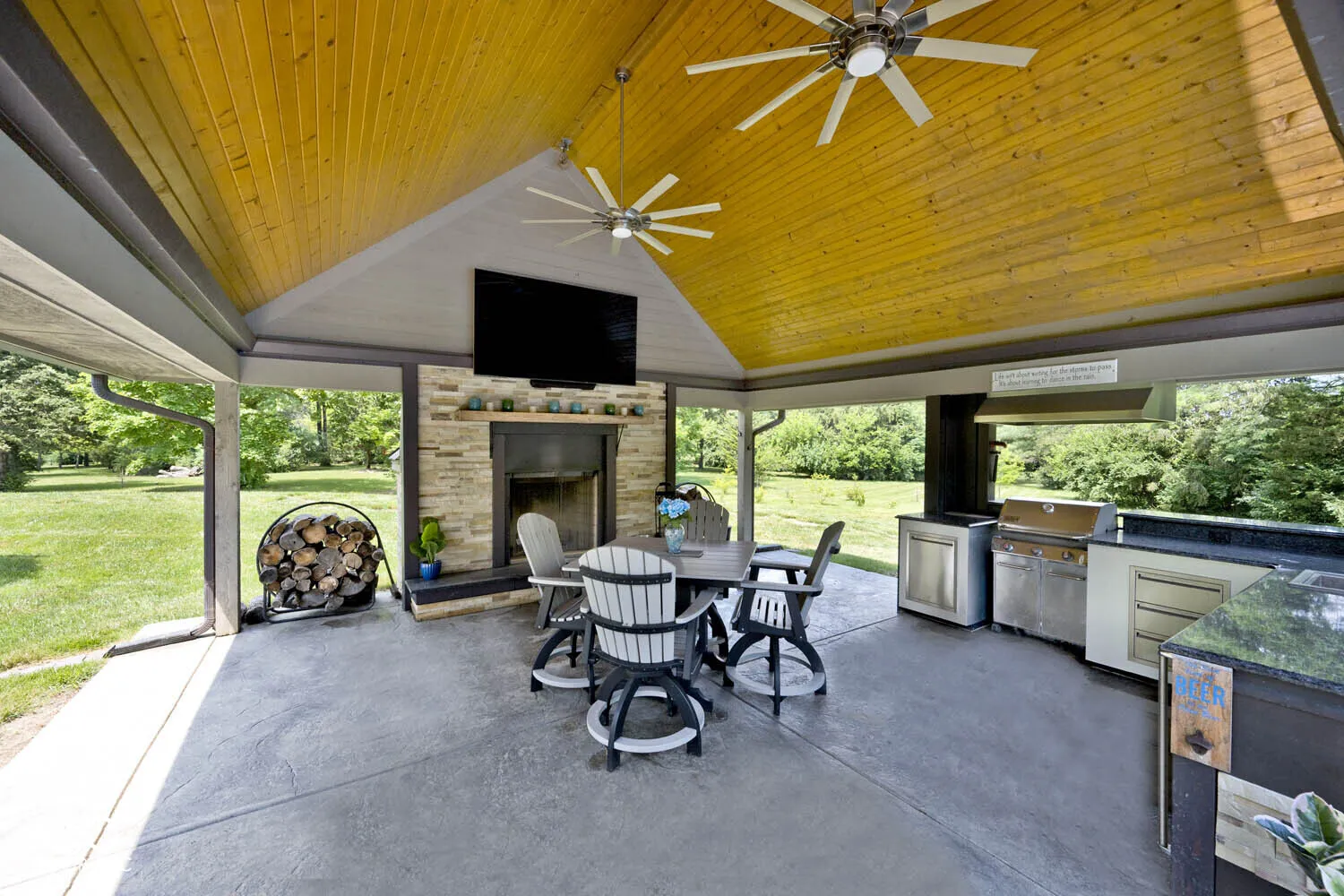 Serenity in the country on nearly 12 acres in New Palestine with no HOA. This beautiful home offers warmth and personality at every turn. This home features a dramatic two-story foyer and great room. The kitchen features quartz countertops, a large pantry and it opens up to inviting living areas designed for everyday living and hosting. Multiple gathering spaces throughout the home create the perfect setting for relaxing, socializing and play. Discover a luxurious primary suite offering a spa-style bath with a spacious walk-in shower creating an atmosphere of sophisticated comfort and personal sanctuary on the upper level. While upstairs you will find two additional bedrooms and versatile bonus room. The basement offers a dedicated exercise room and play room. The outdoor living spaces are absolutely unmatched featuring an in-ground pool with automatic cover. The large pavilion has an outdoor kitchen with a cozy fireplace. The multiple lounge areas capture the beauty of this private homesite. As you walk the property, you will find a man cave with full apartment, horse barn with stable and tack room and a horse pasture. The outbuildings provide indoor parking for your RV. This exceptional residence offers a lifestyle of unparalleled comfort and refined elegance.