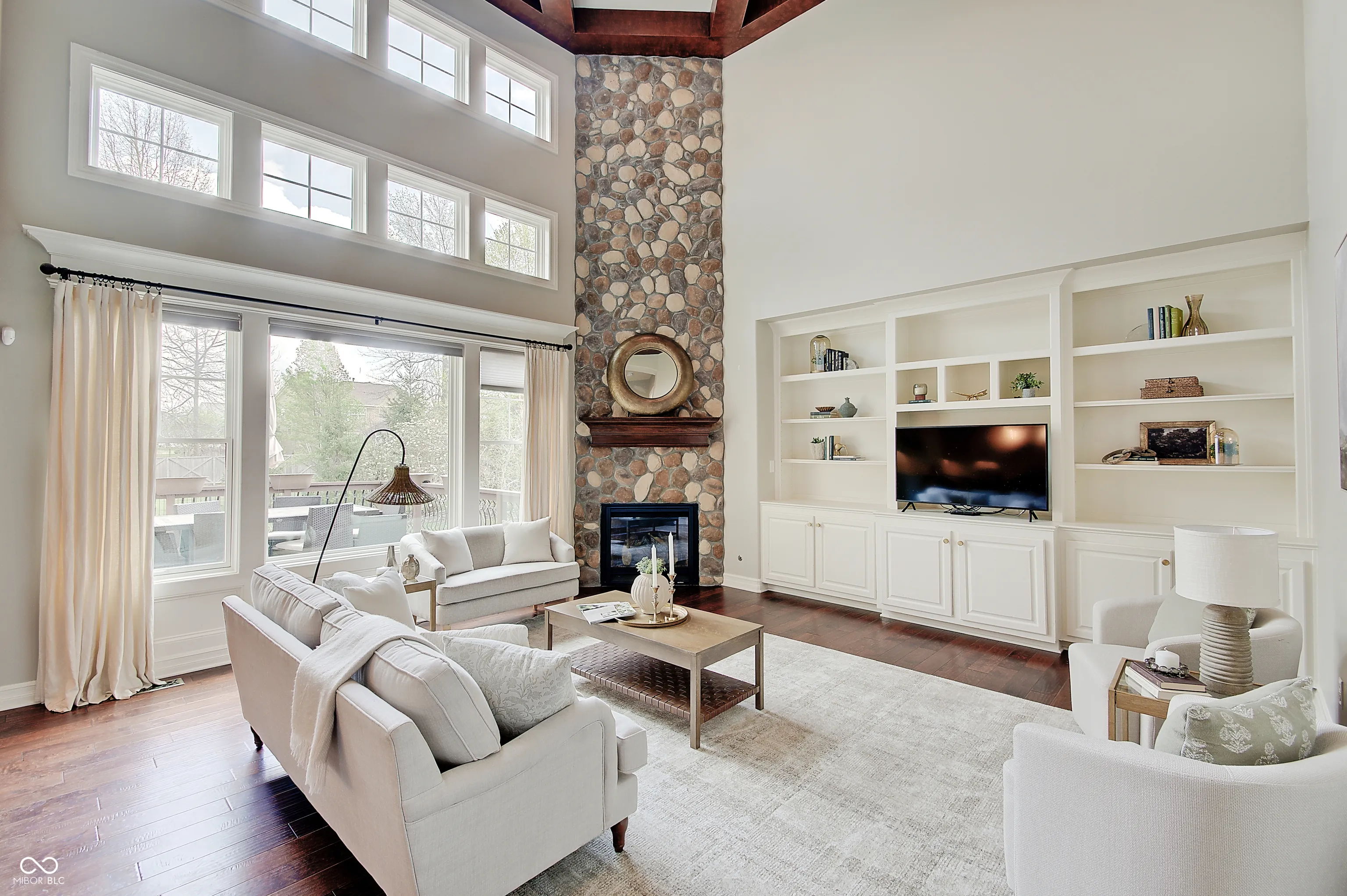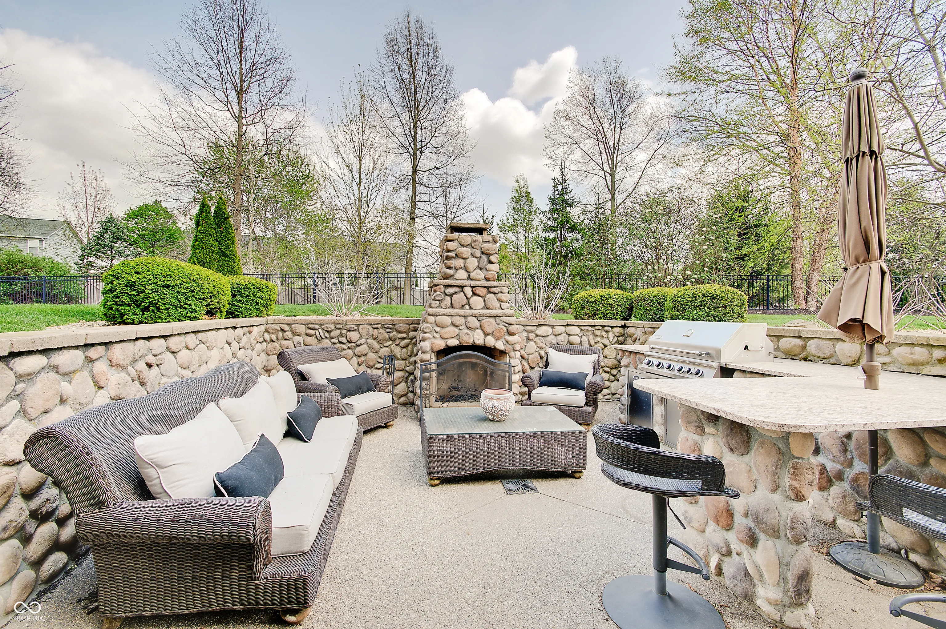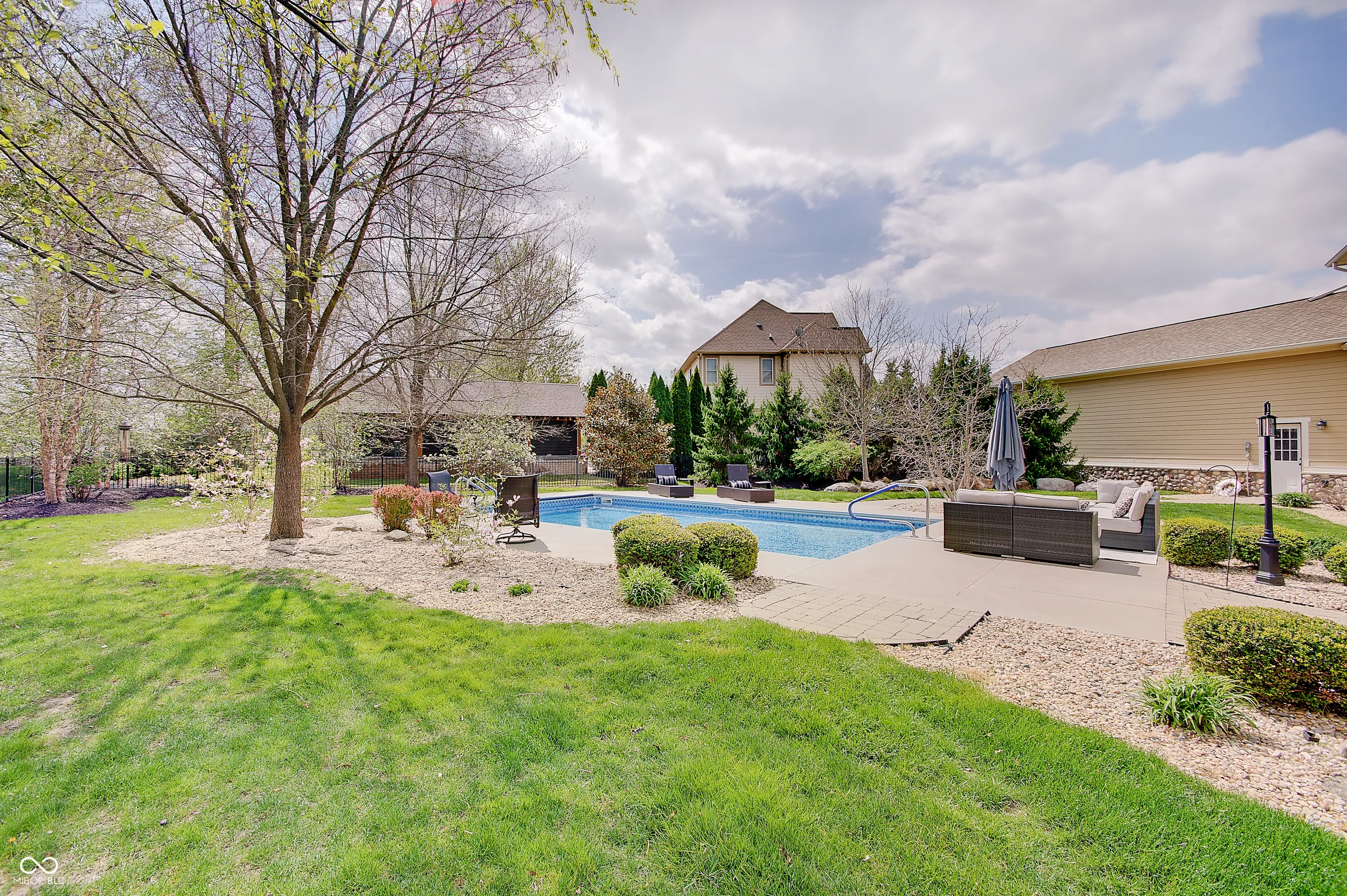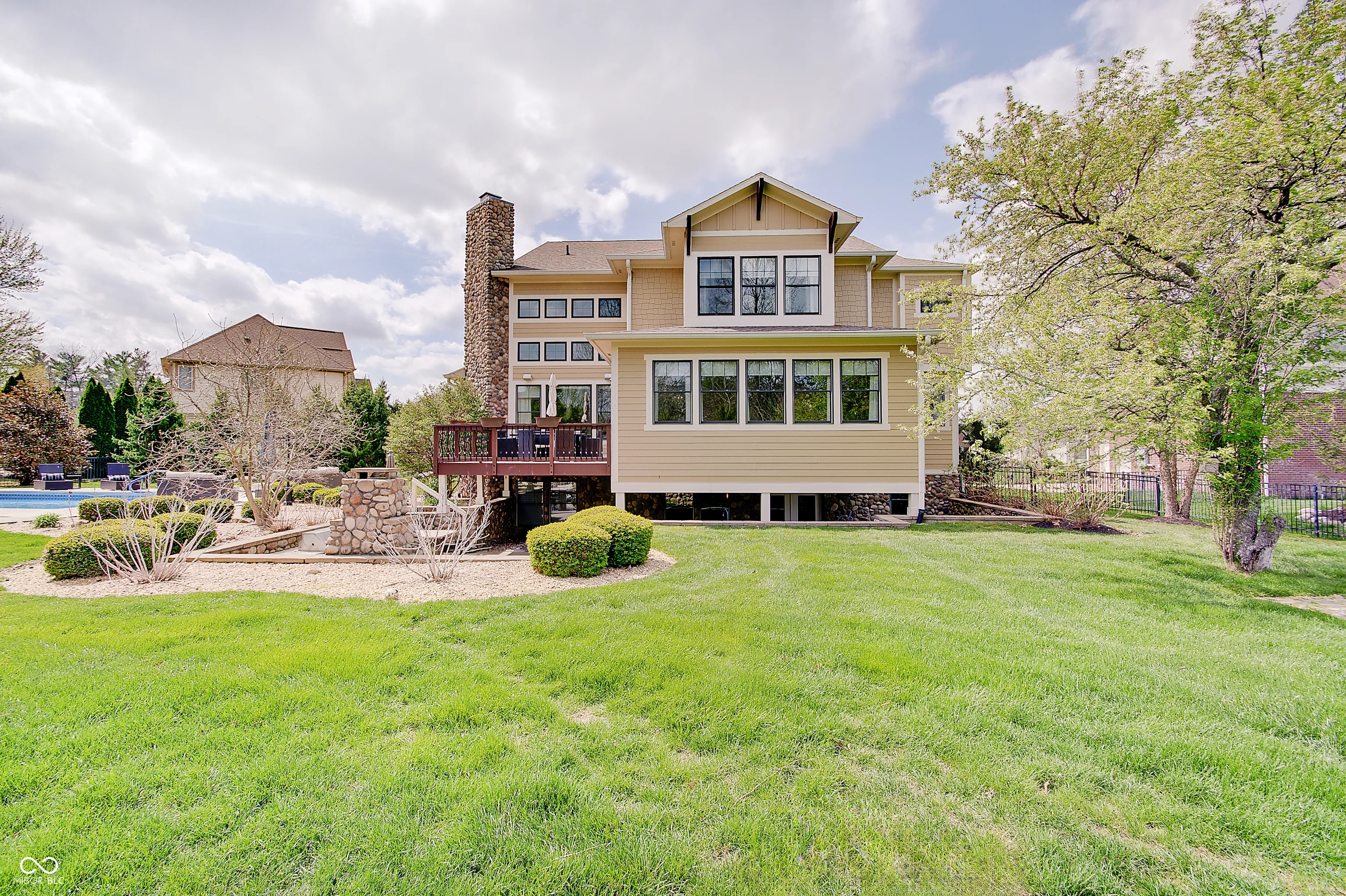 Located at 13271 E Letts LN in CARMEL, IN, USA, this single family residence offers an unparalleled opportunity for refined living. Built in 2011, this luxurious house, distinguished by its amazing design and crafted with top tier materials, remains in great condition, poised to elevate the everyday experience. The Living Room serves as a grand setting for both relaxation and social gatherings. It features a welcoming fireplace, complemented by a soaring high ceiling that creates an airy atmosphere. Built-in shelves offer elegant display possibilities, while the visual richness of a beamed ceiling and a sophisticated coffered ceiling adds architectural depth. The meticulous crown molding further enhances the room’s refined aesthetic. The heart of this luxurious home is undoubtedly its meticulously appointed Kitchen, with radiant flooring, designed for both culinary artistry and convivial engagement. It boasts a stylish backsplash, expansive stone countertops, and a large kitchen island that invites casual dining or preparation. A practical kitchen bar and a convenient kitchen peninsula extend the generous counter space. Equipped with a high-end range oven, a stovetop, and a double oven, this space accommodates elaborate cooking endeavors. The wall chimney range hood offers efficient ventilation, while a dedicated wine cooler keeps beverages perfectly chilled. Elegant shaker cabinets provide ample storage, all framed by sophisticated crown molding. The property’s five full bathrooms are designed as personal retreats, each featuring a spacious walk in shower and a tranquil jetted tub for ultimate relaxation. Beyond the meticulously designed interiors, this property extends to its luxurious outdoor gathering areas. Complete outdoor fireplace and grill, stunning pool and lovely outdoor furniture which remains with the home.