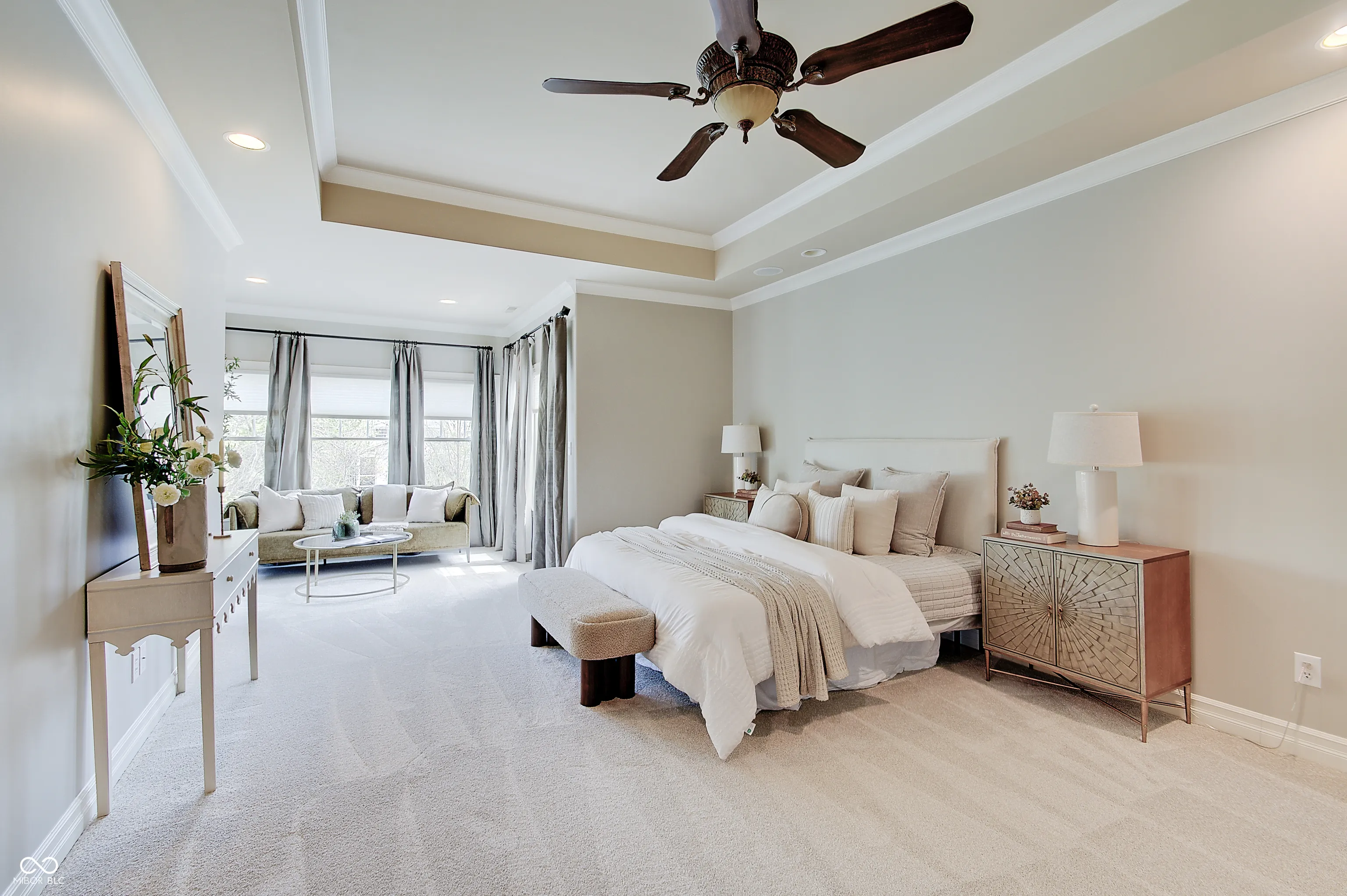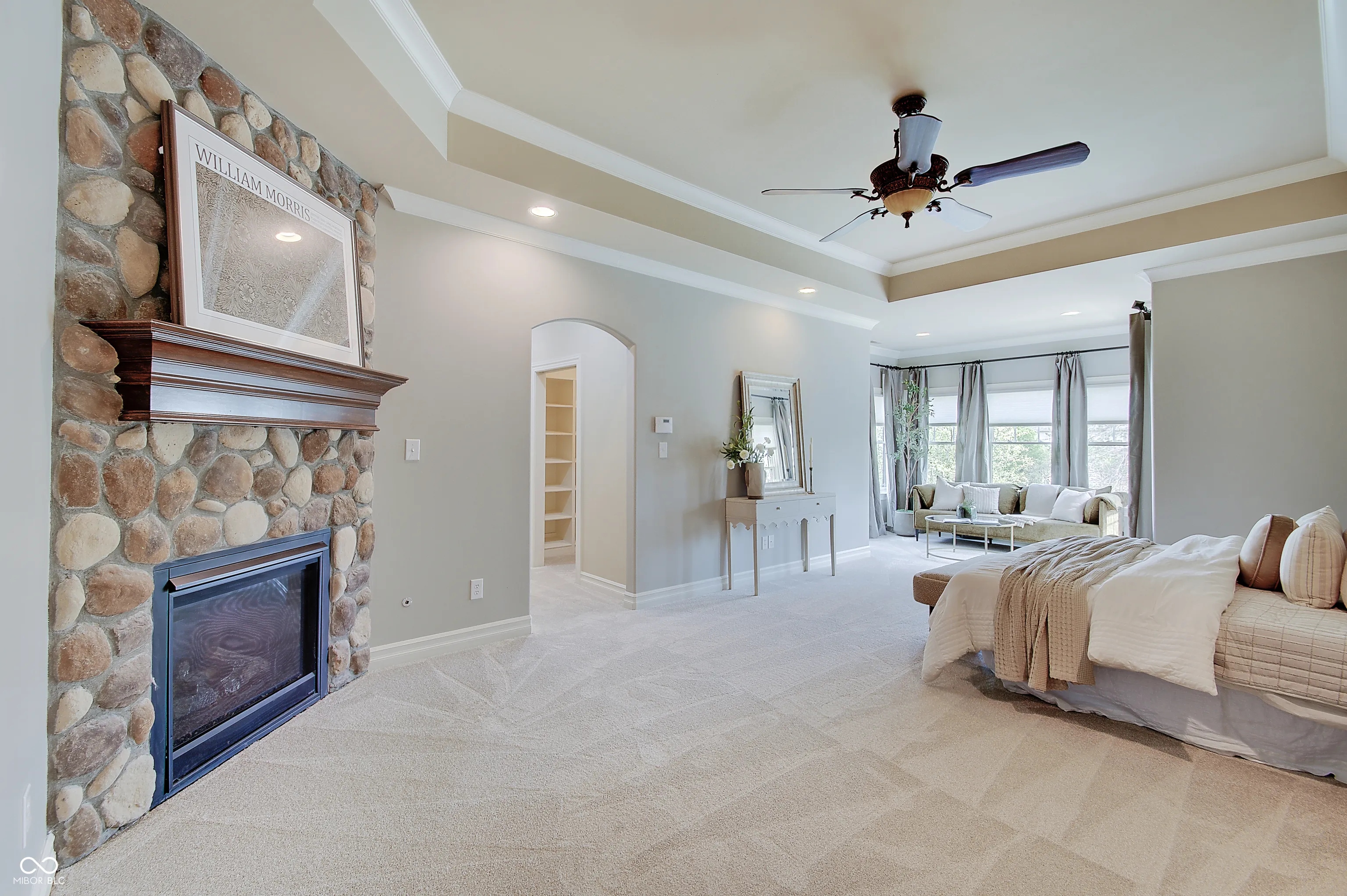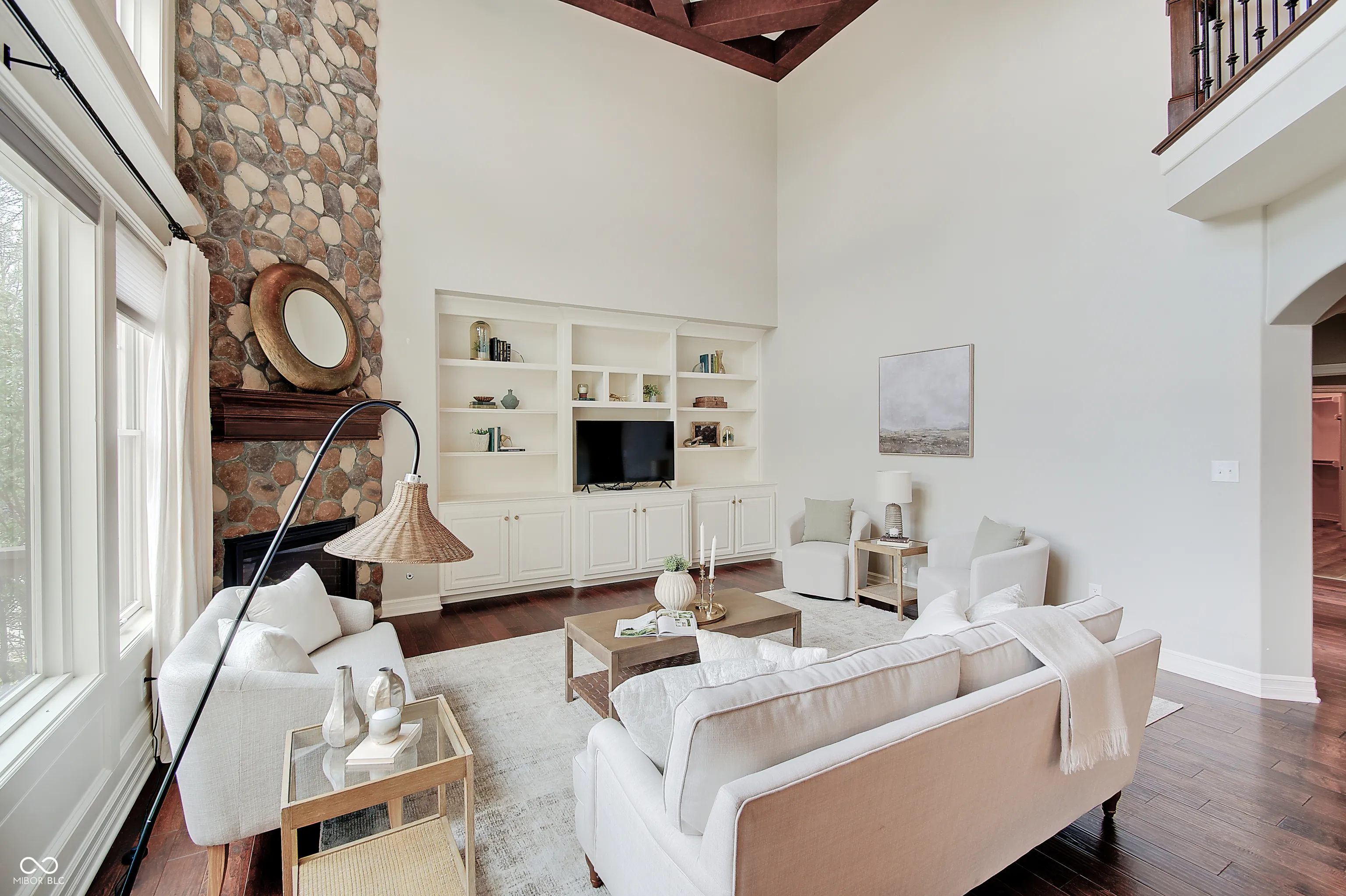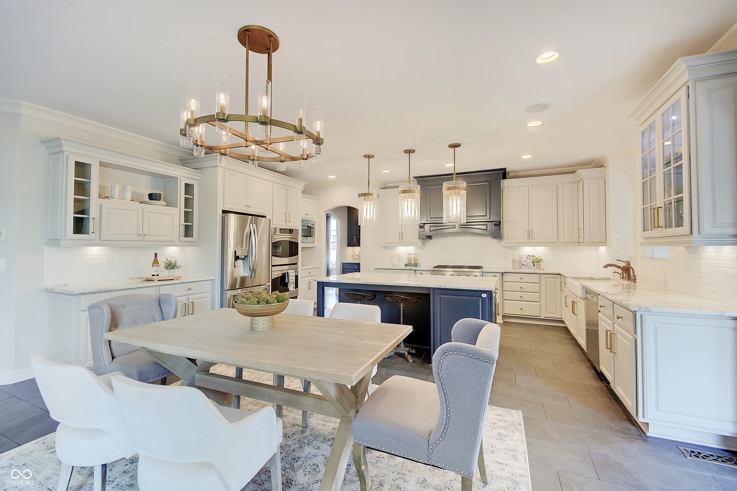 Located at 13271 E Letts LN in CARMEL, IN, USA, this single family residence offers an unparalleled opportunity for refined living. Built in 2011, this luxurious house, distinguished by its amazing design and crafted with top tier materials, remains in great condition, poised to elevate the everyday experience. The Living Room serves as a grand setting for both relaxation and social gatherings. It features a welcoming fireplace, complemented by a soaring high ceiling that creates an airy atmosphere. Built-in shelves offer elegant display possibilities, while the visual richness of a beamed ceiling and a sophisticated coffered ceiling adds architectural depth. The meticulous crown molding further enhances the room’s refined aesthetic. The heart of this luxurious home is undoubtedly its meticulously appointed Kitchen, with radiant flooring, designed for both culinary artistry and convivial engagement. It boasts a stylish backsplash, expansive stone countertops, and a large kitchen island that invites casual dining or preparation. A practical kitchen bar and a convenient kitchen peninsula extend the generous counter space. Equipped with a high-end range oven, a stovetop, and a double oven, this space accommodates elaborate cooking endeavors. The wall chimney range hood offers efficient ventilation, while a dedicated wine cooler keeps beverages perfectly chilled. Elegant shaker cabinets provide ample storage, all framed by sophisticated crown molding. The property’s five full bathrooms are designed as personal retreats, each featuring a spacious walk in shower and a tranquil jetted tub for ultimate relaxation. Beyond the meticulously designed interiors, this property extends to its luxurious outdoor gathering areas. Complete outdoor fireplace and grill, stunning pool and lovely outdoor furniture which remains with the home.