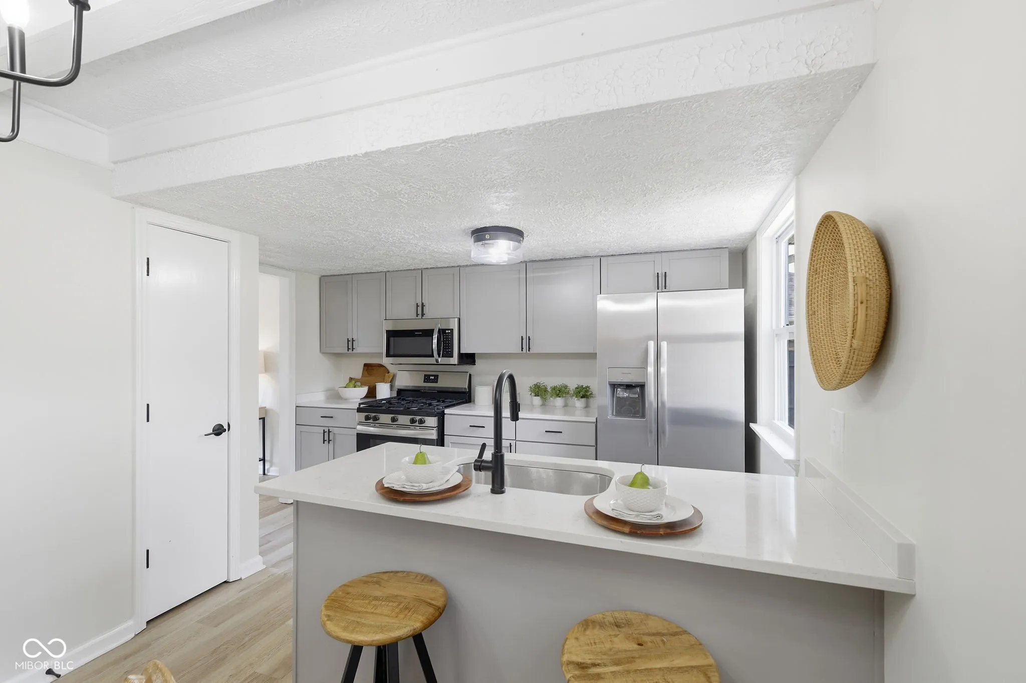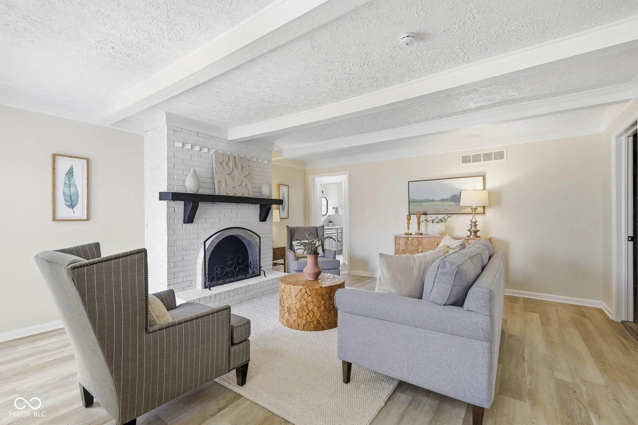 Welcome to 2204 Walnut Way where you can enjoy lake life in a beautifully renovated, 3 bed, 2 bath ranch that is just a stone’s throw from Morse Reservoir and the neighborhood pool, clubhouse, pickleball, playground & beach! This home has modern updates throughout, plus a new HVAC & new windows! The brand-new kitchen has new grey Shaker cabinets, new stainless steel appliances, new sink/fixtures, sleek quartz countertops, a separate pantry and a kitchen peninsula with bar seating makes it the heart of the home by integrating it with the dining area and family room. The layout of the 1600 SF is just right- cozy but open- with each area purposefully defined while maintaining a seamless flow. The neutral luxury vinyl plank flooring, fresh neutral paint and modern black fixtures throughout further enhances the cohesiveness of the design. Stunning is the only word for the family room, which features a striking stone fireplace and charming wooden ceiling beams that add character and coziness. The larger second living area has more of a formal vibe & plenty of space to spread out! The spacious primary suite is your own private oasis with a fully renovated bathroom and walk-in closet. The other two bedrooms share a full bathroom in between them, and one of the bedrooms has double closets! Both bathrooms have tiled showers, new vanities, new toilets, new fixtures, new mirrors and lighting. Whether you’re enjoying your morning coffee or unwinding in the evening, the large mediterranean-style stone front porch is an incredible space that feels like an outdoor living room and again adds to the lake life vibe of this home and neighborhood. Here, you can have a lifestyle that feels like a year-round getaway between the many amenities of this neighborhood & having direct access to Morse Reservoir and its beach just a short walk away. This is more than a home-it’s a place to live, relax and connect.