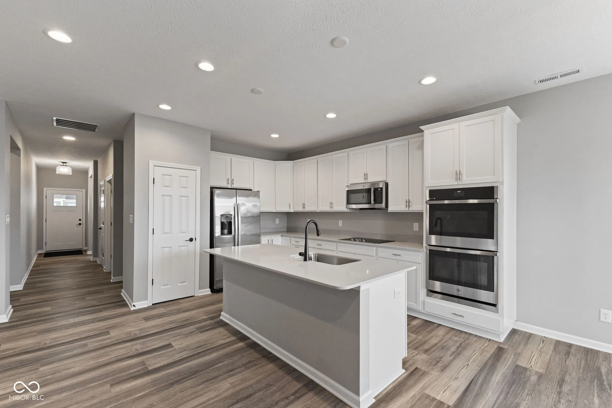 This 1,516 sq. ft., 2-bedroom, 2-bath villa built in 2023 offers the rare opportunity to own a like-new home without the wait of new construction in Franklin Twp. The seller hates to let it go, but a job relocation makes this beautifully maintained property available-still showing and living like brand new. Designed with an open-concept floor plan, the gourmet kitchen is a true centerpiece, featuring white cabinets with crown molding, quartz countertops, and stainless steel appliances, including a built-in double oven. The kitchen flows seamlessly into the breakfast area and spacious family room, where an electric fireplace provides both ambiance and supplemental heat-perfect for cozy evenings or entertaining guests. The split-bedroom layout offers privacy and functionality. The primary suite includes a 5-foot tiled shower, double Pulman-height vanity, and a large walk-in closet with direct access to the laundry room, adding everyday convenience. A second bedroom and full bath are ideal for guests, a home office, or flexible living space. Additional highlights include a 20×20 garage, Bryant high-efficiency gas furnace, and the home is pre-plumbed for a water softener. Outdoor living is just as inviting with a 13×12 covered patio overlooking a peaceful pond, plus a covered front porch for relaxing mornings or evenings. The community offers low-maintenance living, with a $680 annual neighborhood fee and a $155 monthly HOA that covers exterior mowing, trimming, and snow removal, allowing you to enjoy the home without the upkeep.