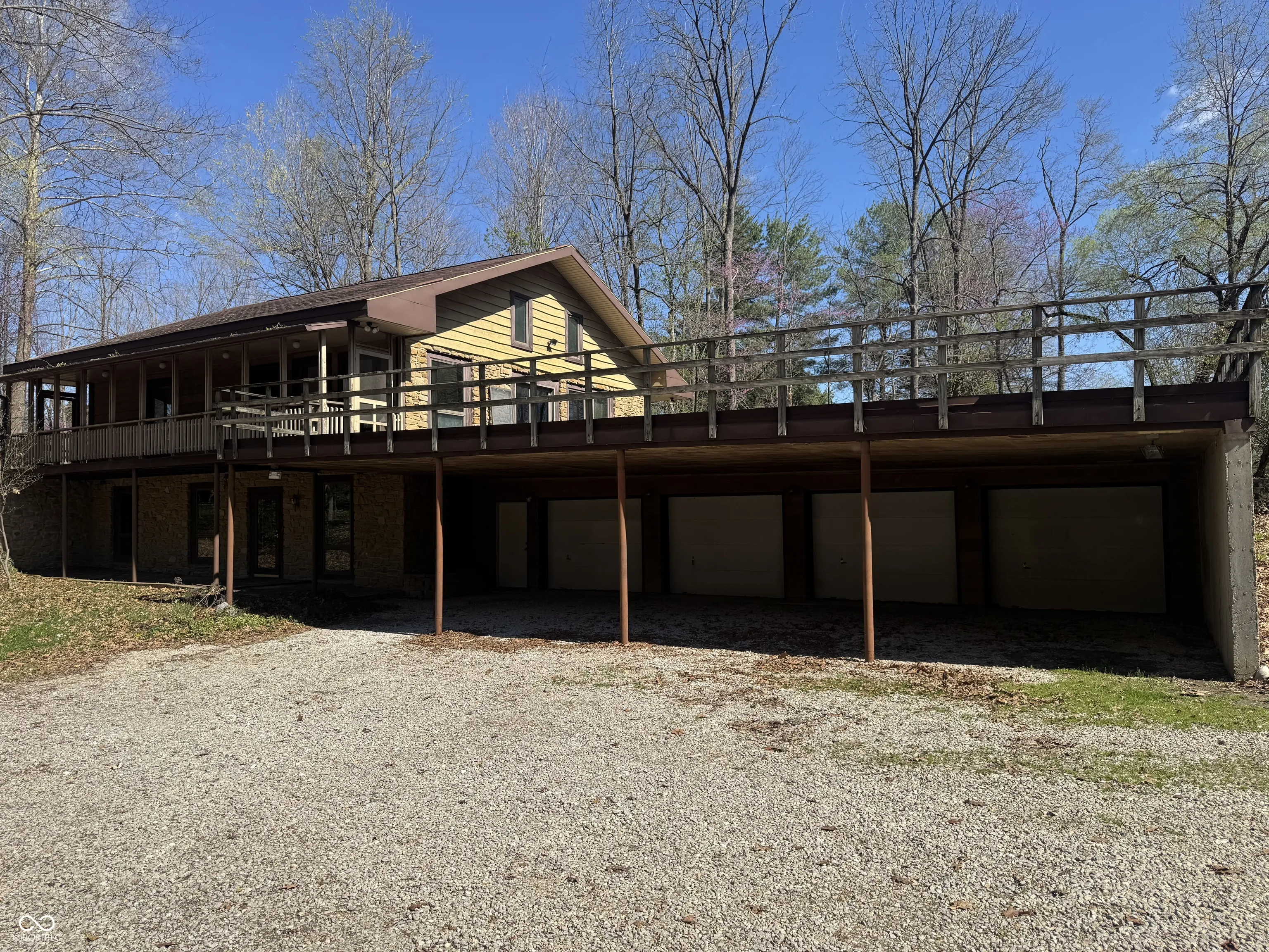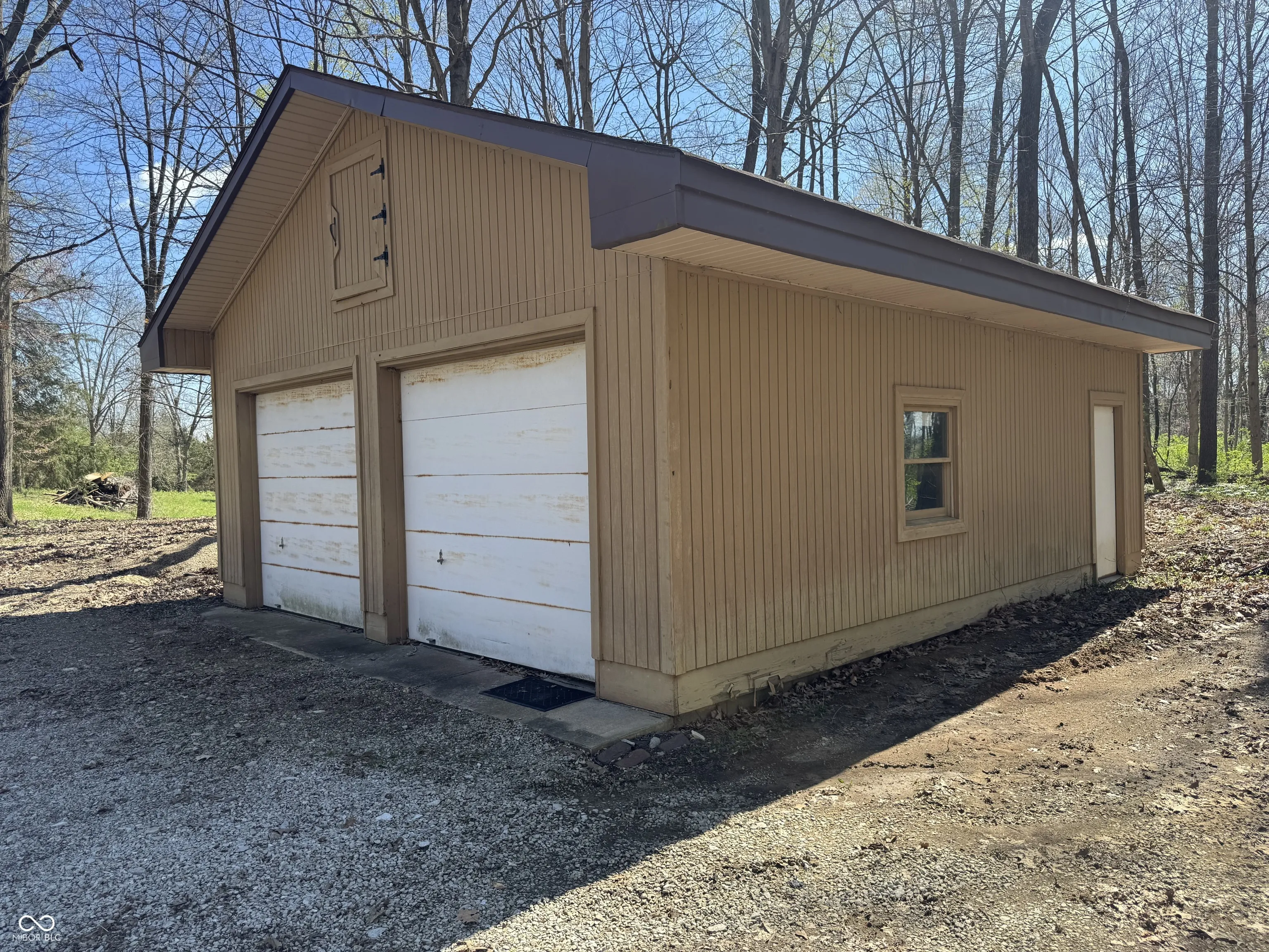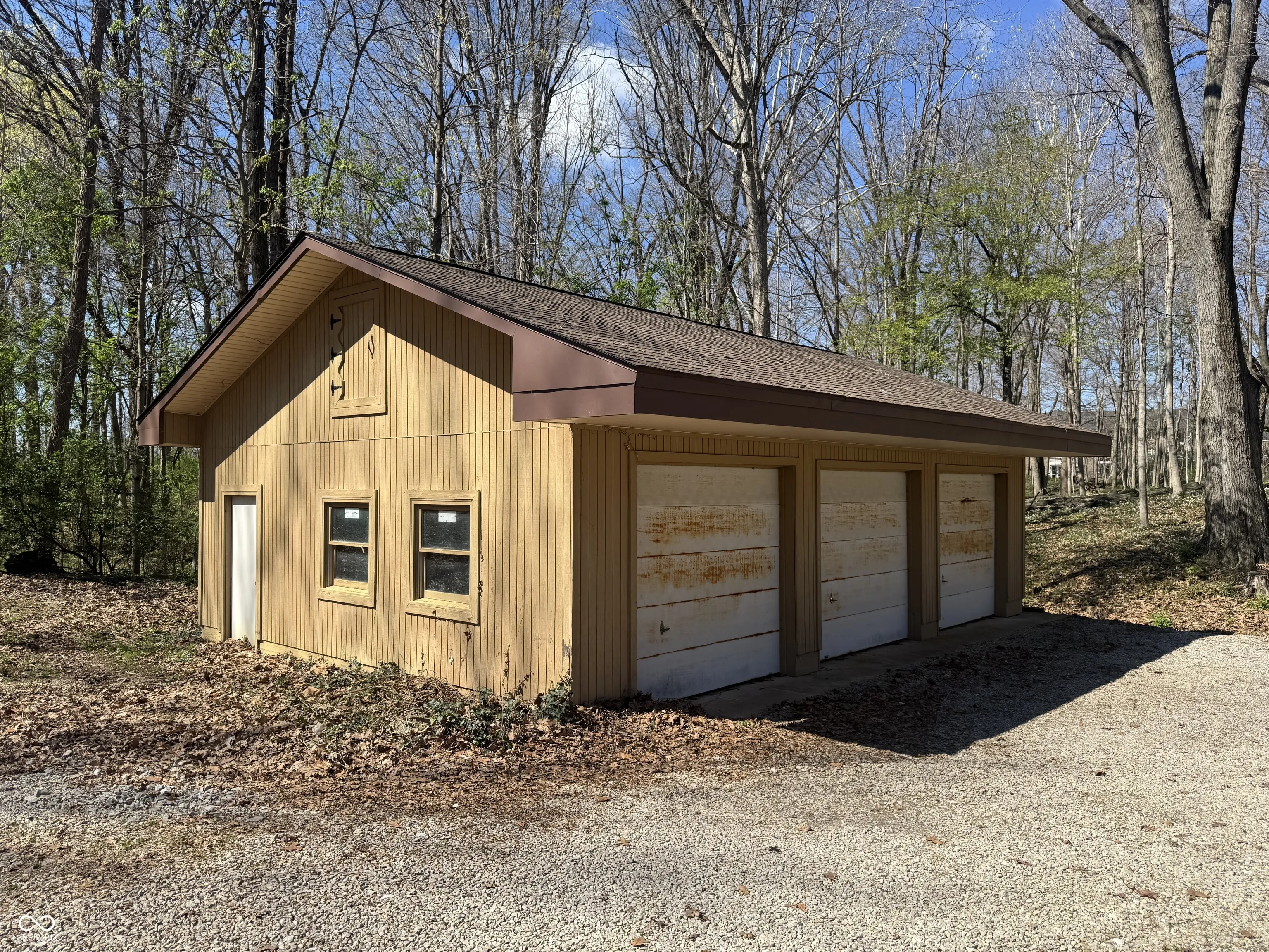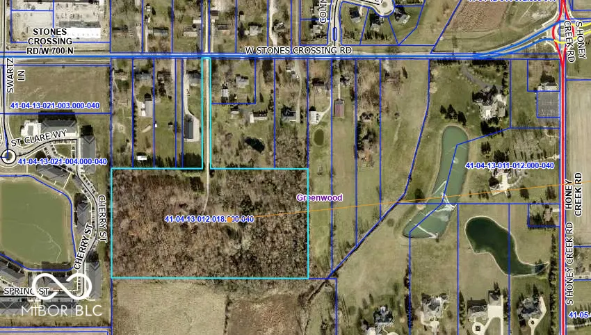 Great Opportunity with this 4 Bedroom 3 Full Bath on 19 wooded Acres in the Heart of Center Grove on South Side of Stones Crossing. Home Has Large 4 Car garage attached + 2 Car Detached Garage + 3 Car Detached Garage. Small Pond and Mature woods. Would be a great option for someone building home or has storage needs with business, extra cars etc.
