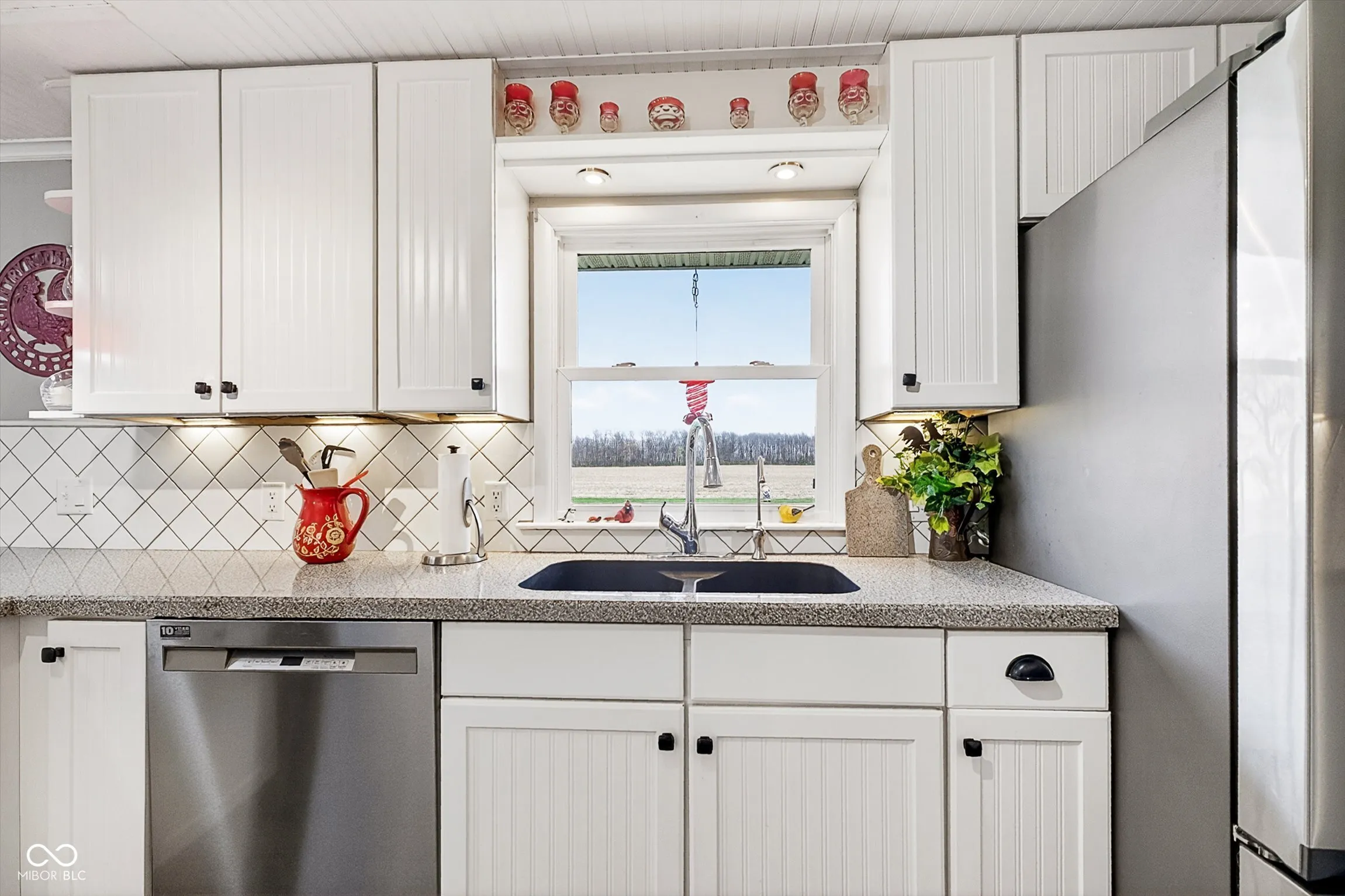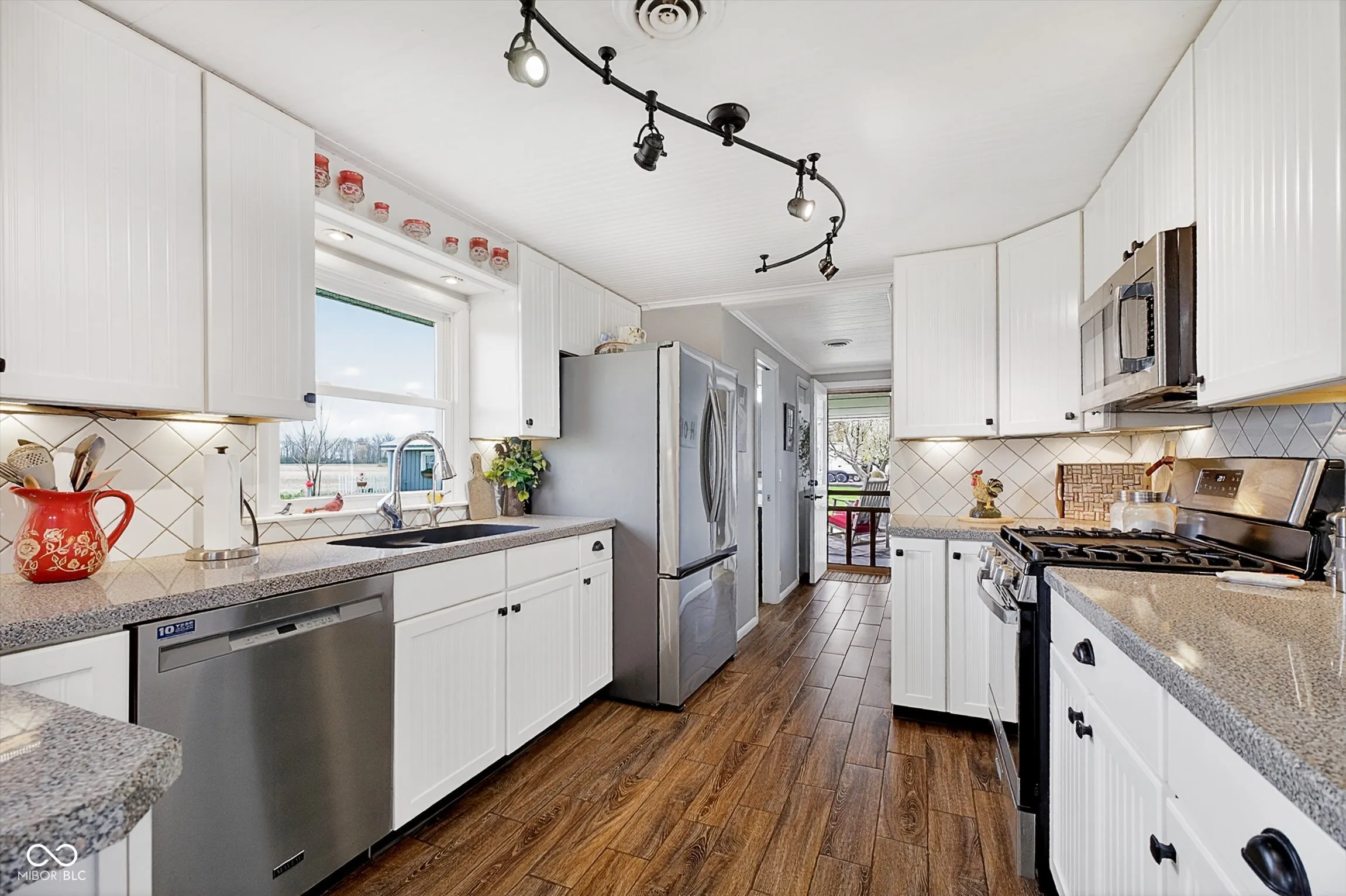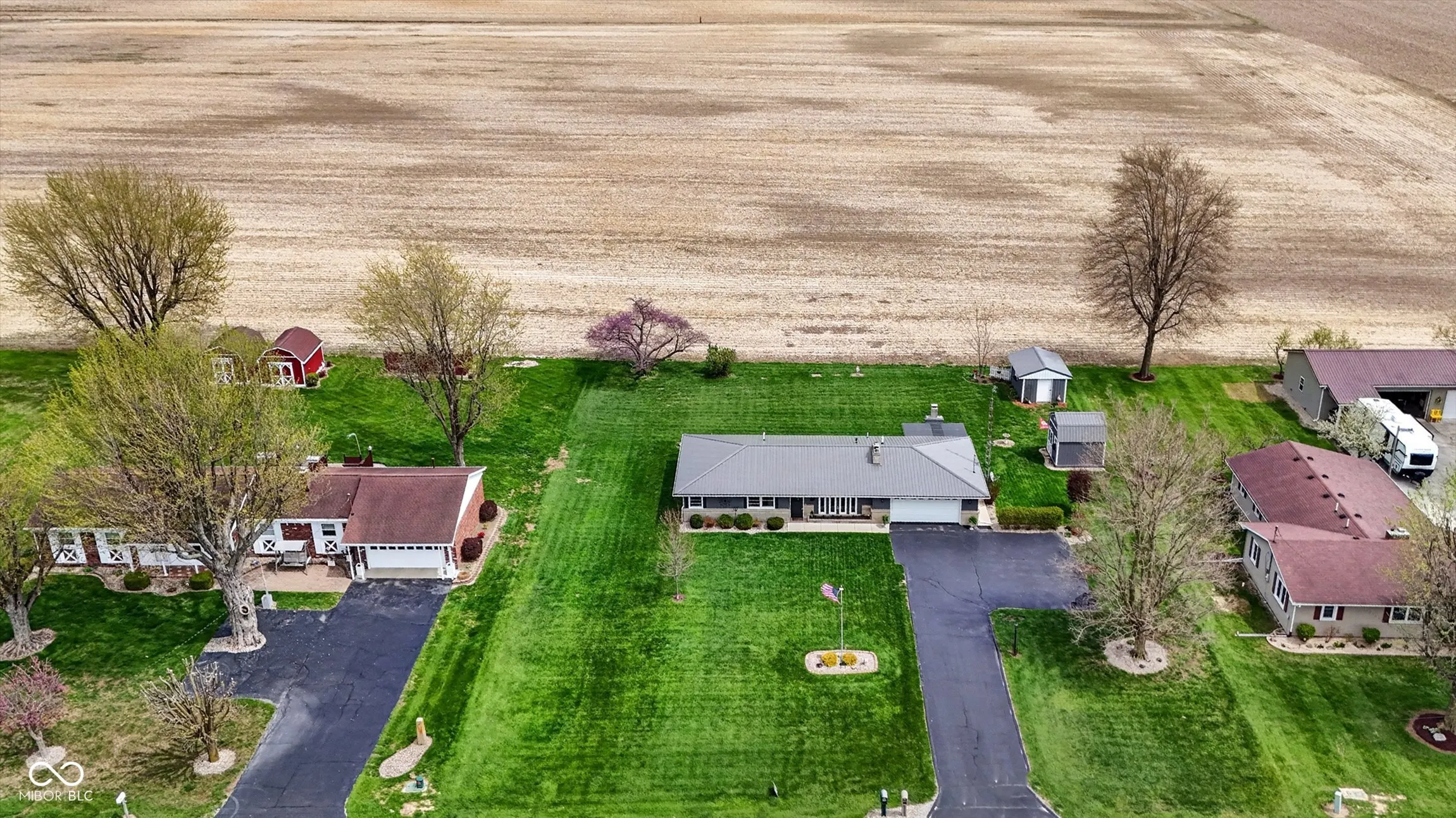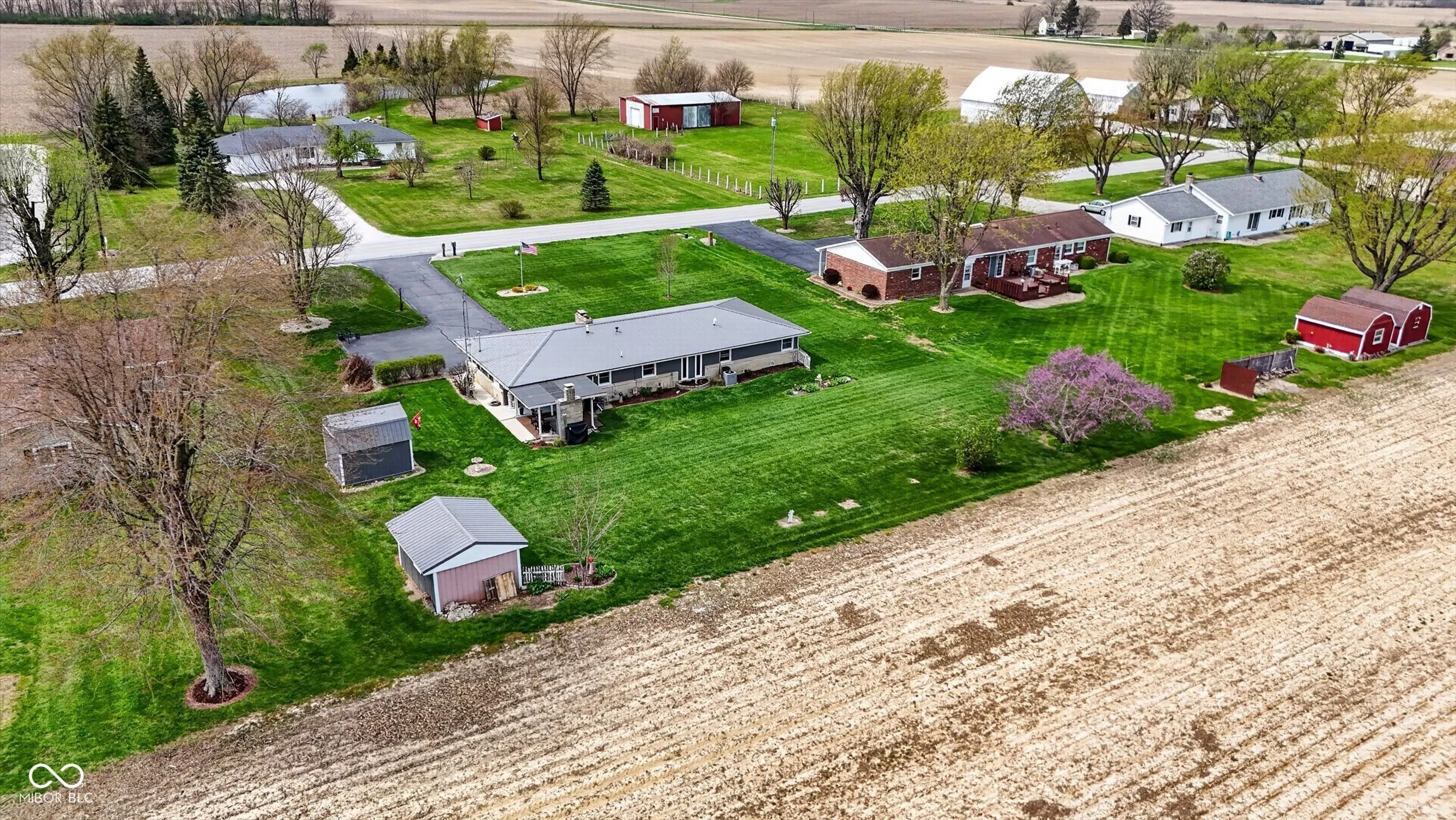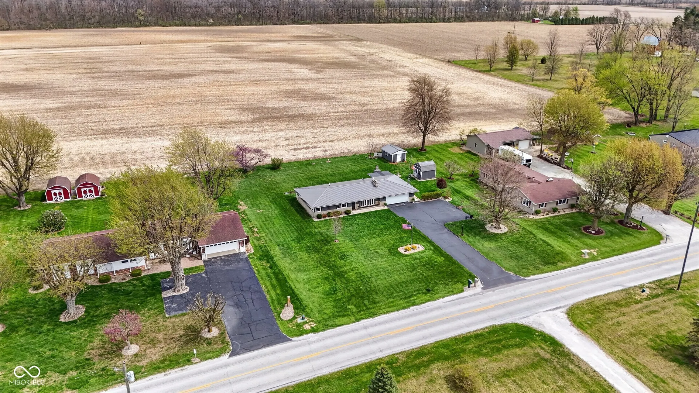Beautiful, updated home on a large rural lot in Fairmount, IN (Grant County), just minutes from Madison-Grant Schools. Exterior updates include cement board siding, metal roof, and newer windows for low-maintenance living. Inside, you’ll find newer flooring, new tankless radiant boiler floor heat with hot water system, and new central A/C. Even a new septic system was installed in 2017. The kitchen has been updated with stainless steel appliances, a breakfast bar, pantry, and space for everyday dining. The living room centers around a cozy gas log fireplace. Enjoy 3 Bedrooms with cedar-lined closets for added storage. The full bath includes a double vanity, jetted tub/shower, and washer/dryer. Out back, the covered porch with stone fireplace offers a great place to relax, overlooking a landscaped yard. Two large sheds provide flexible space for storage, hobbies, or a workshop and you will love the oversized 2 car garage complete with heated floors!