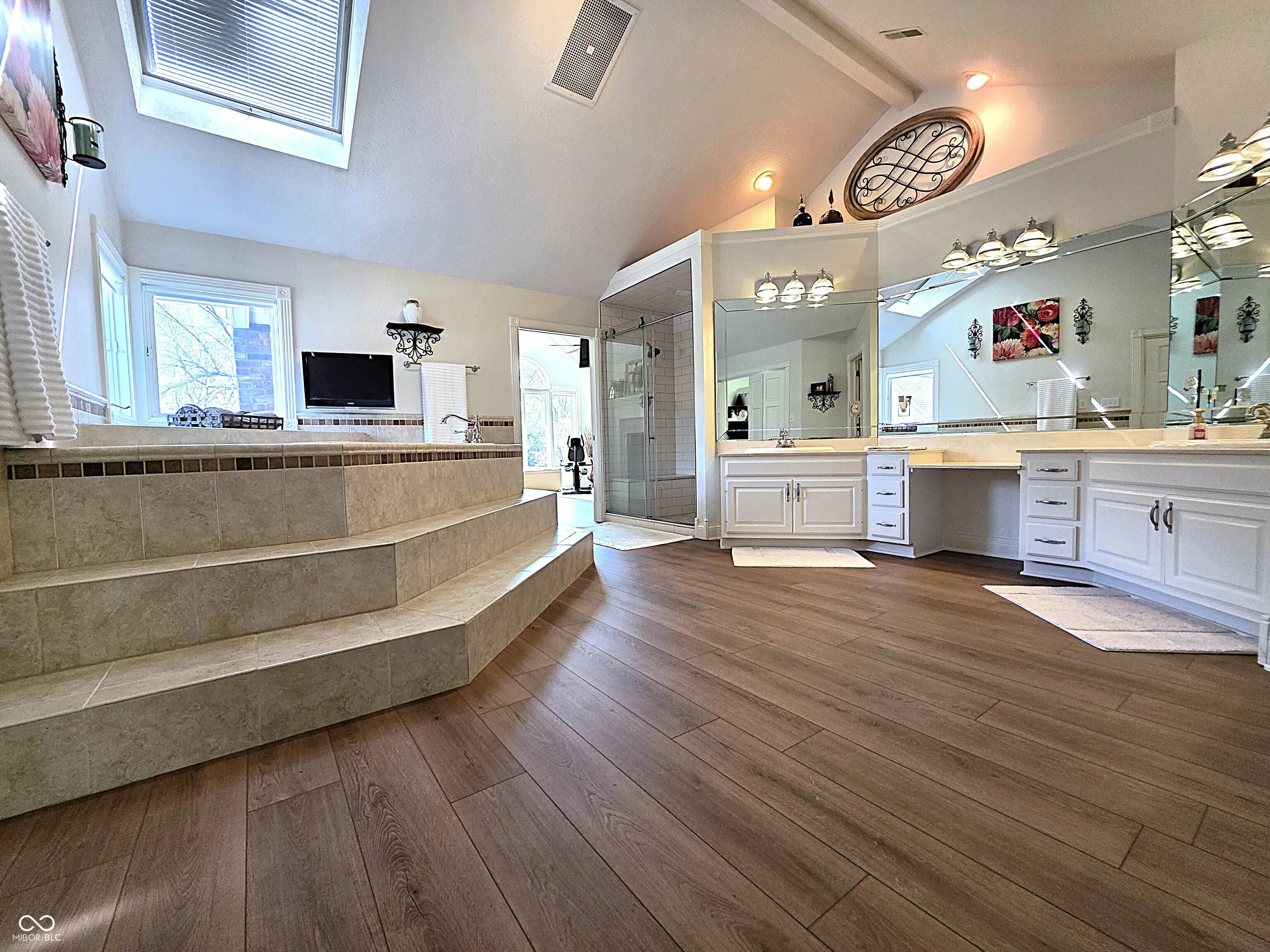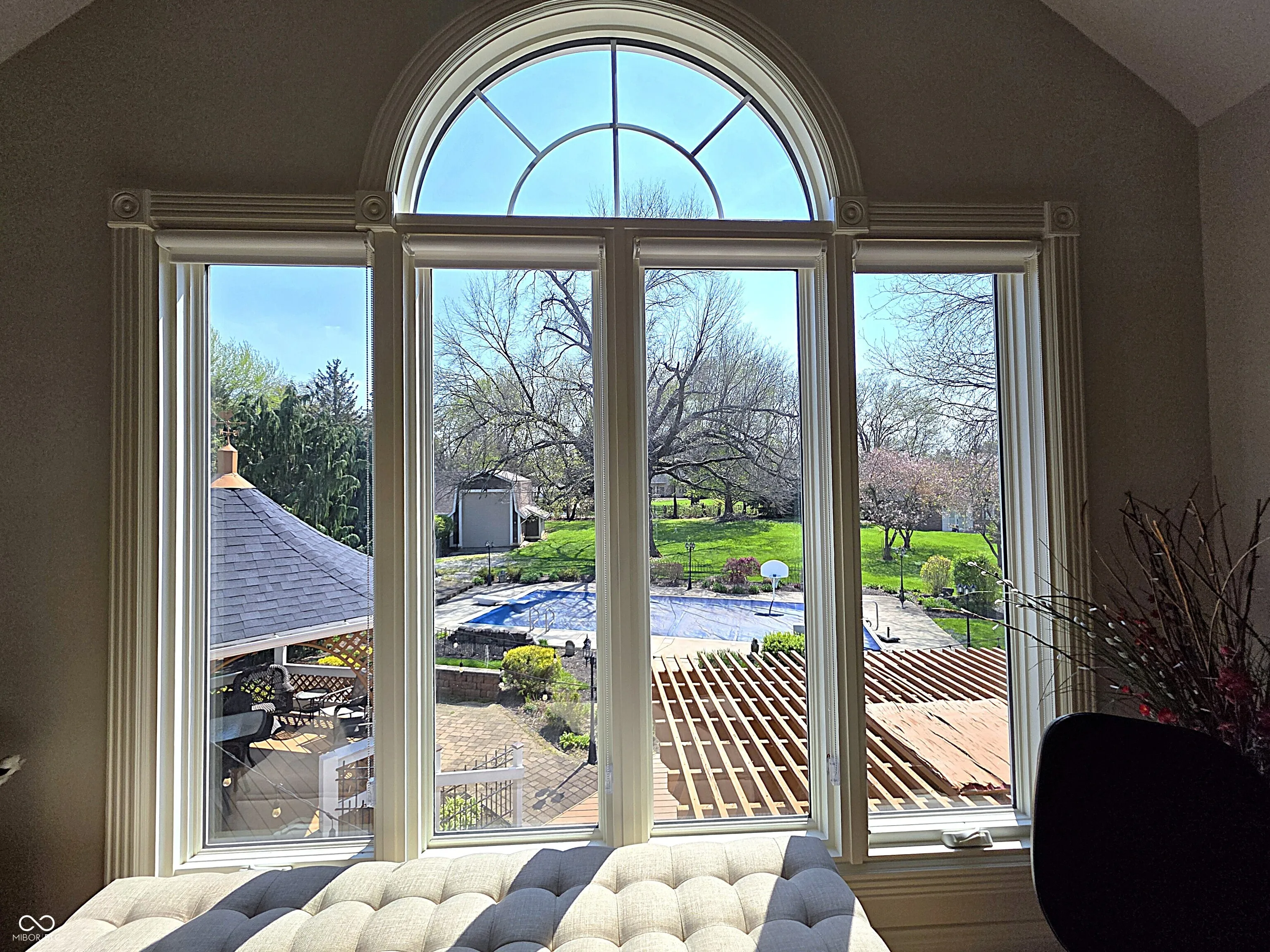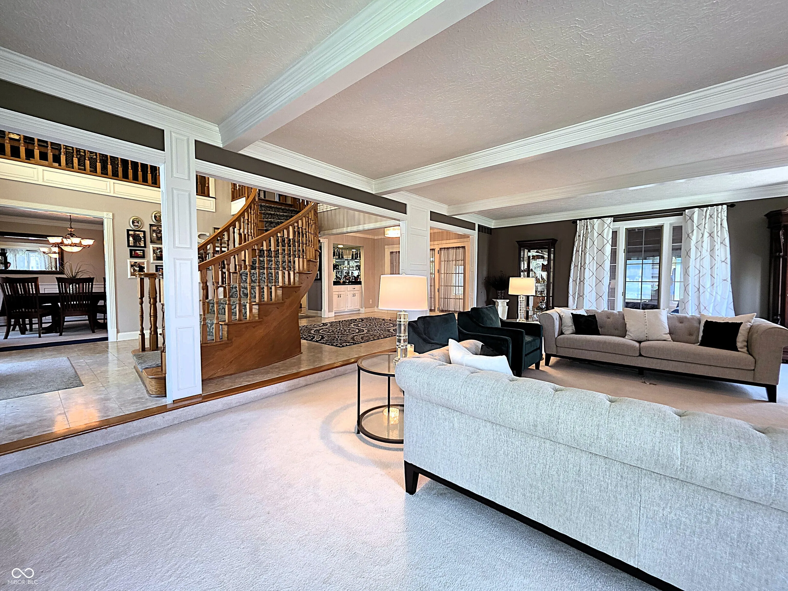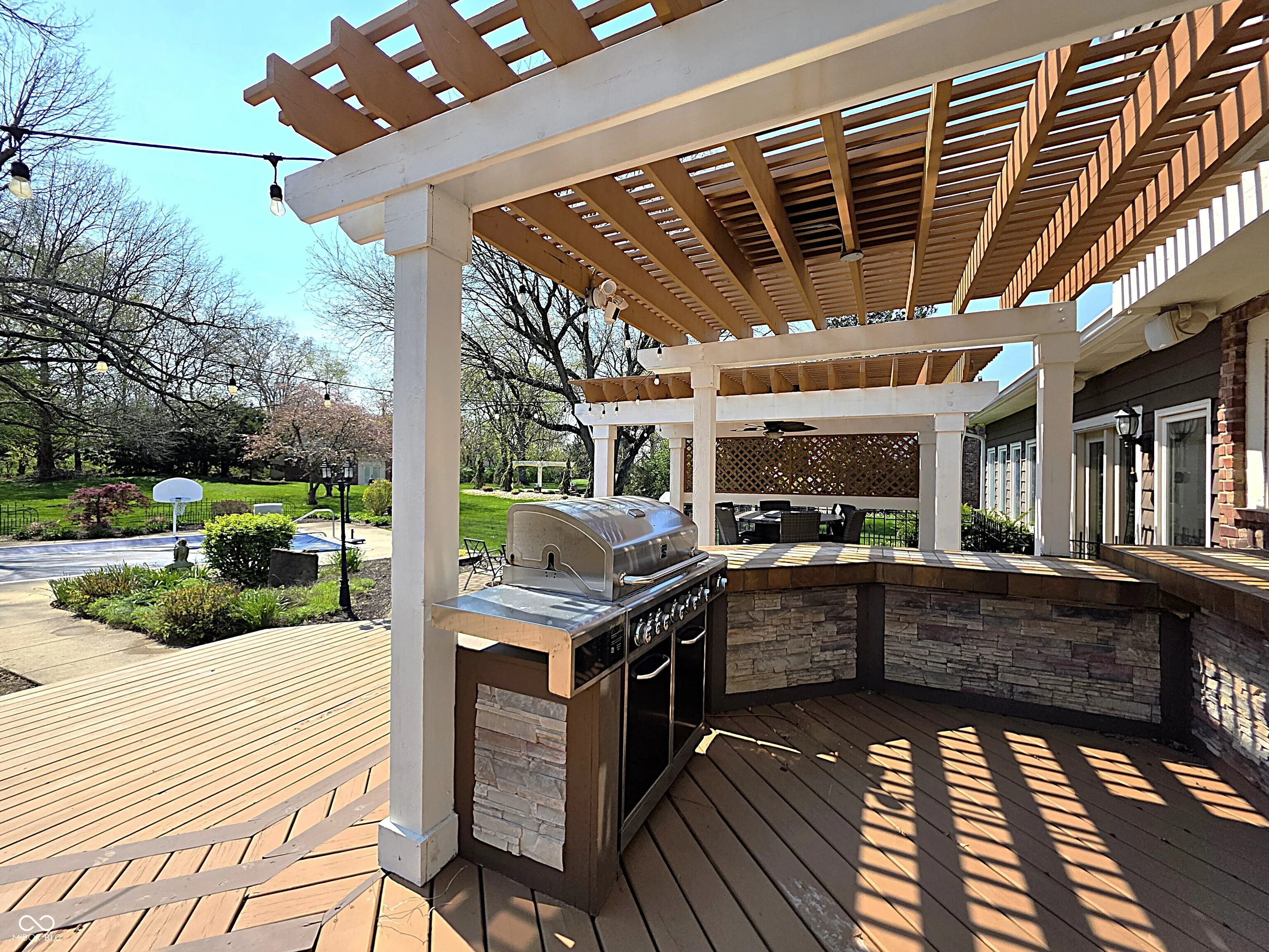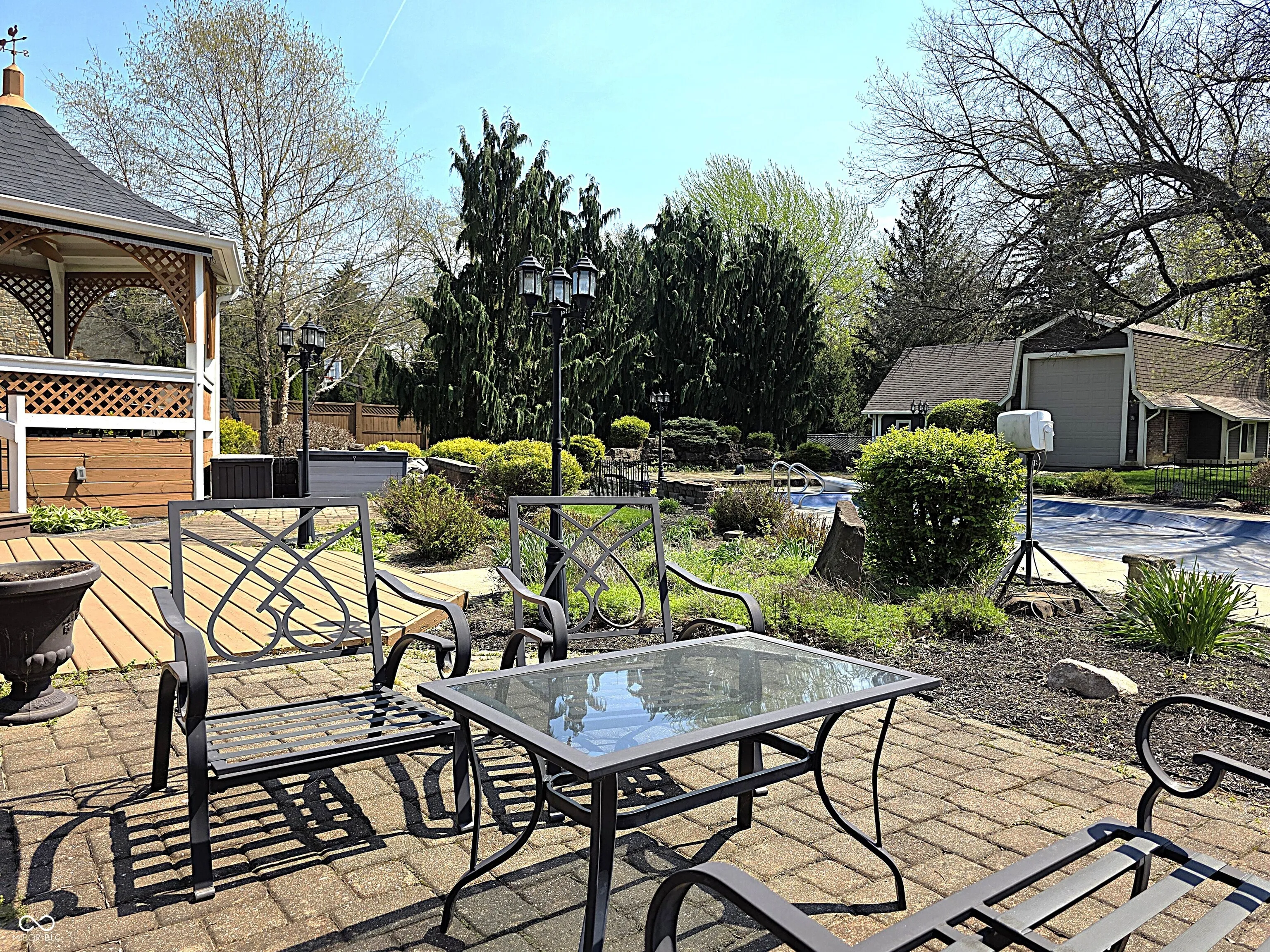 Once in a lifetime LUXURY estate on 1.7 manicured acres just moments from downtown Indy. A private gated entrance welcomes you down the long tree-lined driveway featuring large fountain. Step inside the grand entryway and fall in love. Enjoy the finely detailed circular staircase, palatial formal living room w/cozy fireplace & tall windows, open breakfast room & elegant dining room, state-of-the-art kitchen w/center island, stainless appliances and gorgeous granite counters, family room w/floor-to-ceiling bookshelves, 2 laundry rooms for convenience, dramatically proportioned sunroom perfect for year around entertaining, sumptuous primary suite w/view, fireplace, windowed walk-in closet, en-suite bath w/triple mirrors, full shower, soaking tub and music room off to the side, big bedrooms, sun-drenched office and finished basement w/additional bedroom, game room, wet bar and rec room. Tranquil backyard w/in-ground pool, multi-level deck system featuring outdoor kitchen area w/gas grill, gazebo, stoned patio and covered sitting area. Plus, separate guest house and 33×18 garage perfect for all of your storage and toys. This 5978 sqft residence offers the ultimate in living for those unwilling to compromise.