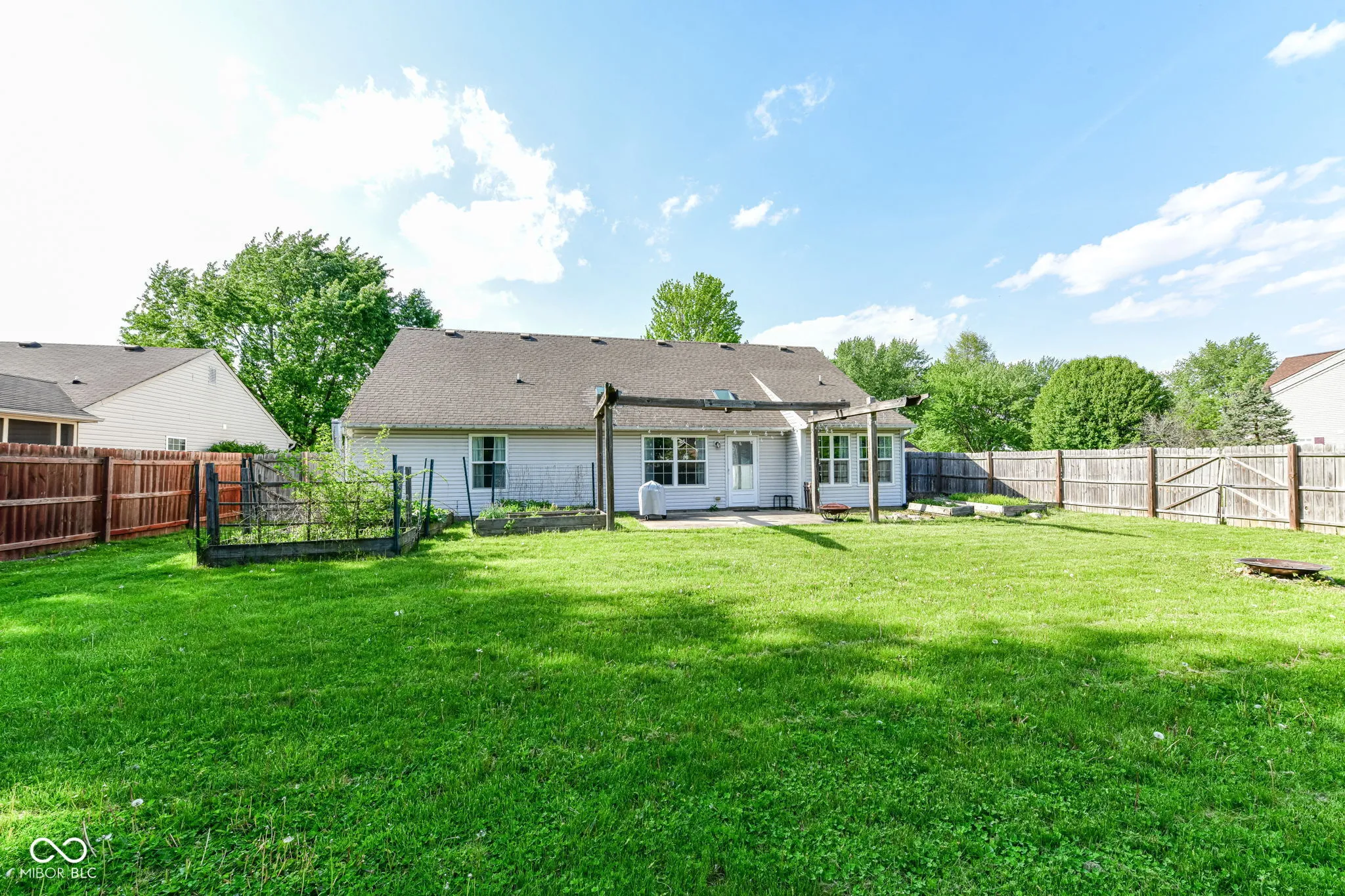 For more information please reach out to the listing agent directly if you are not currently represented by an agent. This well-maintained, bright, one-level home is located in the Winding Creek subdivision. It sits on a corner lot with a beautifully landscaped yard and a privacy-fenced backyard. Walk into the open-concept great room with vaulted ceilings and immediate, abundant natural light from numerous windows and the new skylights installed in 2022. The great room opens to the fully updated kitchen and the breakfast room, which features a huge bay window with bench seating. The kitchen showcases luxury tile floors, stainless steel appliances, and a window over the sink. The stove and dishwasher were purchased in 2025. You’ll love the split floor plan that provides privacy by placing the primary bedroom at the opposite end of the house from the secondary bedrooms. The secondary bedrooms each have overhead lights with fans and walk-in closets. The AC and furnace were installed in 2023, and new windows were installed on the south and west sides of the home in 2024. The laundry area includes a washer and dryer purchased in 2021, as well as a large folding area; this is also where you’ll find the salt-free water softener purchased in 2021. The primary bedroom offers ample space, including a sitting area and includes an en-suite with a walk in shower and walk in closet. The backyard features a 14×14 patio, privacy, mini barn storage and raised garden beds. Conveniently located near restaurants, golf courses, parks and the interstate.