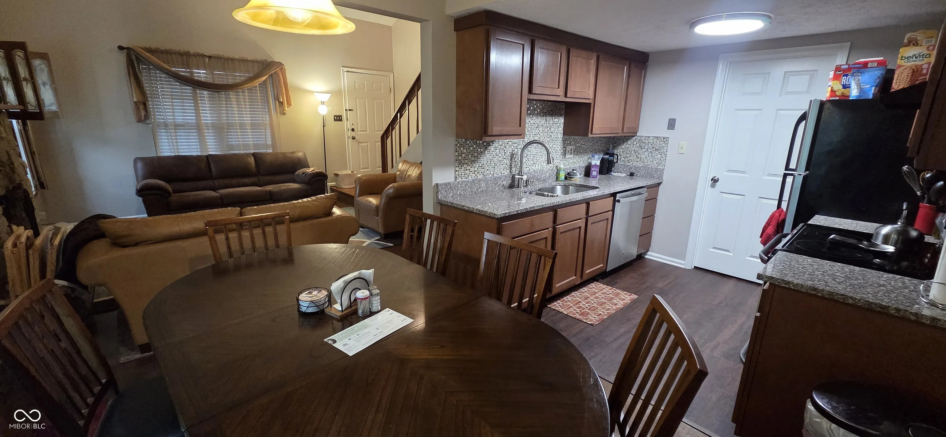 Beautiful moving ready home. Nice and relaxing living room with vaulted ceiling and stone fireplace. Loft with view to the living room can easily converted in a second bedroom. Nice kitchen with black and stainless-steel appliances, backsplash. Big main bedroom with walk-in closet and recently remodeled bathroom. New laminated floor in second level and fresh coat of paint in the entire house. This house has New Roof (2025), New Water heater (2025), New dishwasher (2025), A/C unit replaced in 2023, Furnace (2022), Patio doors (2022). Is located close to Eagle Creek State Park, Shopping stores and Highways.